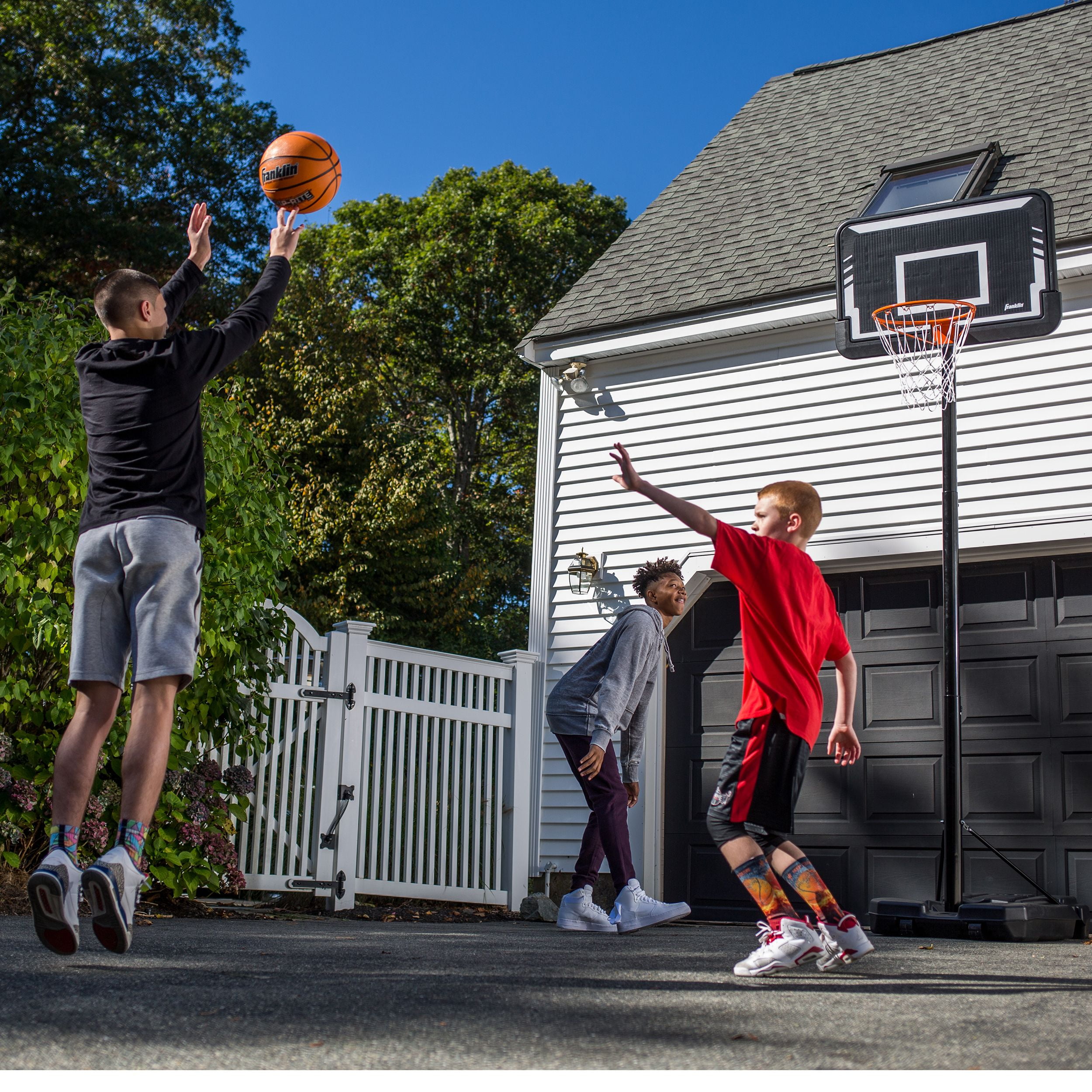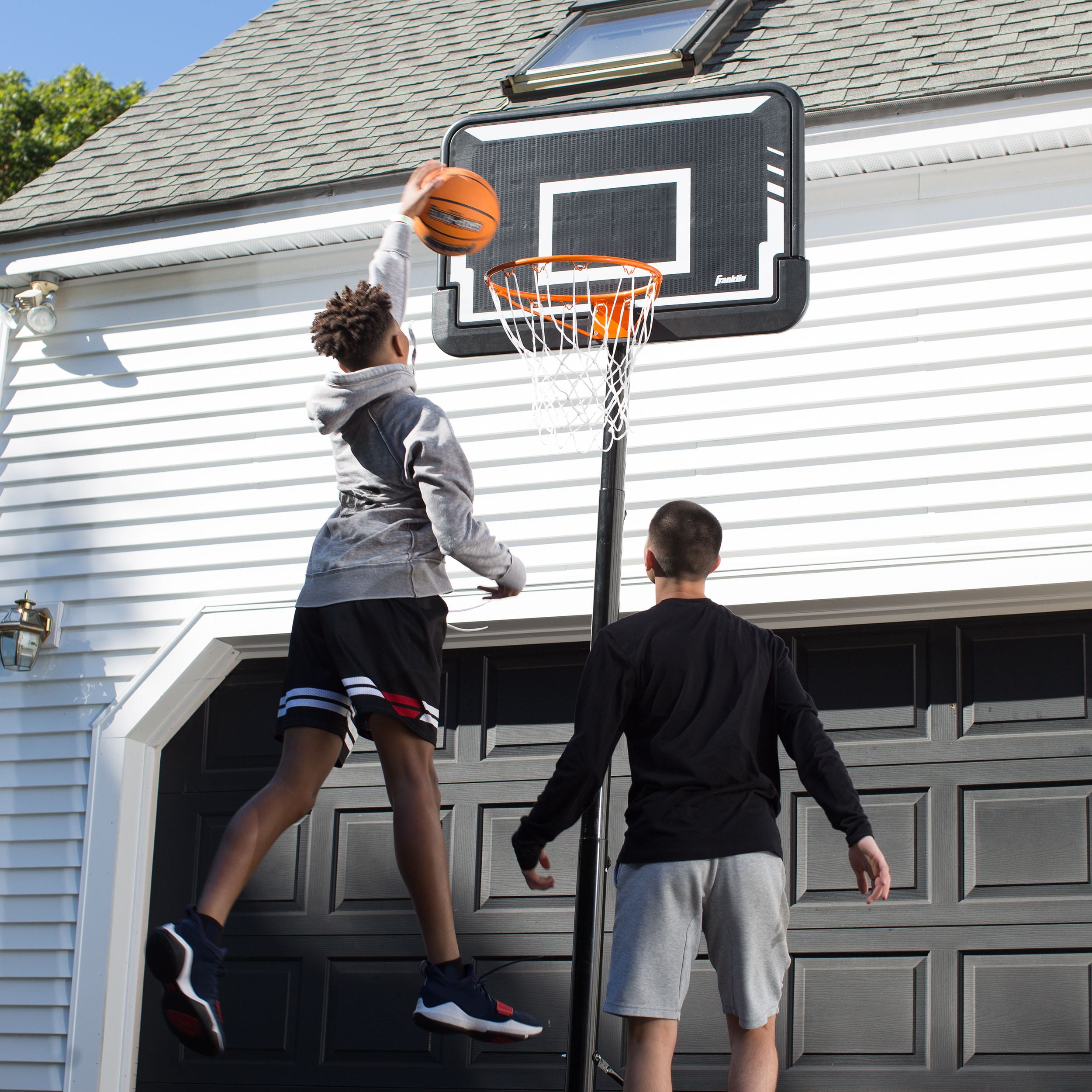 Perfect your jump shot in your own driveway or perform numerous shooting, layup or dunking drills with the Franklin Sports Adjustable Portable Basketball Hoop. Unlike stationary basketball systems that are commonly fixed in the ground–this portable hoop is on wheels. This allows you to place the hoop wherever you find it most useful–whether that be in your driveway, a neighbor’s driveway or on the street. Its portability allows for you to bring it your neighbors to create a full court if they also have a hoop of their own. The Franklin Sports Portable Basketball Hoop with 44-inch adjustable backboard is perfect for recreational play. It features a steel basketball rim and a 24-gallon base. The adjustable post allows you to adjust the height from 6.5-10 feet, so that players of any age can enjoy the game at their level.