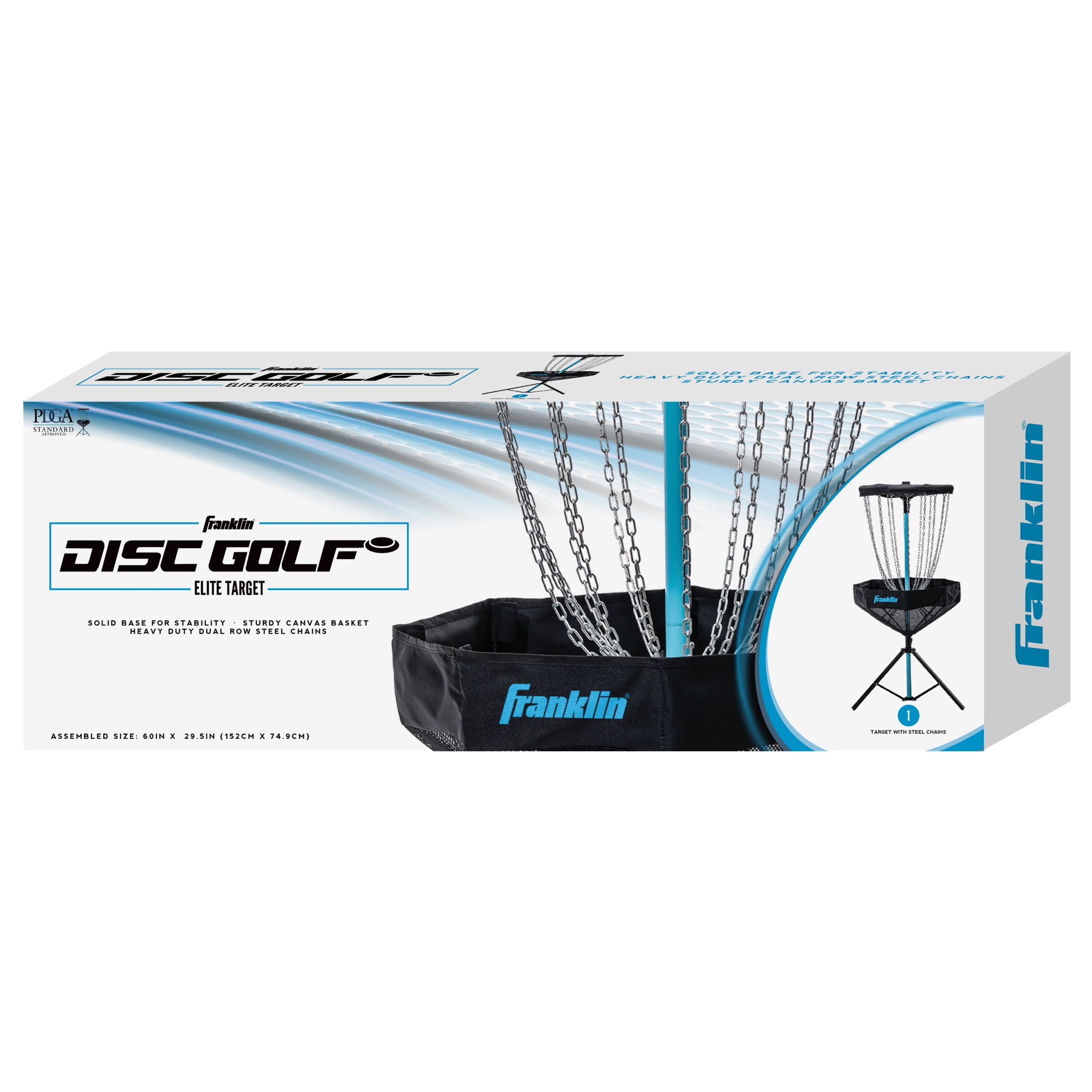 PREMIUM DISC GOLF BASKET: This portable disc golf target is made for players of all skill levels to design their own holes and bring the game on the go! PDGA APPROVED – Disc Golf Basket approved by PDGA (Standard Category) PROFESSIONAL CONSTRUCTION: This target comes with heavy-duty steel chains and a reinforced canvas basket for a premium quality feel that lasts year after year QUICK SET UP: The sturdy, easy-assembly frame design makes setup quick on nearly any surface. The unique umbrella shape provides foldable simplicity, so you can spend more time playing and less time setting up! EASY TRANSPORT: This Franklin disc golf target folds up for easy transport and storage, and also includes a carry bag to ensure everything stays organized. Take this target basket to the park, the beach, or anywhere else for disc golf fun! BASKET ONLY: This set comes with the target stand, basket and metal chains only. Discs sold separately