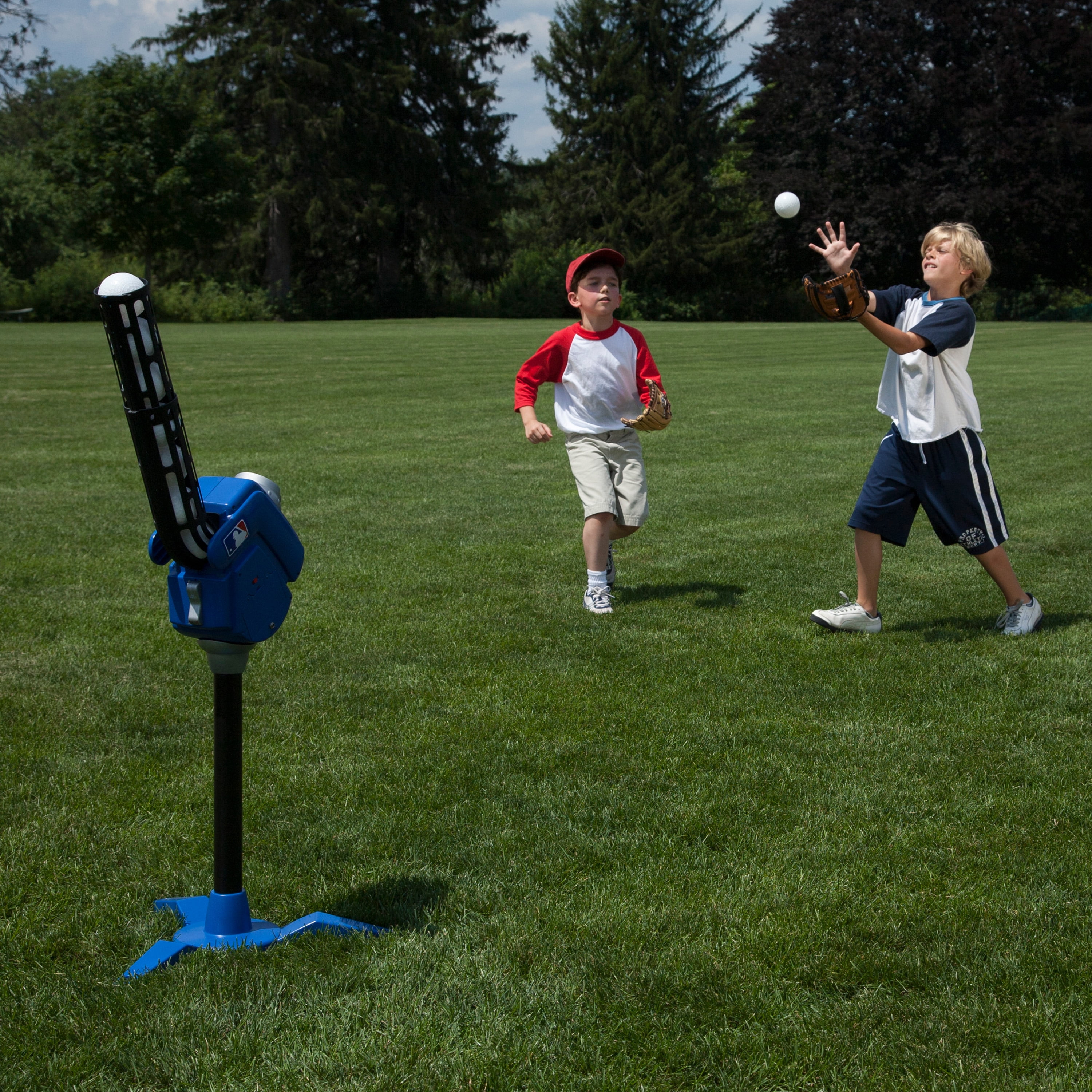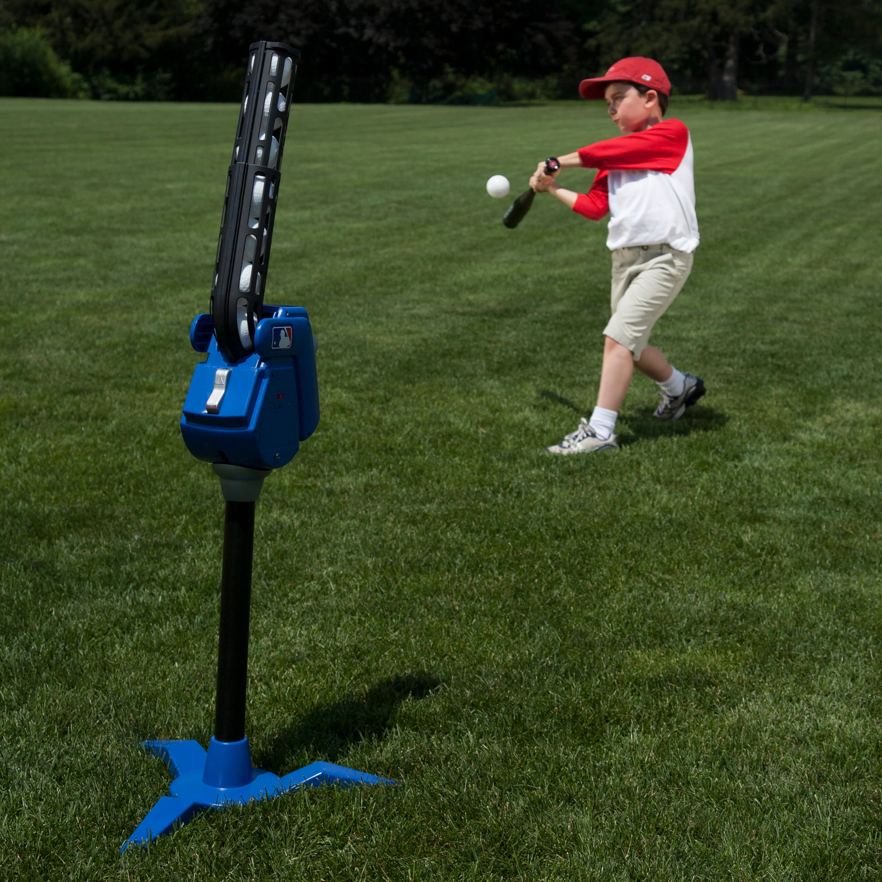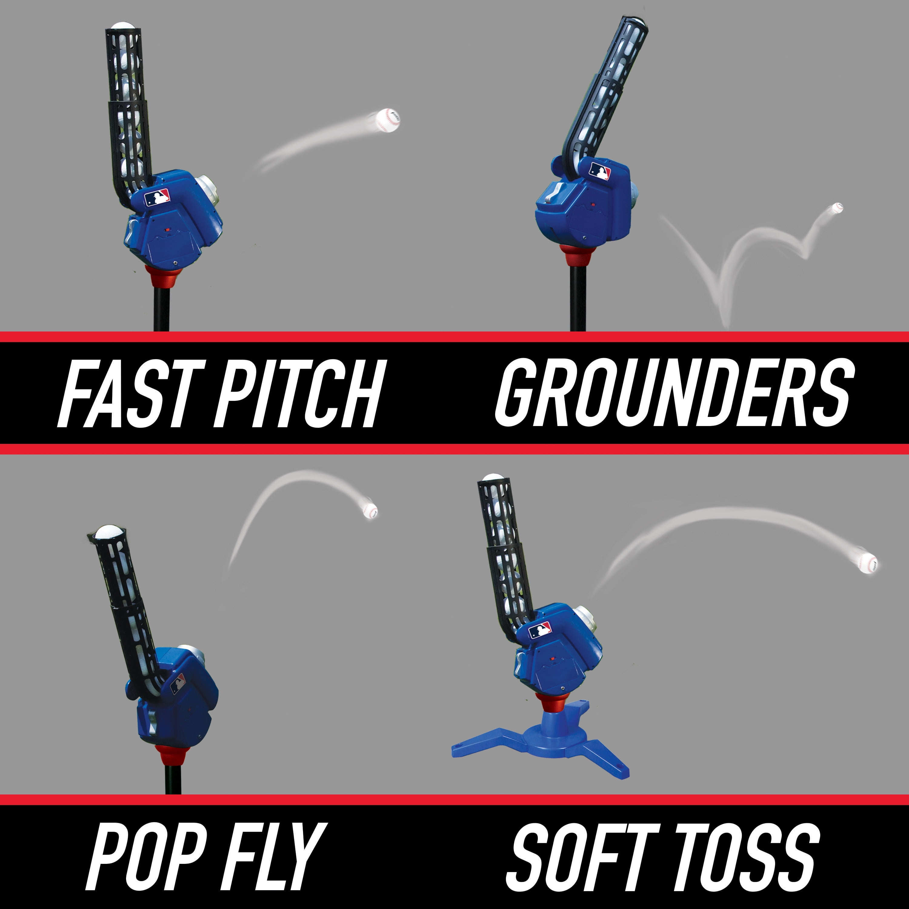 Franklin Sports Kids Baseball Pitching Machine – MLB 4-in-1 – Blue/Black/Red
