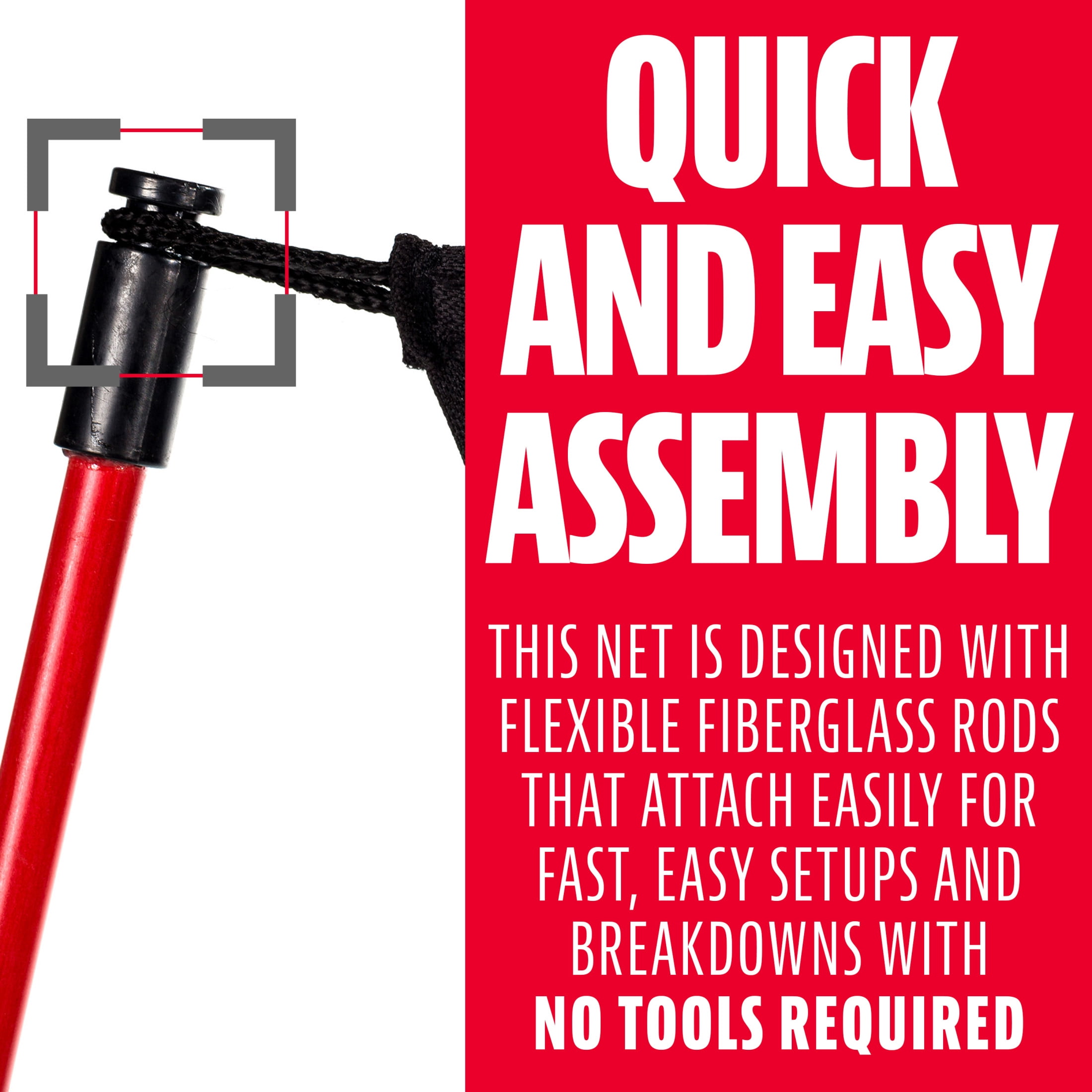 PERFECT TRAINING EQUIPMENT: The Flexpro backstop net is the perfect piece of training equipment for young players to work on their hitting, throwing, and pitching skills HIGH PERFORMANCE: This net is constructed with all-weather heavy duty netting, flexible fiberglass poles, and a sturdy base to ensure premium performance that will stand up season after season EXTRA LARGE TARGET AREA: The assembled 7′ x 7′ dimensions ensure that players have a large target area that can snag errant hits and throws with ease QUICK AND EASY ASSEMBLY: This net is designed with flexible fiberglass rods that attach easily for fast, easy setups and breakdowns with no tools required LIGHTWEIGHT AND PORTABLE: This backstop comes with a travel bag included so you can pack it up and take it on the go to the backyard, the beach, or the ballpark with ease!