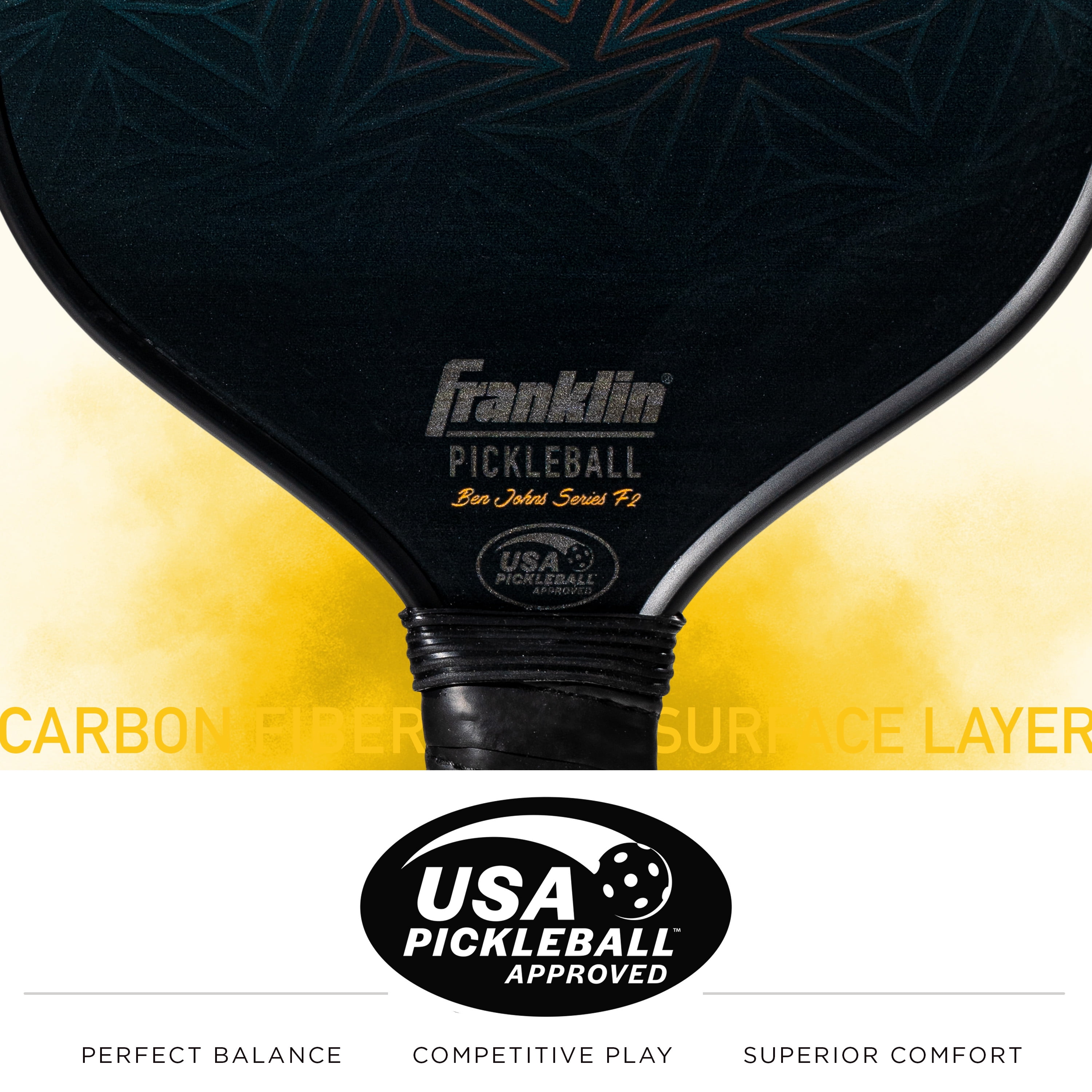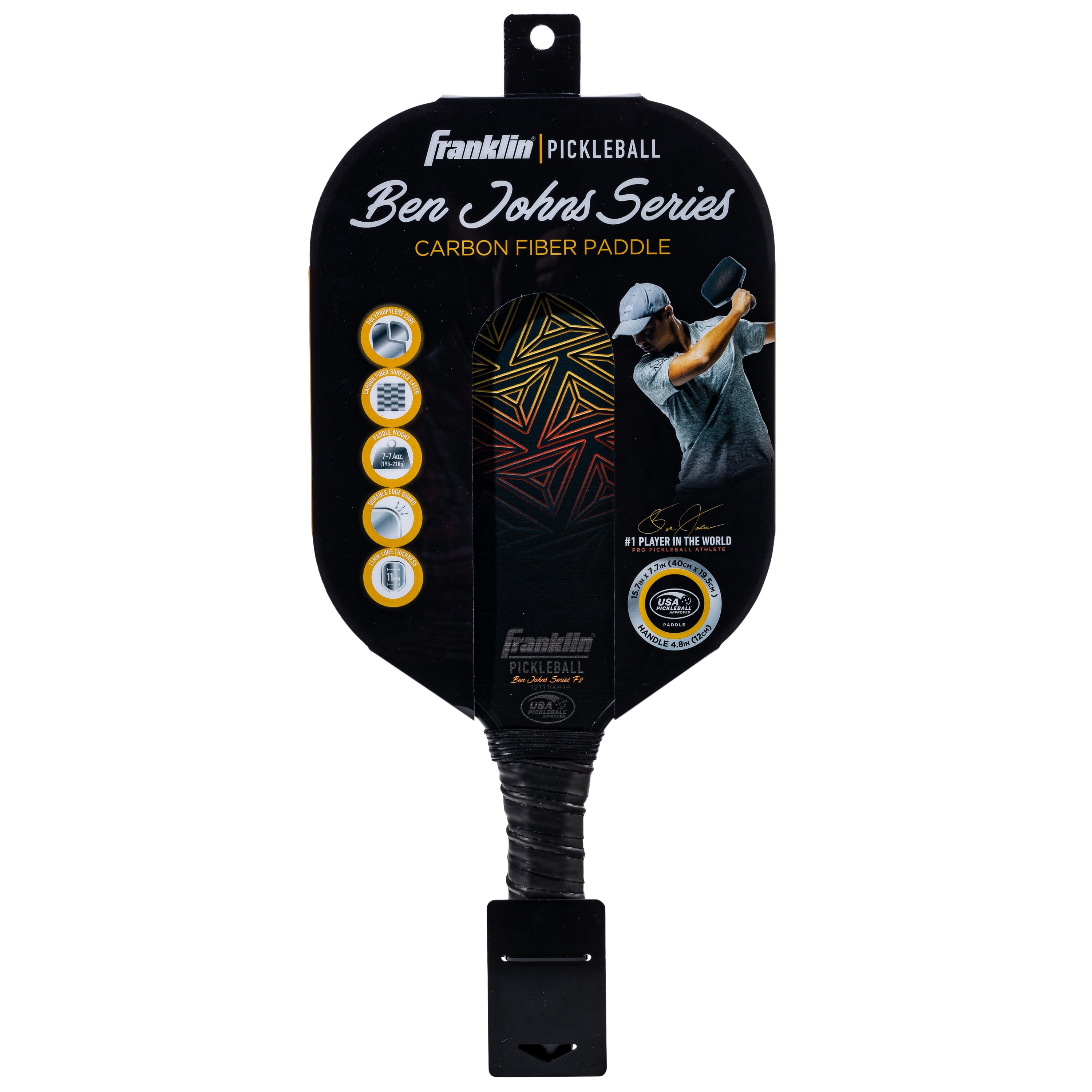 CARBON FIBER SURFACE: This black pickleball paddle features a carbon fiber surface layer for added precision to help players of all skill levels practice making shots with improved control and accuracy USA PICKLEBALL: This pickleball paddle has been approved by USA Pickleball (USAP) for tournament and competitive play LIGHTWEIGHT: This lightweight paddle weighs just 7 – 7.4 ounces to improve players’ reflexes for quick shot making and increased court agility COMFORT GRIP: Designed with a form-fitting, non-slip grip to help players keep firm hold on their paddle during intense rallies and long matches QUALITY CONSTRUCTION: Built with an 11mm polypropylene core and an advanced carbon fiber surface layer, this paddle is designed for maximum durability and high quality performance for pickleball players of all skill levels