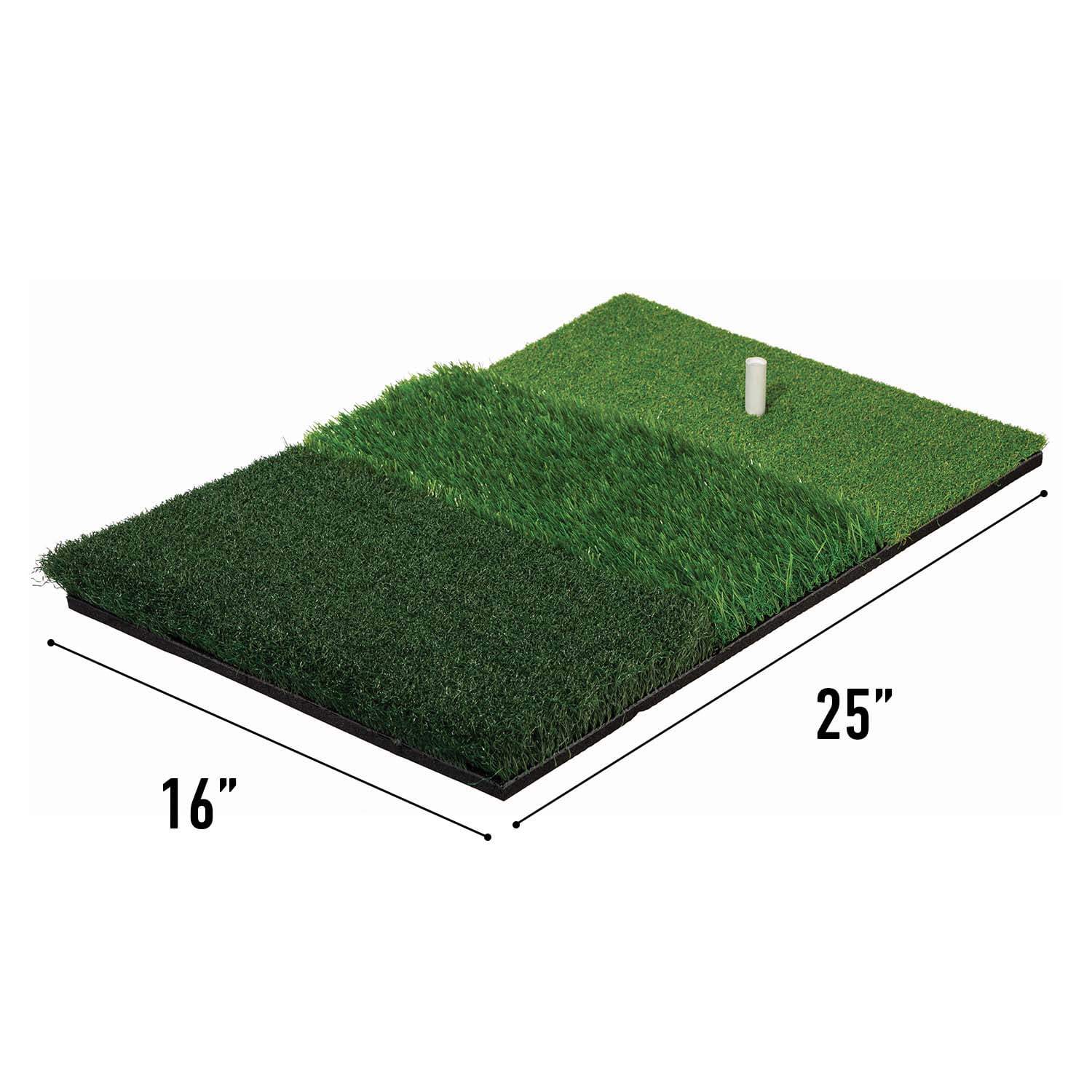 PRACTICE AT HOME: Save your lawn with Franklin Sports newest golf mat. Includes rubber tee and 3 different forms of turf BUILT TO LAST: Extra thick rubber base keeps this mat in place during practice sessions and through thousands of swings! YEAR ROUND: Practice all 365 days of the year! The Tri Mat golf green mat’s portable design allows set up in seconds. Designed for both indoor and outdoor use, never worry about weather again! TRAIN FROM EVERY LINE: Whether you’re a pro or beginner we all need to hit out of the rough sometimes. Real feel grass provides realistic conditions, so when you’re out on the course every shot is instinctual