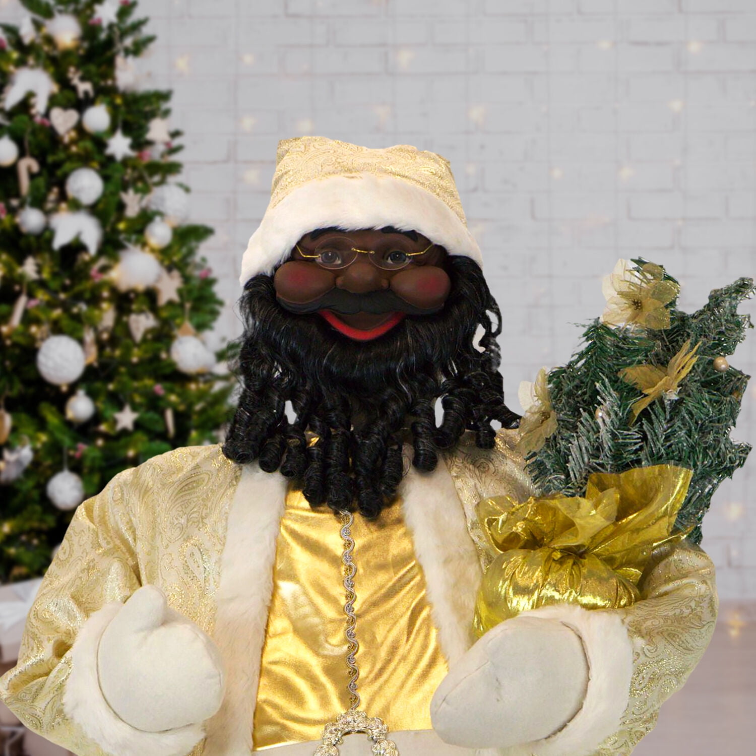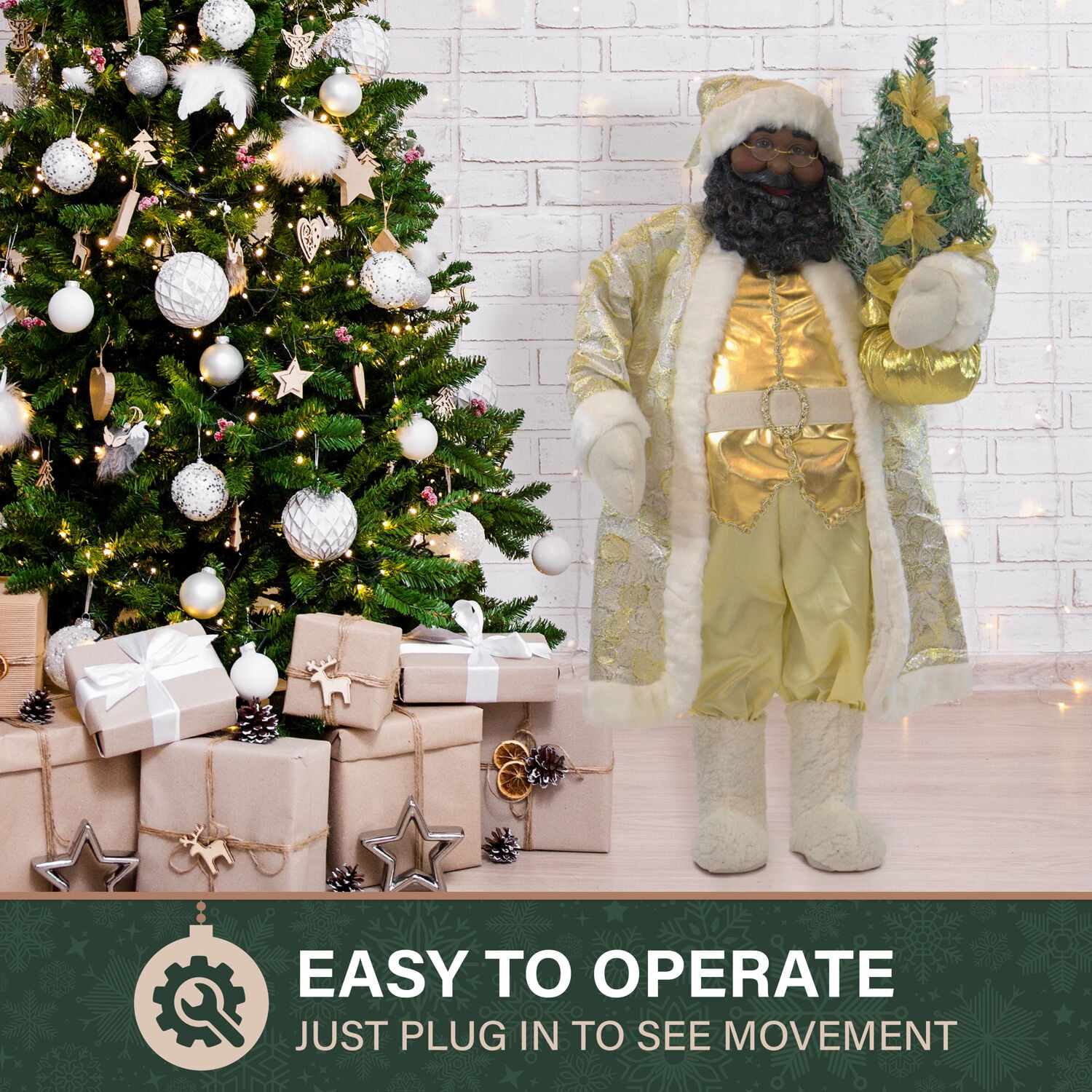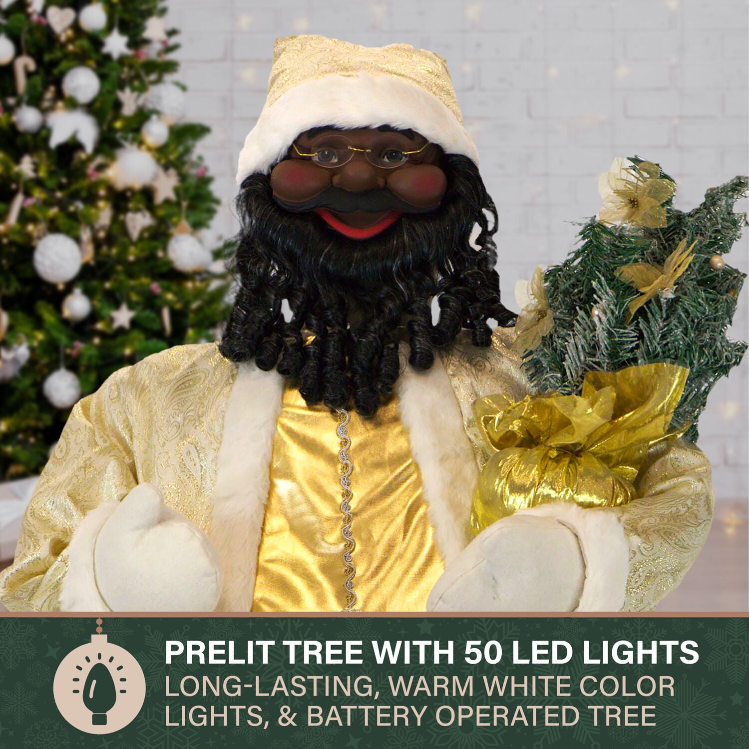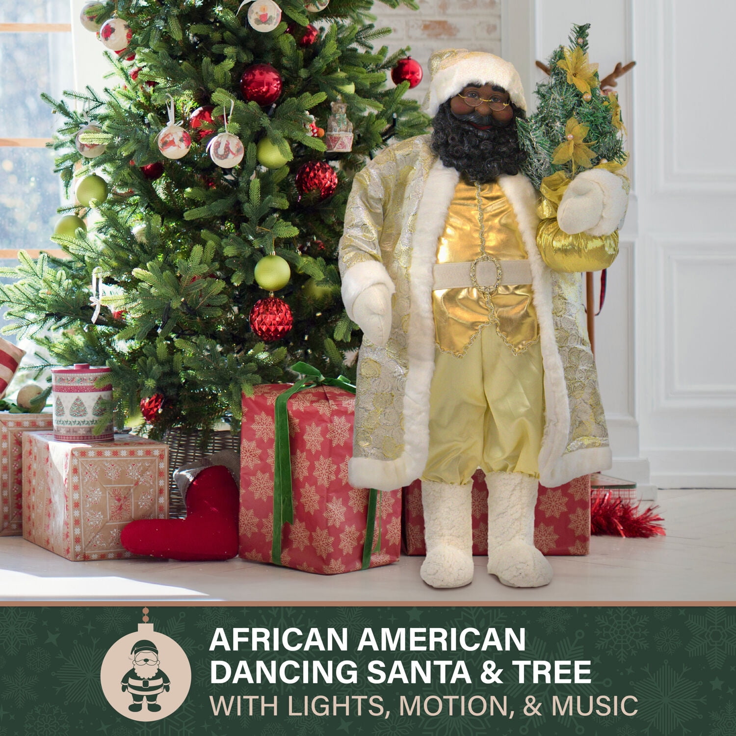 Fraser Hill Farm 3-Ft. African American Santa Animatronic with Prelit Christmas Tree, FSC036-1WT9-AA