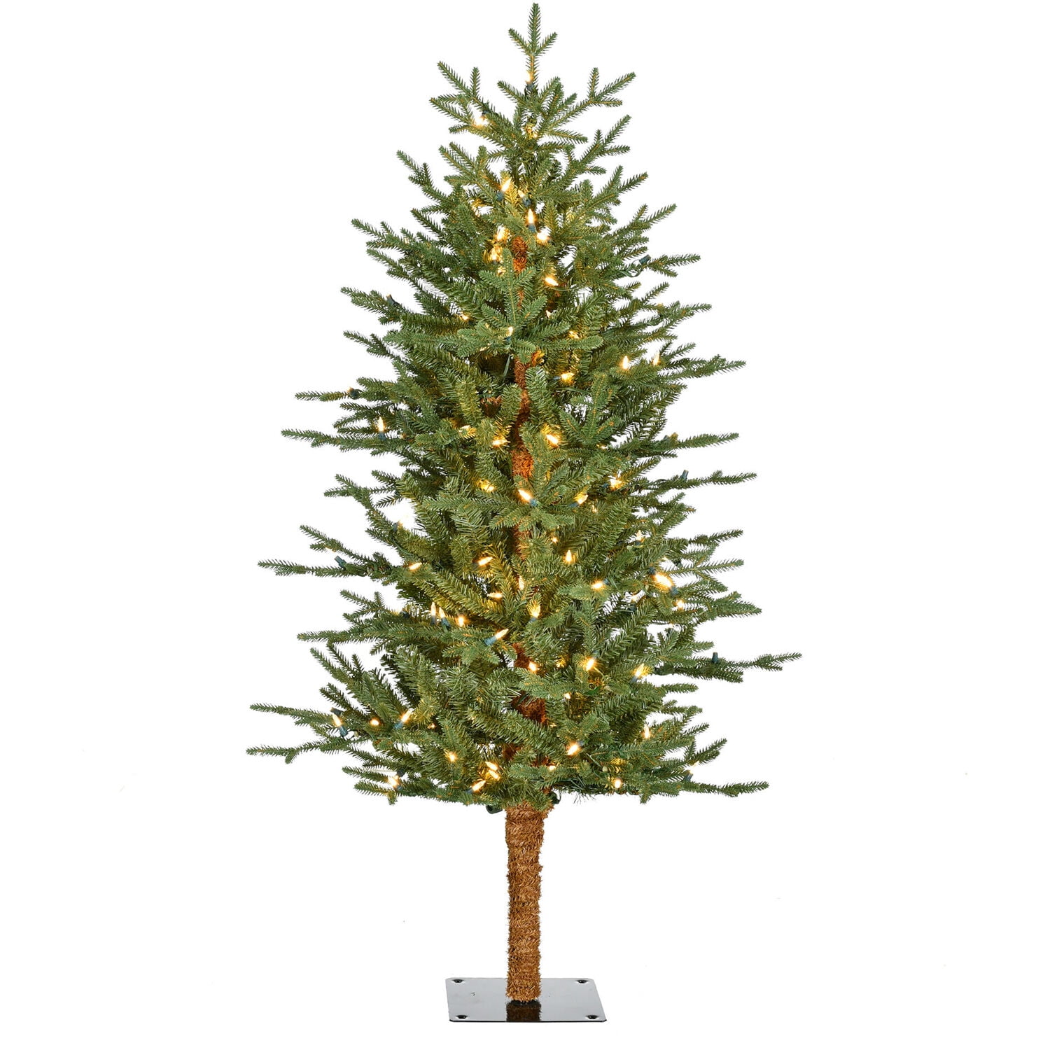 DECK YOUR HALLS: Welcome guests with this beautiful accent porch tree set by your front door, next to your fireplace, or any place you want to add some holiday joy. Each measures 4-Ft. tall. PRELIT WITH WARM WHITE LED LIGHTS: Pre-strung with 150 long-lasting, warm white modern LED lights to add a festive touch holiday decorating. TIMELESS ELEGANCE: A wonderful alternative to traditional live greenery and arrives fully assembled. Some light shaping and your tree set is ready to display. Suitable for indoor or covered outdoor display. HIGH-QUALITY ARTIFICIAL MATERIALS: Designed using high-quality faux materials crafted to last season after season. No maintenance required. Just dust lightly as needed. FRASER HILL FARM IS HERE TO HELP: If you are not completely satisfied with your purchase, your item was damaged in shipment, or you have questions please feel free to contact us and our customer service team will assist you. Set of two Green Alpine porch accent artificial trees Each tree stands 4 ft. high with a 31-in. diameter Full and natural silhouette Metal hinged branch construction for easy assembly High-quality PVC needles Pre-strung with white LED lighting Number of tips: 608 (304 each) Total number of active bulbs: 300 (150 each) Flame-retardant and non-allergenic Easily collapses for easy storage Metal stand included 1-year limited warranty