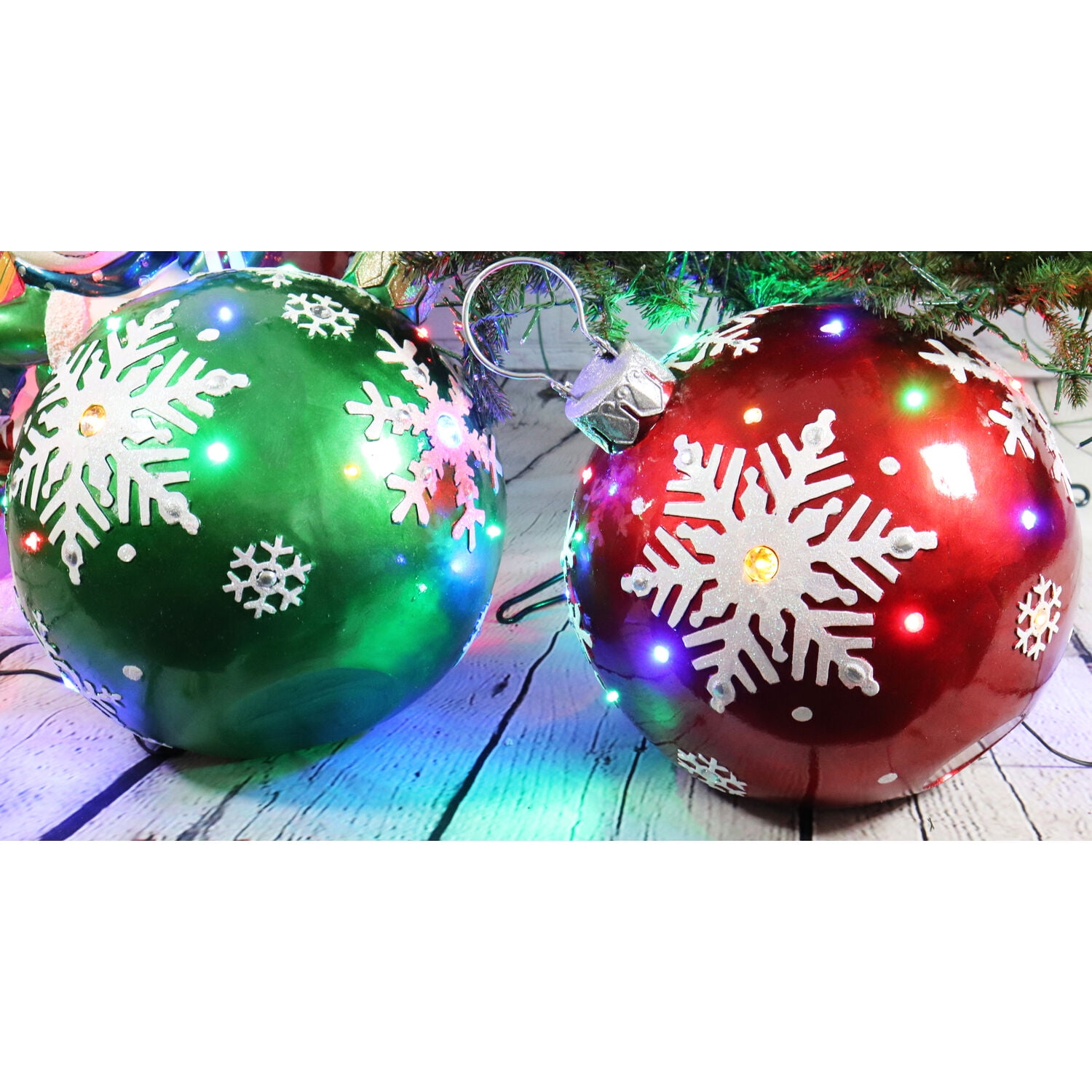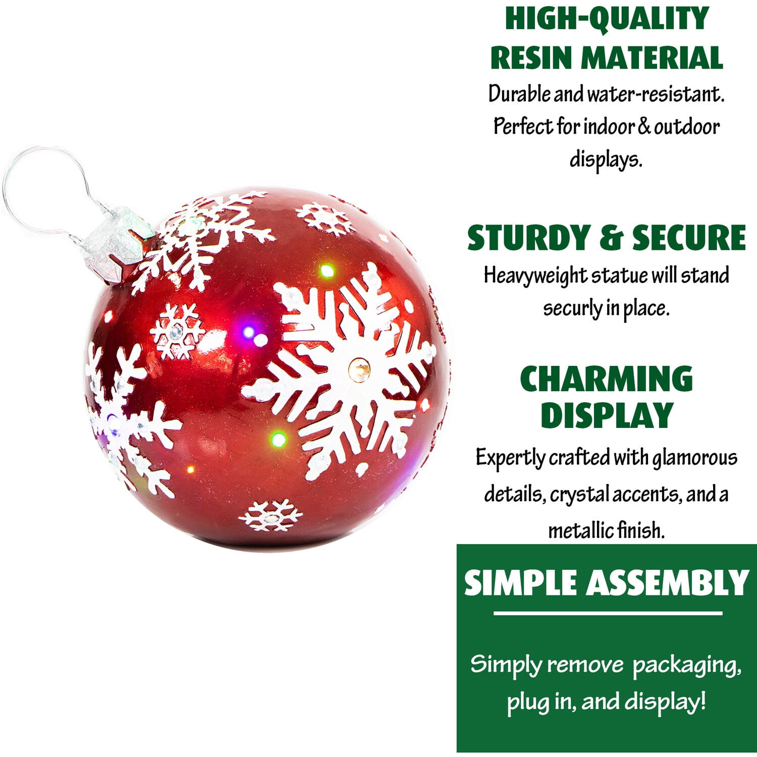 Capture the beauty, magic, and wonder of the Holiday Season with oversized Christmas decorations from Fraser Hill Farm. Our collection of indoor/outdoor resin figures will help you create a delightful holiday display everyone will love. Each high-quality statue is crafted from weather-resistant resin then brightly painted with realistic details. Collect them all! The Jeweled Ball Ornament features a snowflake design and 24 multi-color LED lights that shine like jewels, providing up to 3000 hours of bulb life. Available in an assortment of festive colors (each sold separately), group them to create impact or display alone as a beautiful statement piece. For irresistibly unique decor that celebrates the spirit of Christmas, count on quality products from Fraser Hill Farm.