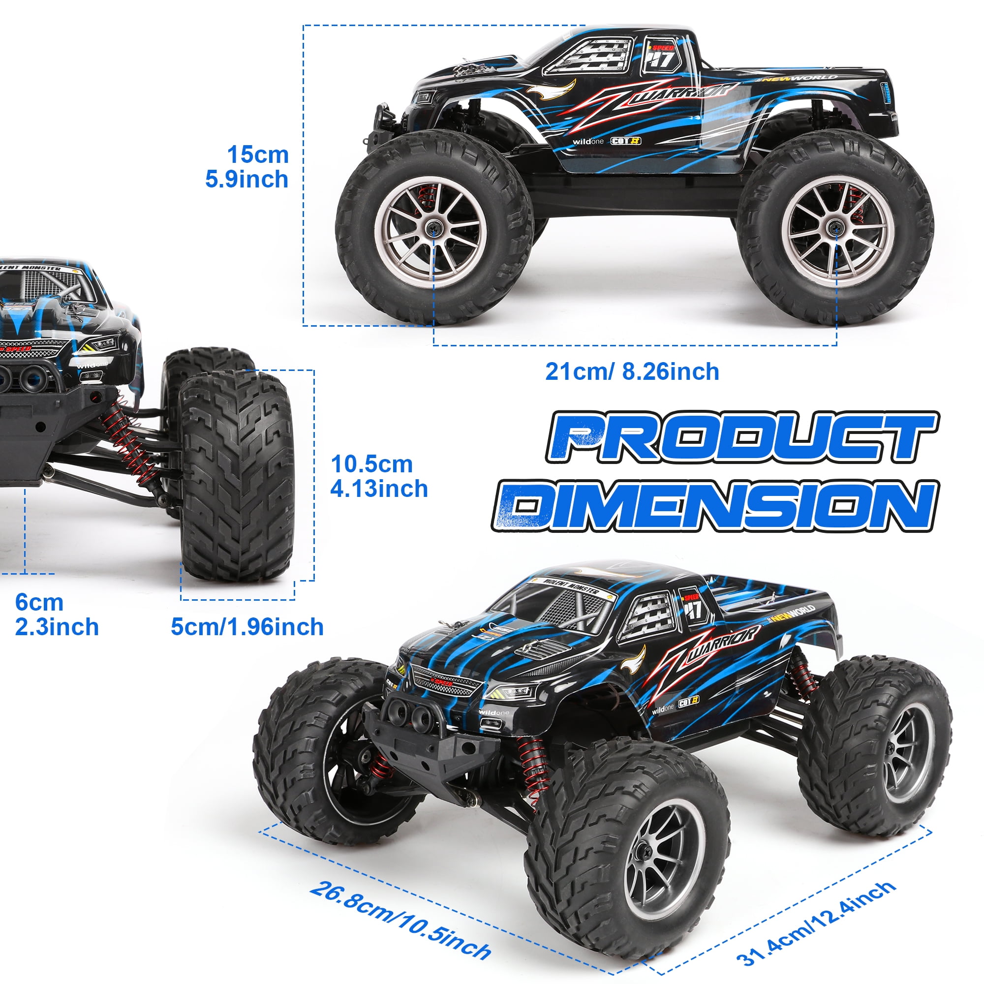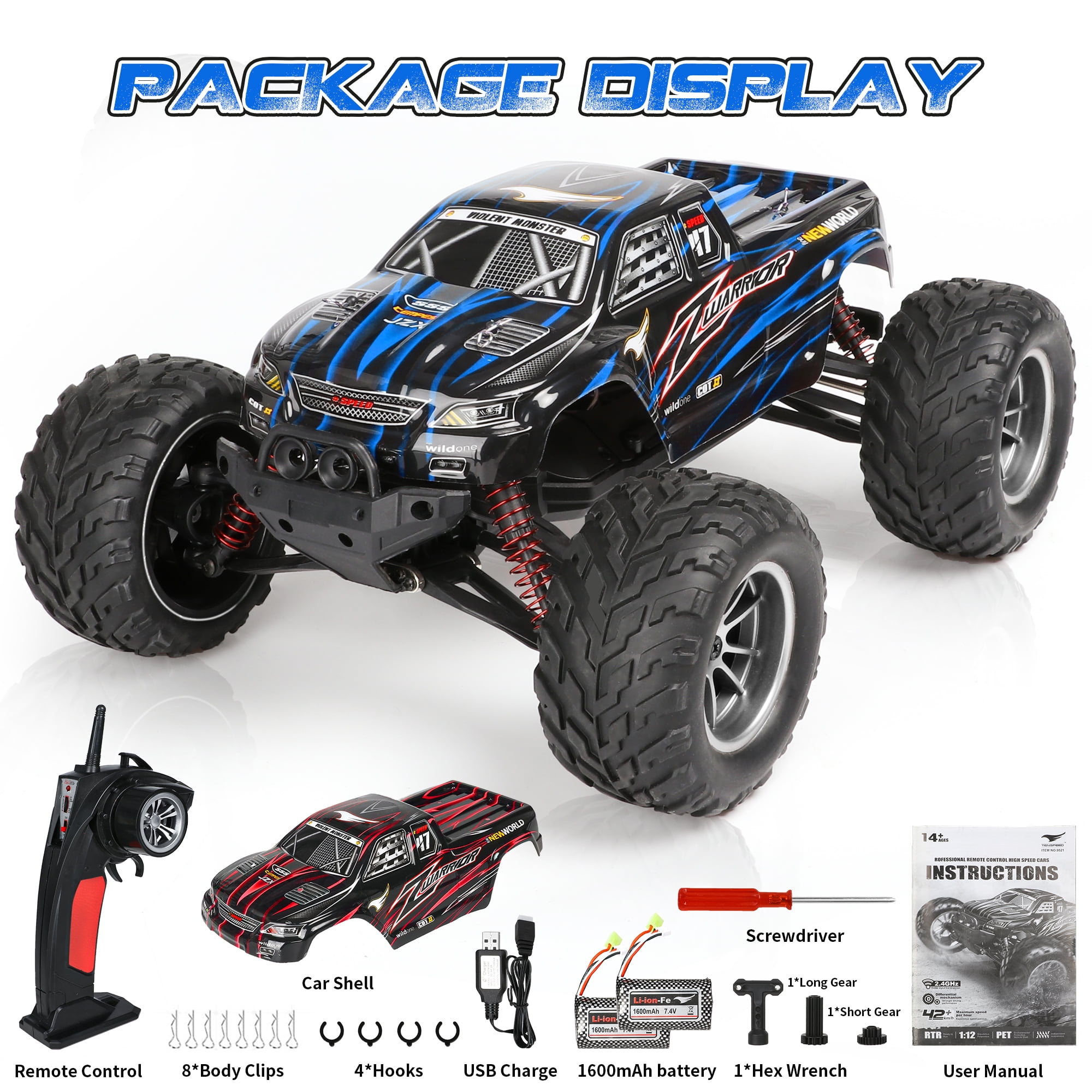 The speed of the 1:12 remote control car can reach 42km / h. The 2.4GHz radio control is responsive and will not interfere with other RC cars when playing together. Children can race these RC cars indoors and outdoors with their parents and friends. Different colored car shells make this rc car stand out from the crowd. You can choose your favorite color based on your mood and start this speed race. The remote controller of this monster truck is very responsive and has multiple functions. The speed is adjustable and the angle changes sensitively. It is the best gift choice for beginners and intermediate users. We have upgraded the two batteries to 7.4V 1600mAh. This way, children can play outside without interruption and have fun. Suitable for children aged 6-8, 8-10, and 8-12. All toy trucks have passed drop and impact tests, so they can withstand accidental operations such as hitting walls or stones. The rubber tires and suspension system provide good traction and cushioning, so children can drive this monster truck anywhere, such as beaches, lawns, and concrete roads. All remote control cars have passed CPSIA and ASTM tests to ensure safe play. Worry-free gifts for occasions like birthdays, Christmas, parties, and more. If you are looking for an exciting and cool surprise gift, you will love this monster truck. Please feel free to contact us if you have any questions.