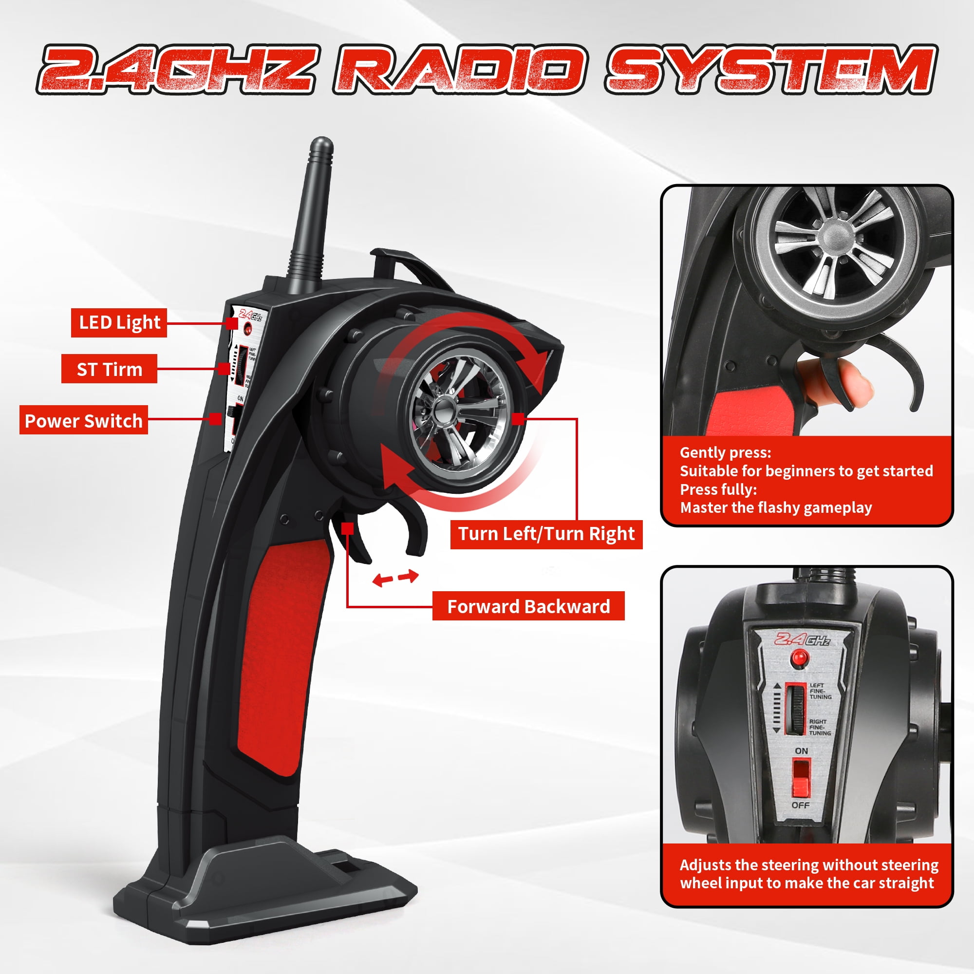MORE EXCITING! Double Shells, Double Fun Equipped with dual-color car shell, adding a touch of style to your life. The PVC material is easy to disassemble and clean. ENHANCED PERFORMANCE! Two High-capacity 1600 mAh 2s Batteries, Showcasing True Driving Skills Two high-performance lithium batteries, shorter charging time, longer lifespan, no need to worry about sudden power failure during playtime. Significantly improves the performance level of the remote-controlled car by ensuring a uniform speed during car turns. SPEED UP! Upgraded Motor The upgraded motor is high-speed and equipped with a heat sink; it maintains good performance while extending the lifespan. IMPROVED DAMPING EFFECT! Powerful Shock Absorption System Absorbs shock to protect electronic components, easily absorbs vibrations. Gradually stiffens to resist bottoming out during big jumps.