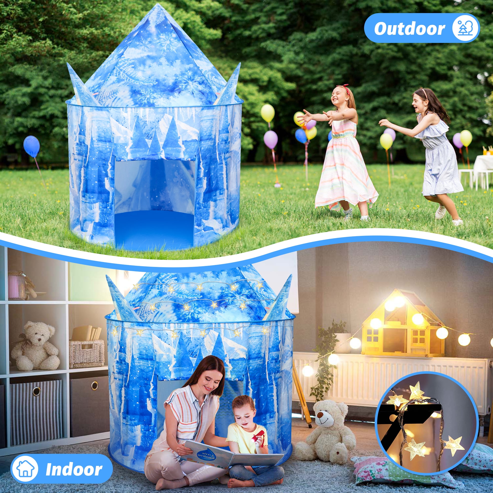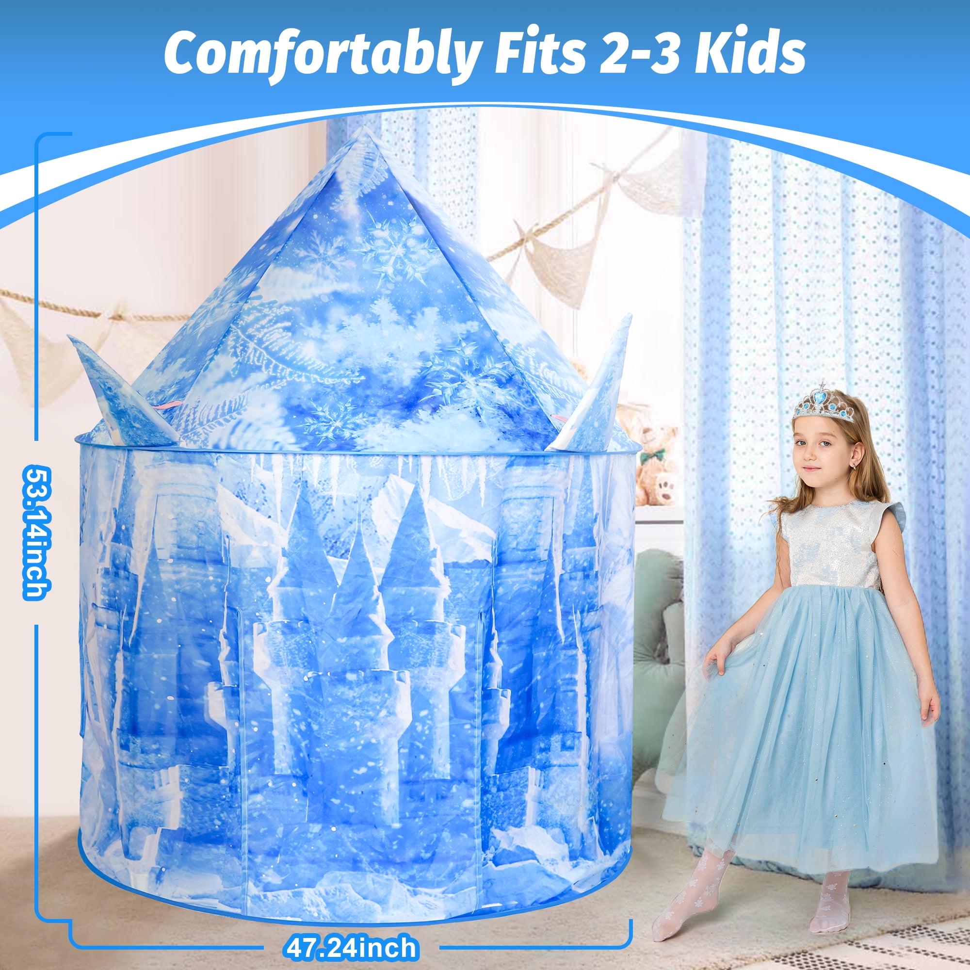 Freecat Play Tent for Girls, 53 inch Light up Ice Castle Playhouse w/ Windows &Doors, Girls Christmas Toy Gift for Indoor/Outdoor Use, Birthday Party Gift for Kids 3-6 5-7 Years.
