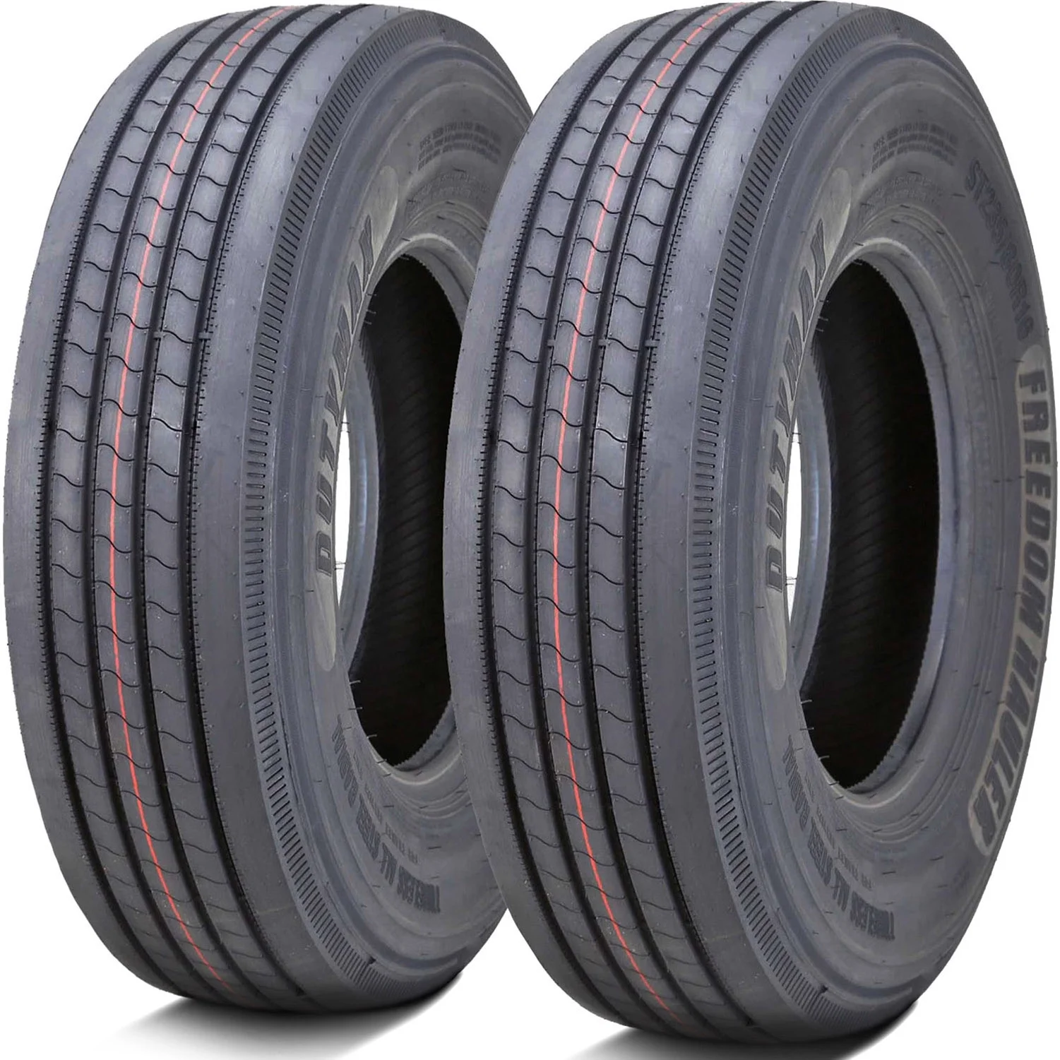 Freedom Hauler Dutymax All Steel ST FEATURES AND BENEFITS Trailer axle tire Fuel efficient performance Longer lasting tread life Upgraded load durability OVERVIEW The Freedom Hauler Dutymax All Steel ST is a highway terrain, all season tire manufactured for commercial vehicles. It was made to be mounted on the trailer axle. This tire is NOT MEANT TO BE MOUNTED ON LIGHT TRUCKS, as its construction will not support the weight and performing style of such vehicles. It can ONLY BE MOUNTED ON TRAILERS. The tread design features a symmetric ribbed pattern which maintains the tire’s contact with the road surface at all times. This increased road contact upgrades the fuel efficiency. It allows the tire to ease the driving pressure off the tread area, which significantly lowers the tire’s rolling resistance. The rolling resistance is the external driving pressure affecting the tire which determines the amount of energy needed to keep the tires in motion. The decreased rolling resistance greatly lowers the vehicle’s fuel consumption and CO2 emissions. This guarantees a fuel efficient and environmentally friendly performance. The model offers a lengthened usability. The tread design’s optimal siping detail allows the tire to evenly distribute the driving pressure along the tread area. In this manner, the tire actively prevents heat build-up along the tread area and avoids irregular tread wear. The heat build-up accelerates the tread wear rate and causes premature tread wear on the tire’s surface, while the formation of an irregular tread wear pattern causes a bumpy ride and a lowered usability. This combination greatly extends the tread life and the tire’s usability. The Dutymax All Steel ST features a reinforced internal structure. The all steel belt construction manages to keep the tire’s ideal shape under the load and driving pressure affecting the tire. This enables the tire to increase its load handling and carrying capability. The strengthened structure does not deform under the pressure, which improves the heavy load durability. In this manner, the tire offers a stronger and more versatile application. Manufacturers recommend changing tires every 10 years. As long as tires are properly stored before they are sold, the year of their manufacture will not shorten their service life.