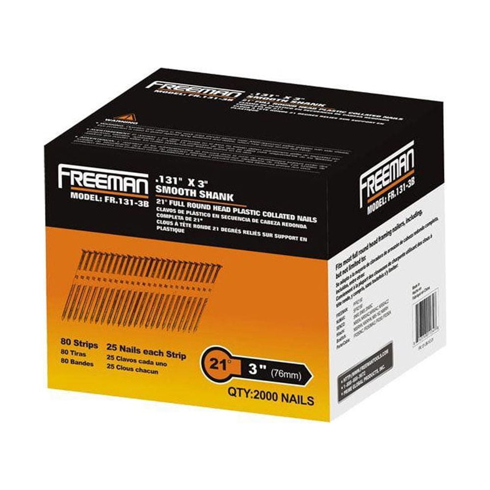 Freeman FR.131-3B 21 Degree .131″ x 3″ Plastic Collated Bright Finish Smooth Shank Full Round Head Framing Nails (2000 Count)