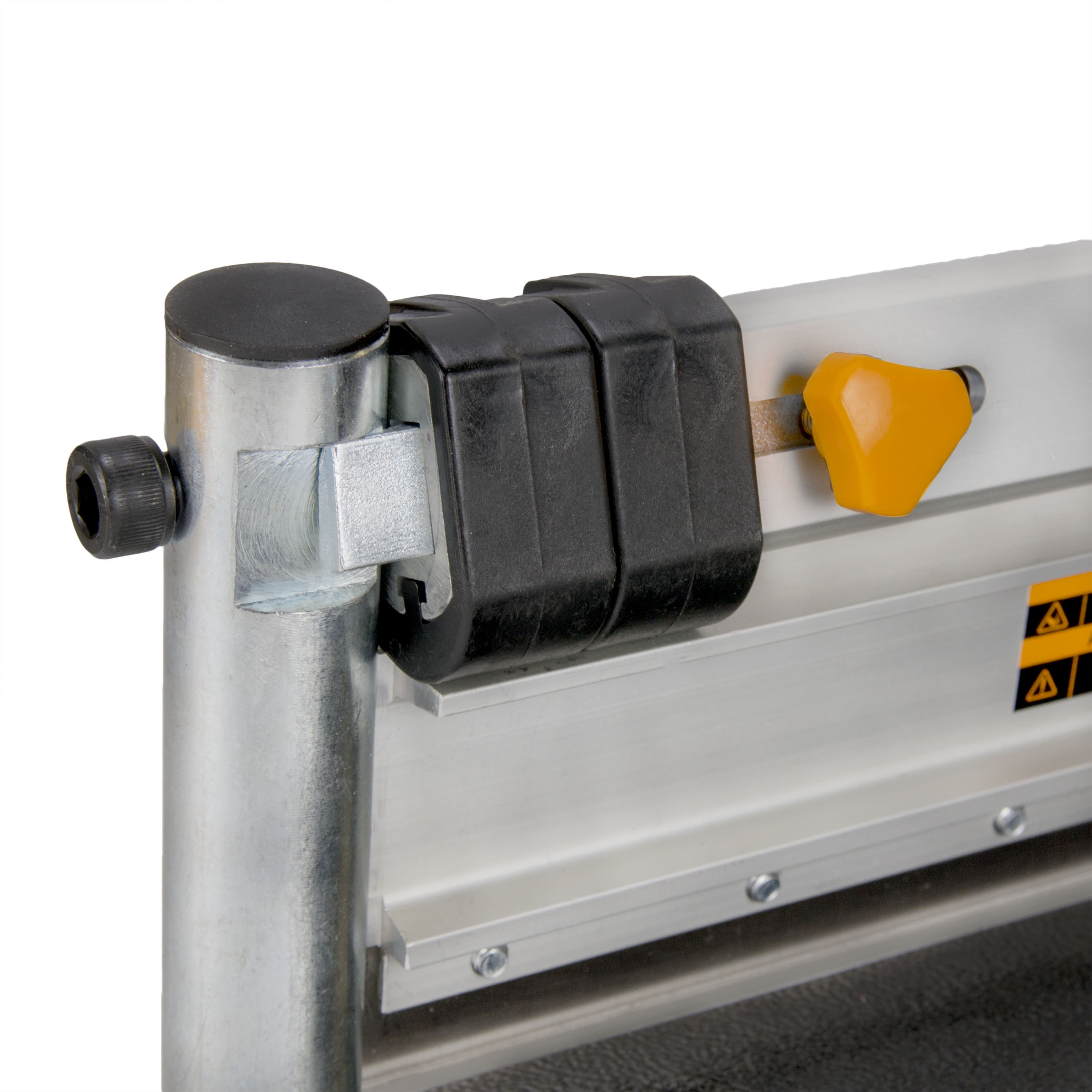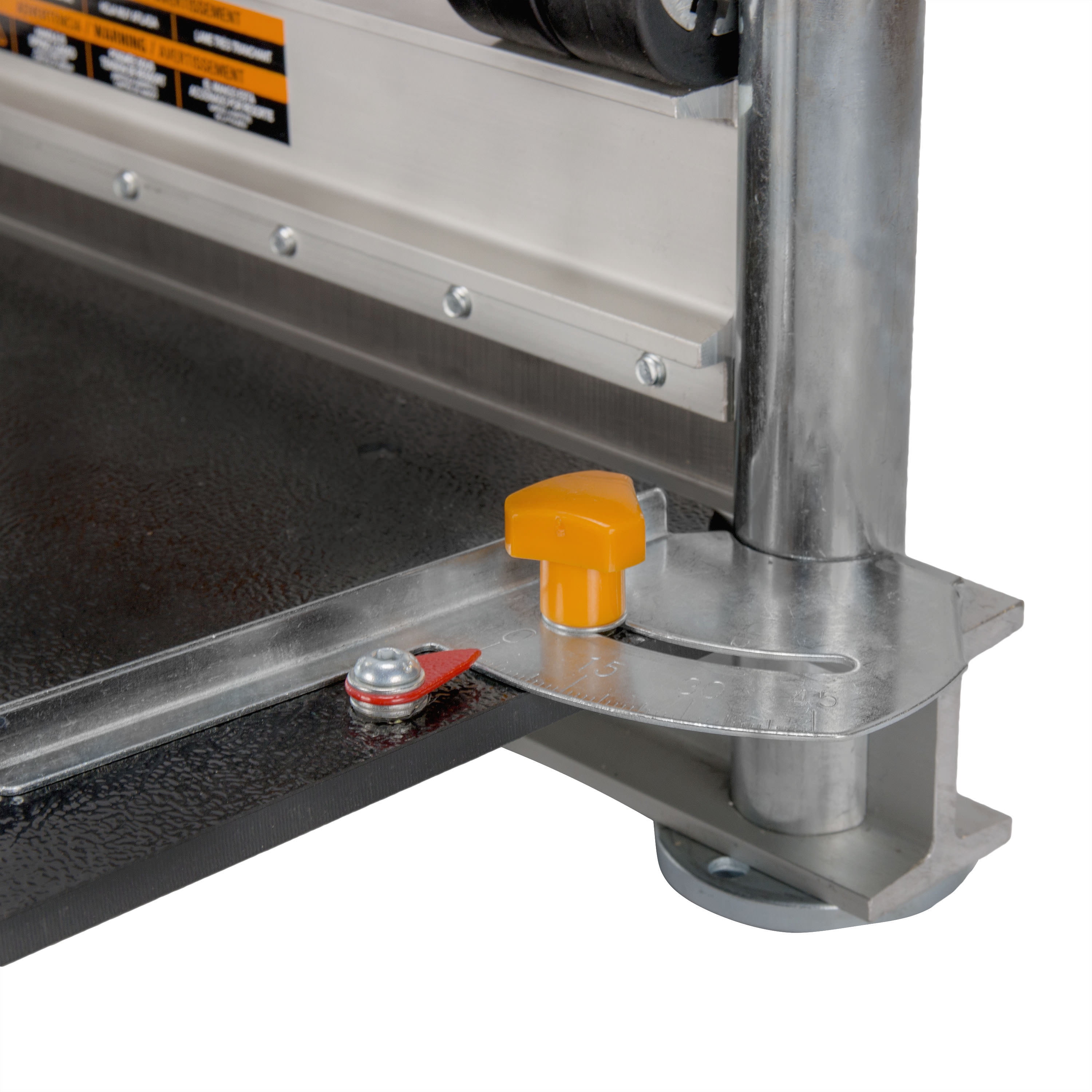 Shear blade cuts materials up to 13 inches wide and 12 mm thick without splintering or chipping Spring loaded cutting mechanism and extended handle provide increased leverage for clean cuts Built-in adjustable angled miter gauge allows cutting up to 45 degrees Extended base minimizes plank movement while cutting for maximum accuracy Removable 13 inch blade can be sharpened or replaced to extend the life of the tool