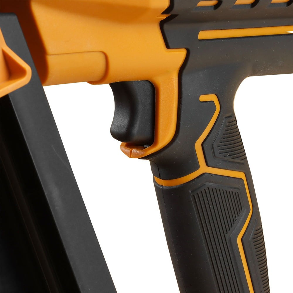 Superior Performance: Brushless motor efficiently drives up to 750 fasteners per charge and 90 pieces per minute to increase productivity for construction contractors and DIYers Cordless Portability: Powered by high-capacity 20 volt 4.0 Ah lithium-ion battery featuring enhanced battery life, power level indicator, and 90 minute recharge time Construction Applications: Perfect for framing, subfloors, roof decking, pallet and shipping crate assembly, and wood fencing Compatible Nails: 21 degree plastic collated full round head framing nails from 2″ – 3-1/4″ L and 0.113″ – 0.148″ diameter Dual Mode Firing: Fast and easy to switch between firing modes Tool-free Depth Adjust: Simply turn the depth adjustment wheel by hand to change the driving depth of staples for various projects and materials Textured Rubber Grip: Provides maximum comfort during long shifts and increases accuracy of fastener placement LED Light Indicator: Warns of low battery and indicates if tool is functioning properly Included: 20 volt 4.0 Ah lithium-ion battery, rapid charger, canvas bag, and belt hook Warranty: Covered by Freeman’s Professional 1 Year Limited Warranty