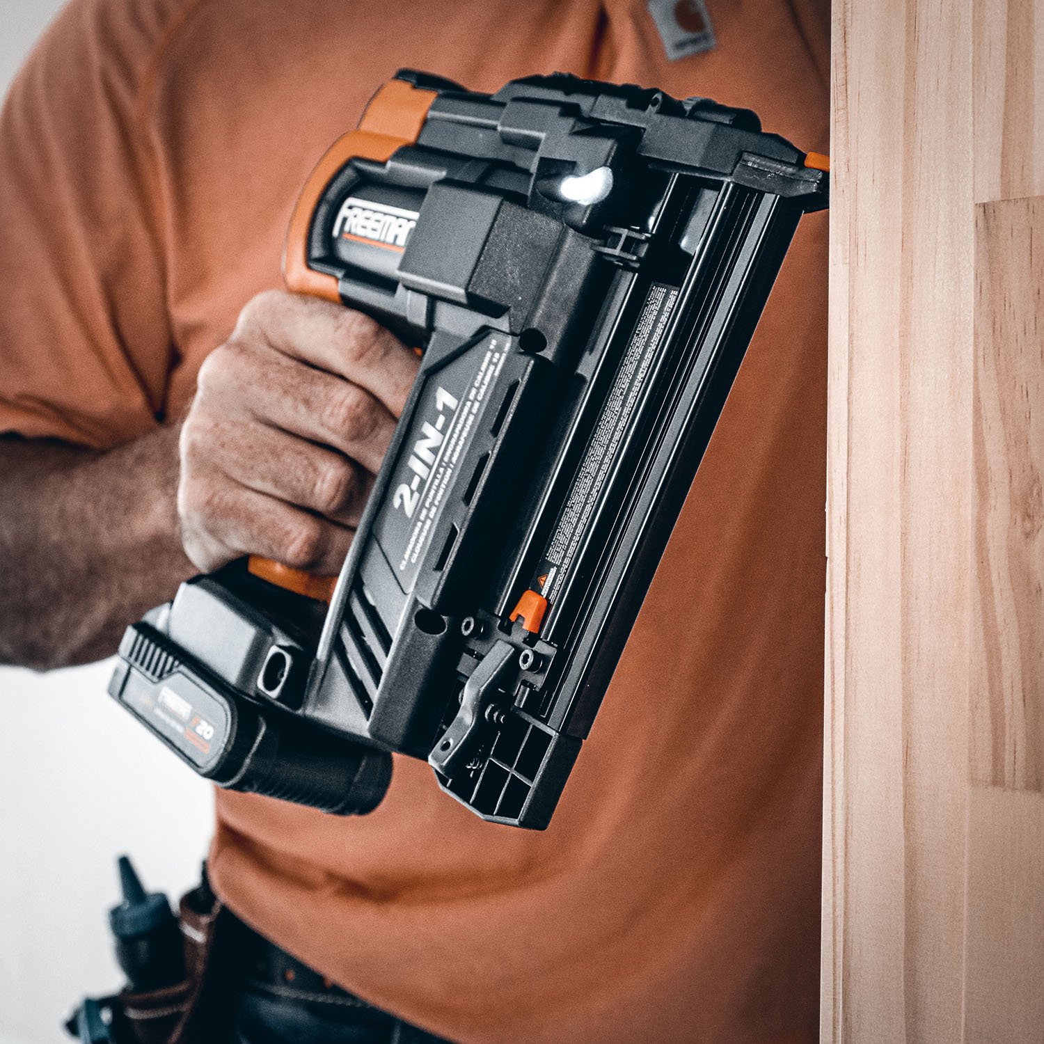 Cordless Portability: Powered by high-capacity 18 volt 2.0 Ah lithium-ion battery featuring enhanced battery life, power level indicator, and 45 minute recharge time Construction Applications: Perfect for decorative trim, moulding, cabinetry, paneling, upholstery, insulation, plastic sheeting, window casing, furniture trim, picture frame assembly, and hobbies and crafts 2-in-1 Nail / Staple Gun: Multi-purpose design allows nailing and stapling with just one tool, saving time and money (18 gauge brad nails from 3/4″ – 2″, and 18 gauge 1/4″ narrow crown staples from 3/4″ – 1-5/8″) Select Fire Switch: Fast and easy to switch between single sequential firing for precision or bump firing for speed Tool-free Depth Adjust: Simply turn the depth adjustment wheel by hand to change the driving depth of nails and staples for various projects and materials Easy Access Nose: Clear jams quickly so you can get right back to work Reload Indicator: View remaining fasteners and eliminate the guesswork Textured Rubber Grip: Provides maximum comfort during long shifts and increases accuracy of fastener placement No Mar Safety Contact: Prevents damage to work surface and ensures professional results at home or at the jobsite LED Indicator Light: Warns of nail jams, low battery, overheating, and an empty magazine Bright LED Light: Illuminates dimly lit work areas for increased visibility Included: (2) 18 volt 2 Ah lithium-ion batteries, rapid charger, blow molded case, belt hook, adjustment tools, and fasteners (1000 count: 500 18 gauge brad nails 1-1/2″ L, and 500 18 gauge 1/4″ narrow crown staples 1-1/4″ L) Warranty: Covered by Freeman’s Professional 1 Year Limited Warranty