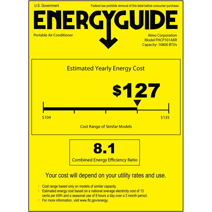 • 14,500 BTU ASHRAE/10,800 BTU DOE portable air conditioner