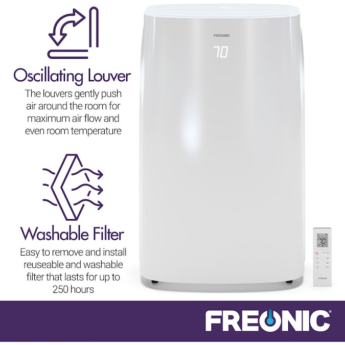 There is a fine line between form and function, and our Freonic Portable Air Conditioner is just that. This balance makes the air conditioner perfect for the modern homeowner with modern convenience in mind. Automatic louvers gently push air around the room, meaning once the unit is powered on, your work is done. Adaptive controls respond quickly to a simple touch and the unit’s soft glow shine through plastic LED displays the temperature without taking away from the polished look of the unit. With 3 cooling speeds and suitability for a room up to 300 sq. ft., the unit will make a noticeable difference within minutes of activation. To increase comfort even more, the unit comes with built-in bucketless dehumidification capabilities of removing up to 55 pints per day. Energy Saver mode is an option for when you’re out as the unit only circulates air when it senses a change in temperature instead of running continuously. The unit is also easily installed with included installation kit, and easily maintained with a washable mesh filter.