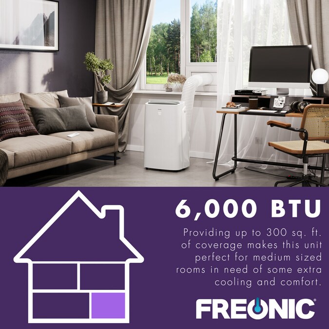 • Freonic 9,000 BTU (6,000 BTU DOE) Portable Air Conditioner offers efficient cooling for small to medium-sized rooms up to 300 sq ft