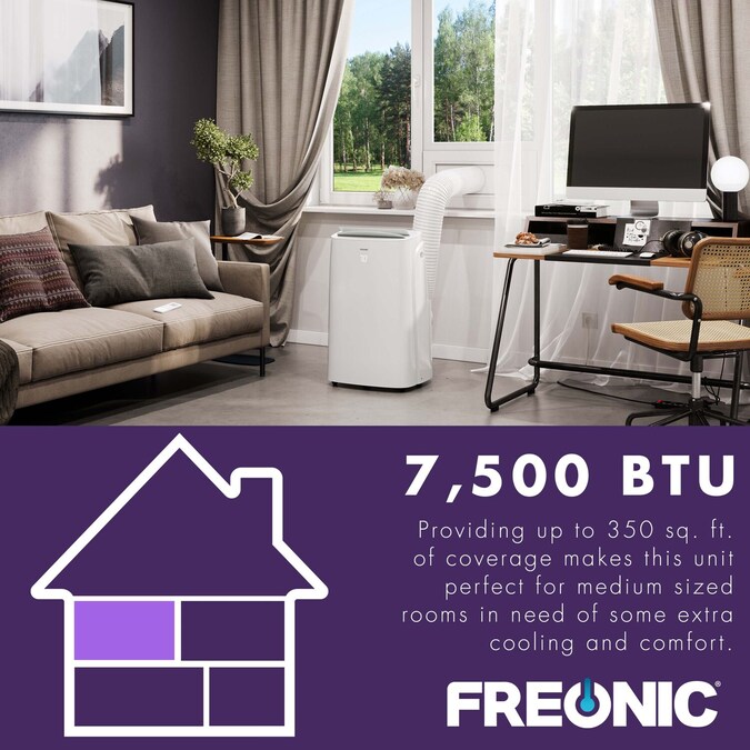 There is a fine line between form and function, and our Freonic Portable Air Conditioner is just that. This balance makes the air conditioner perfect for the modern homeowner with modern convenience in mind. Automatic louvers gently push air around the room, meaning once the unit is powered on, your work is done. Adaptive controls respond quickly to a simple touch and the unit’s soft glow shine through plastic LED displays the temperature without taking away from the polished look of the unit. With 3 cooling speeds and suitability for a room up to 350 sq. ft., the unit will make a noticeable difference within minutes of activation. To increase comfort even more, the unit comes with built-in bucketless dehumidification capabilities of removing up to 60 pints per day. Energy Saver mode is an option for when you’re out as the unit only circulates air when it senses a change in temperature instead of running continuously. The unit is also easily installed with included installation kit, an