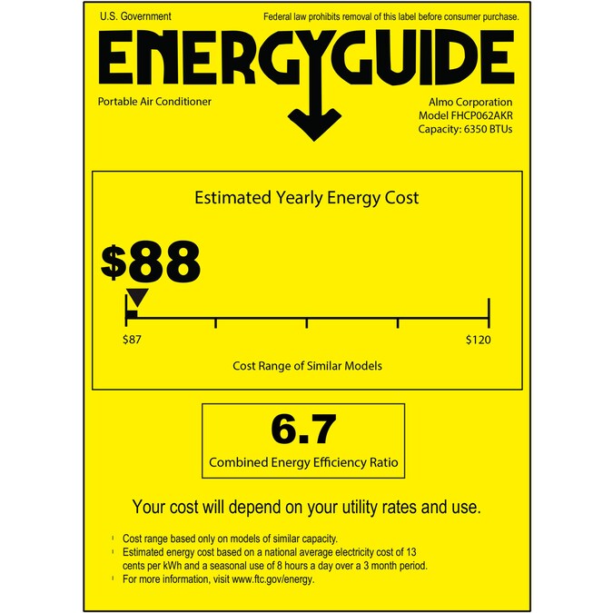 - Combined Energy Efficiency Ratio (CEER): 0
