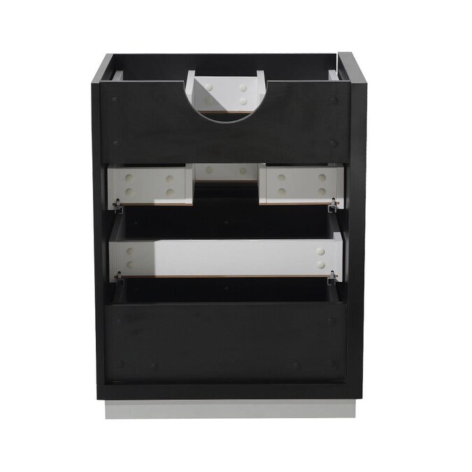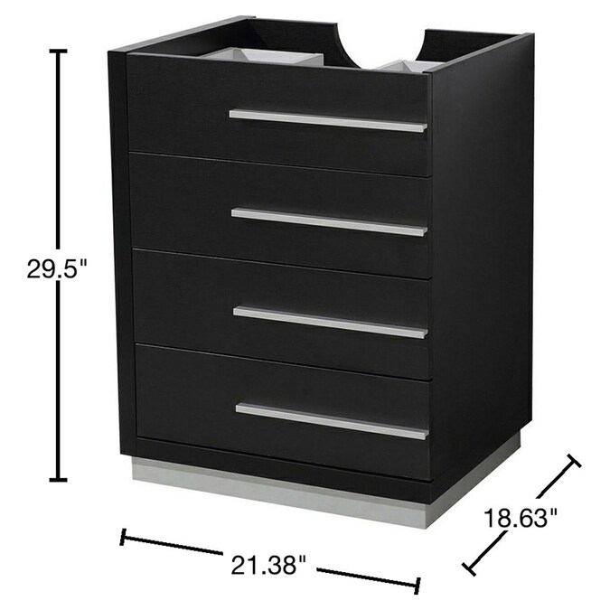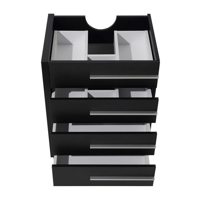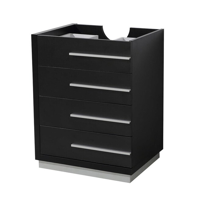 With clean lines and trendy offset brushed pulls, this stylish bathroom cabinet adds a touch of design elegance to any home. With four spacious soft closing drawers, the sleek Fresca Livello cabinet instantly updates tired décor. With a chic Black finish, this cabinet is a must-have for the modern bathroom. This Fresca Livello Modern Bathroom Cabinet measures 24” in width and also comes in a larger 30” width.