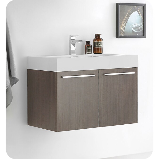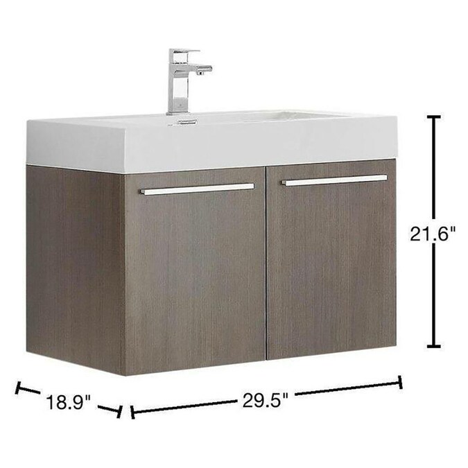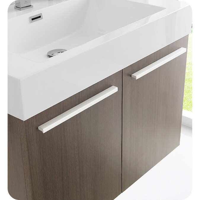 Take your bathroom from basic to beautiful with the Fresca Vista line. The trendy rectangular sink has clean lines and a bright white finish, while the contemporary Gray Oak wall mounted bathroom vanity offers superior storage, soft close doors and sleek brushed pulls. This lovely vanity is available in multiple sizes to give a chic, modern touch to any bathroom.