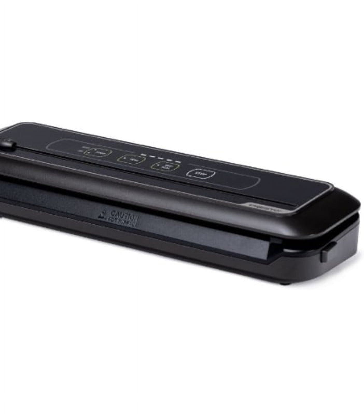 Keep foods fresh up to 5x longer with the Presto FreshDaddy Compact Electric Vacuum Sealer. It features a convenient top-mounted bag cutter for making custom-length bags for freezer, refrigerator, and pantry food storage. Save money by buying food in bulk and making portioned packages of meat and fish for easy meal planning. Preserve vegetables for meals and fruits for smoothies. Package and seal nuts, rice, and cookies to keep them fresh longer. This compact-sized model is also ideal for sous vide. Seal food in vacuum bags for perfect sous vide meals every time. Soft-touch buttons offer options for moist or dry food, seal only, and vacuum seal. The airtight vacuum seal helps to protect food from freezer burn and reduces waste. It’s also a great way to safeguard non-food items from moisture or corrosion. Includes one 8” x 10’ roll for making bags, four quart-size bags, and an accessory port for use with reusable zipper bags with ports and containers. Vacuum tube, zipper bags with ports, and containers sold separately. Works with FreshDaddy and most other brands of bags and rolls.