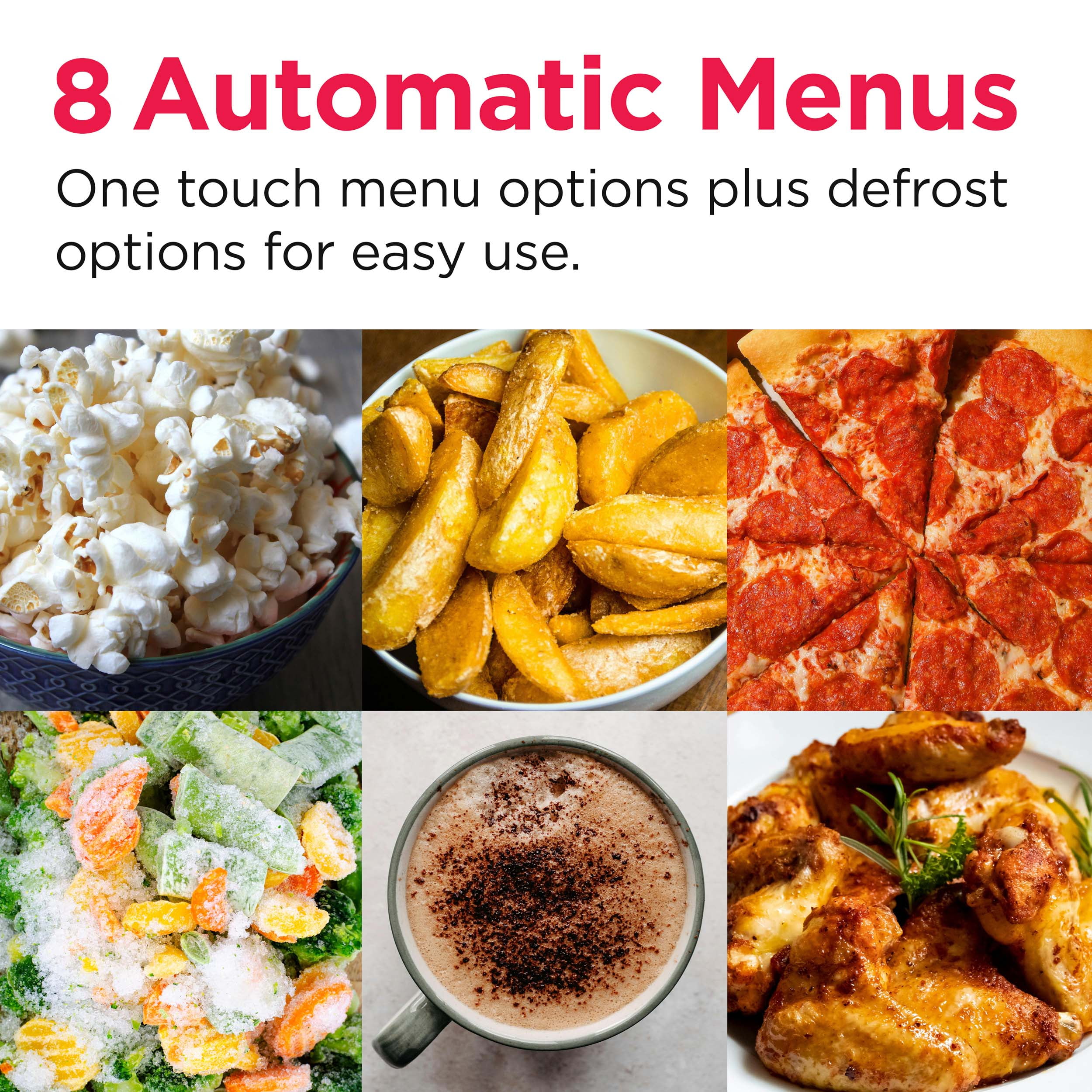 Small Countertop Microwave – Ideal for smaller kitchens, dorms, and apartments this small microwave takes up little counter space and cooks all your favorite foods. Pre-Programmed Timers – Our low profile microwave features 6 pre-programmed options for popular snacks such as popcorn, pizza, French fries, and wings/nuggets. Removable Glass Turntable – Each small microwave oven boasts a glass turntable that provides a clean, stable base for dishes and can be removed for quick cleanup