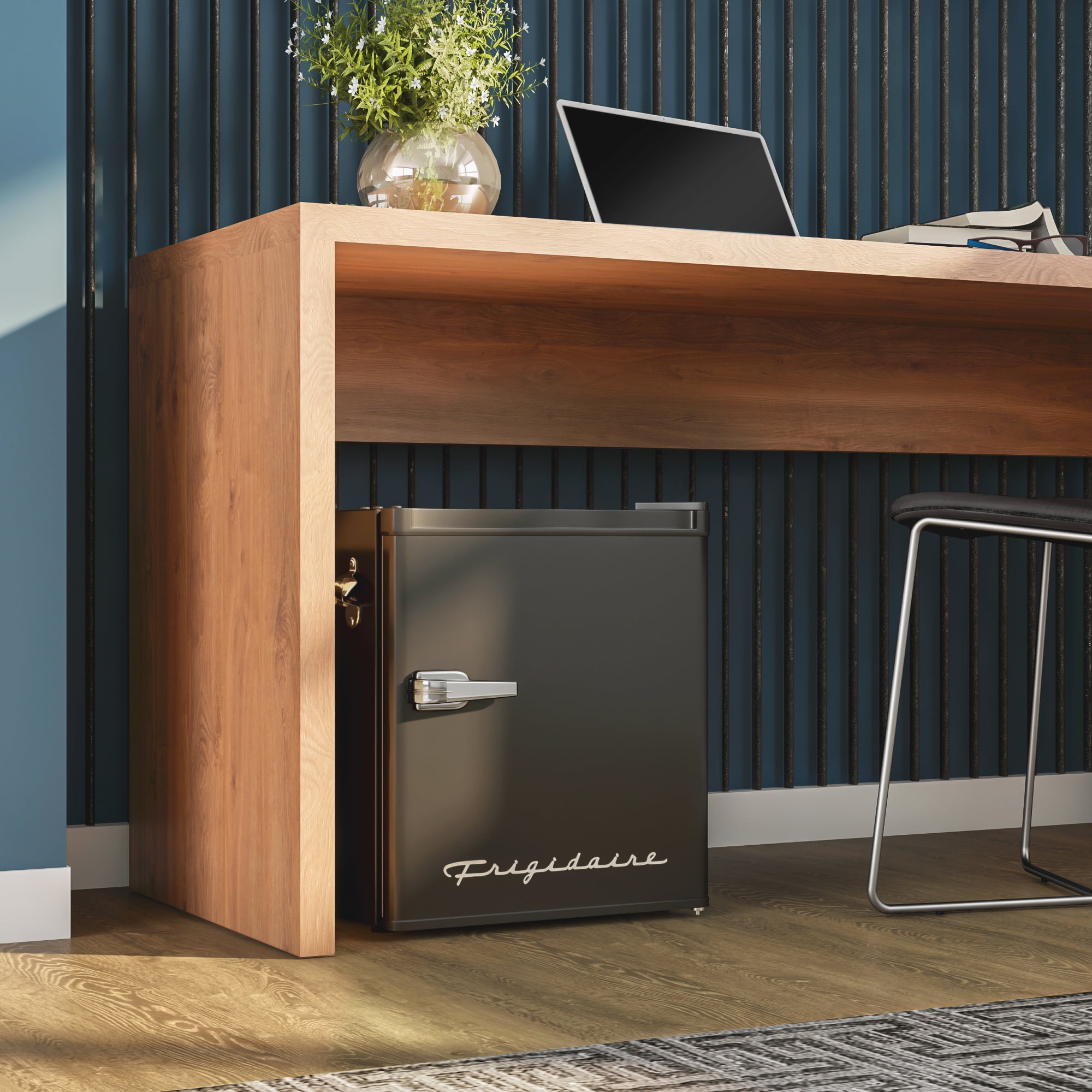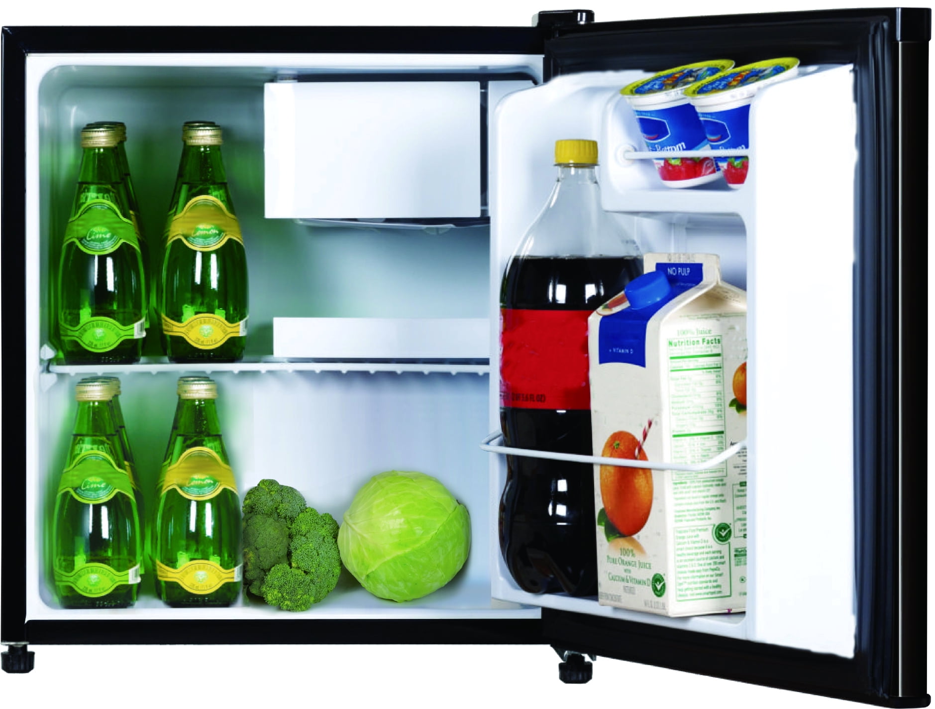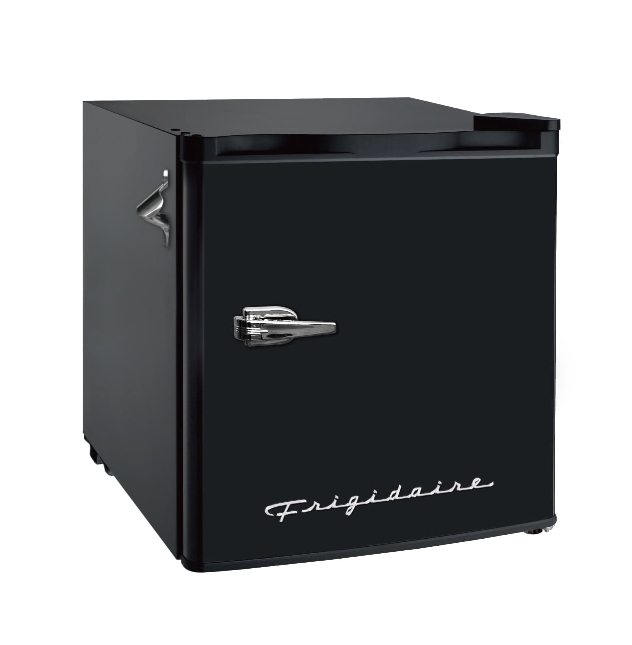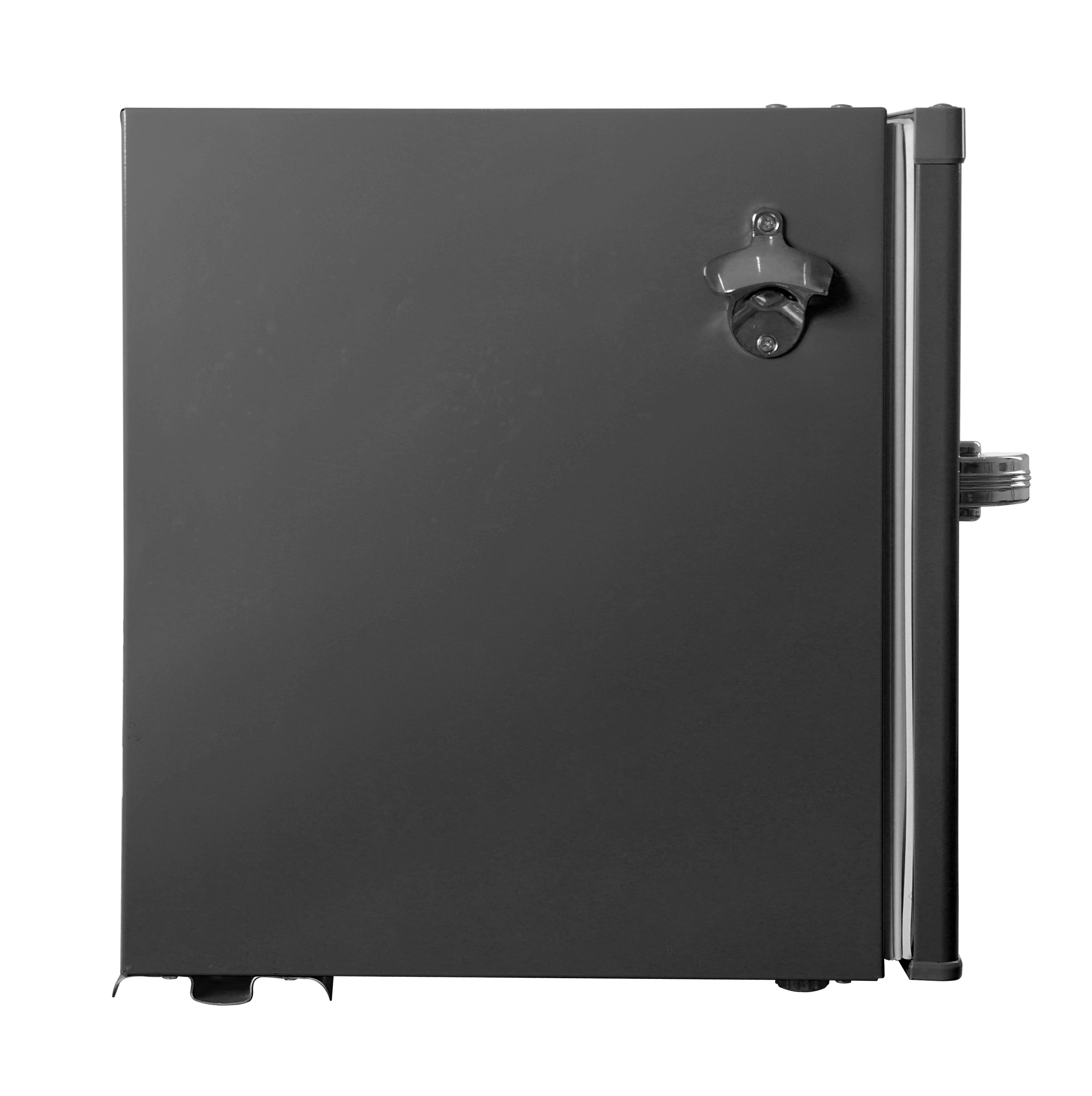 Convenient eraser board allows you to write and erase notes and lists right on the door. Ice Cube tray included allows you to make ice any time. Adjustable wire shelf lets you customize your refrigerator to meet your food storage needs. Two door compartment shelves allows for easy storage of single cans and well as a 2-liter bottle. Opening bottles is a breeze with this built-in side bottle opener. No more fumbling through crowded drawers hunting for your bottle opener. 1.35 cu. ft. fresh food compartment and .25 cu. ft. freezer compartment allows for additional storage of fresh food and frozen goods. Chrome pull handle adds to the retro look.
