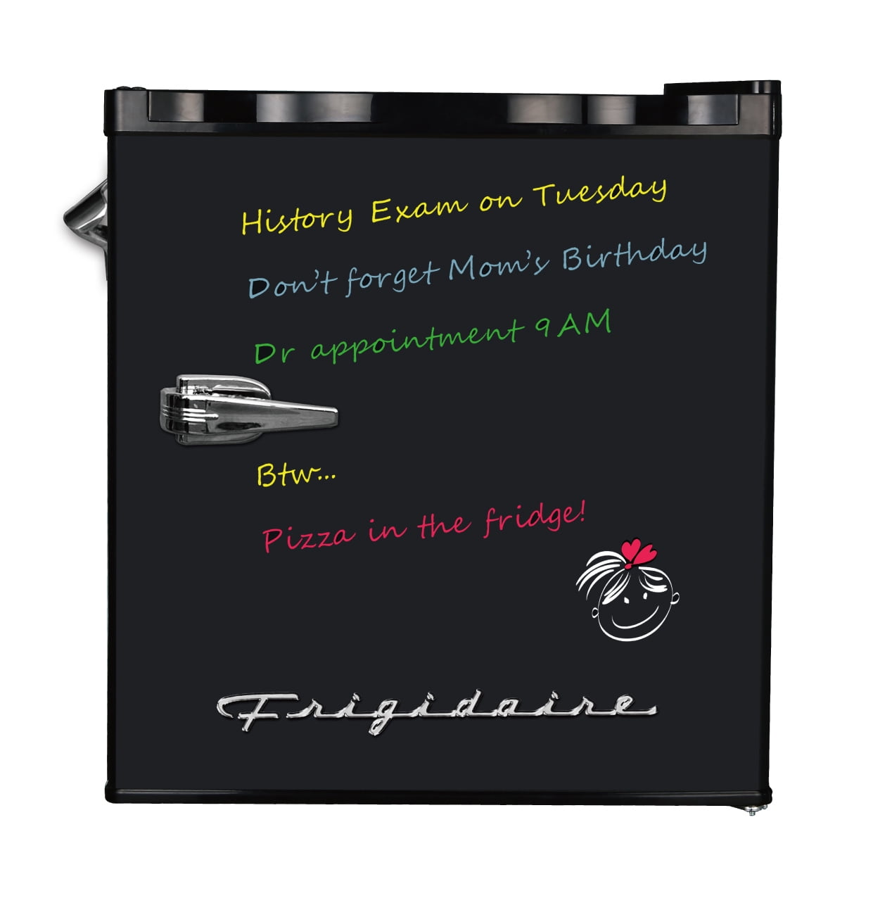 Frigidaire, 1.6 Cu ft Retro Dry Erase Compact Refrigerator With Side Bottle Opener, (EFR177), Black