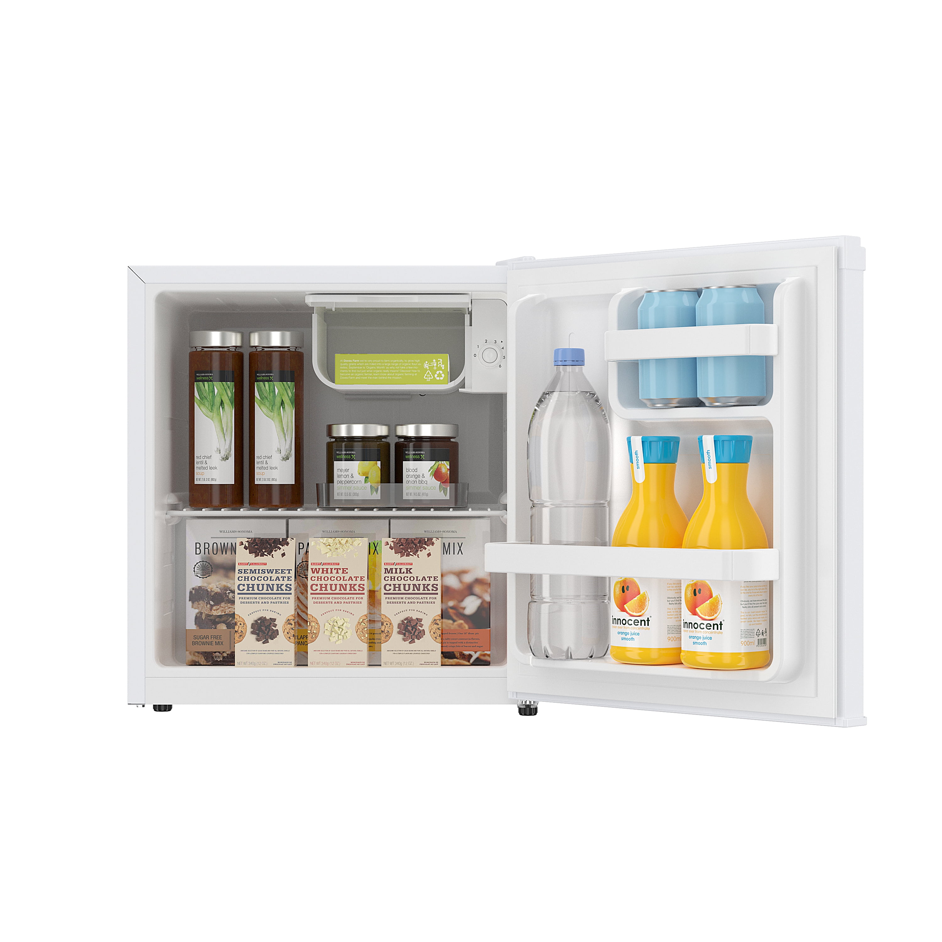 Capacity: 1.6-cu ft Compressor cooling· CFC free – (No Chlorofluorocarbons) Contains no CFCs harmful to the zone layer Flush back design Low energy consumption Invisible door handle Reversible door Door basket for 2-liter bottles Ice cube tray Separate ice cube chamber Adjustable thermostat Dimensions: 17.51″W x 18.62″D x 19.60″H Color: White
