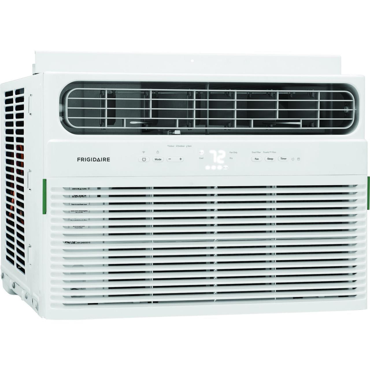 12,000 BTU window mounted air conditioner Wi-Fi connected with the Frigidaire app Works with Amazon Alexa and Google Assistant Designed for rooms up to 550-sq. ft. Dehumidifies up to 3.8 pints per hour Optimum circulation with multi-directional airflow and 3 fan speeds Capture dust from the air with the washable dust filter Programmable timer