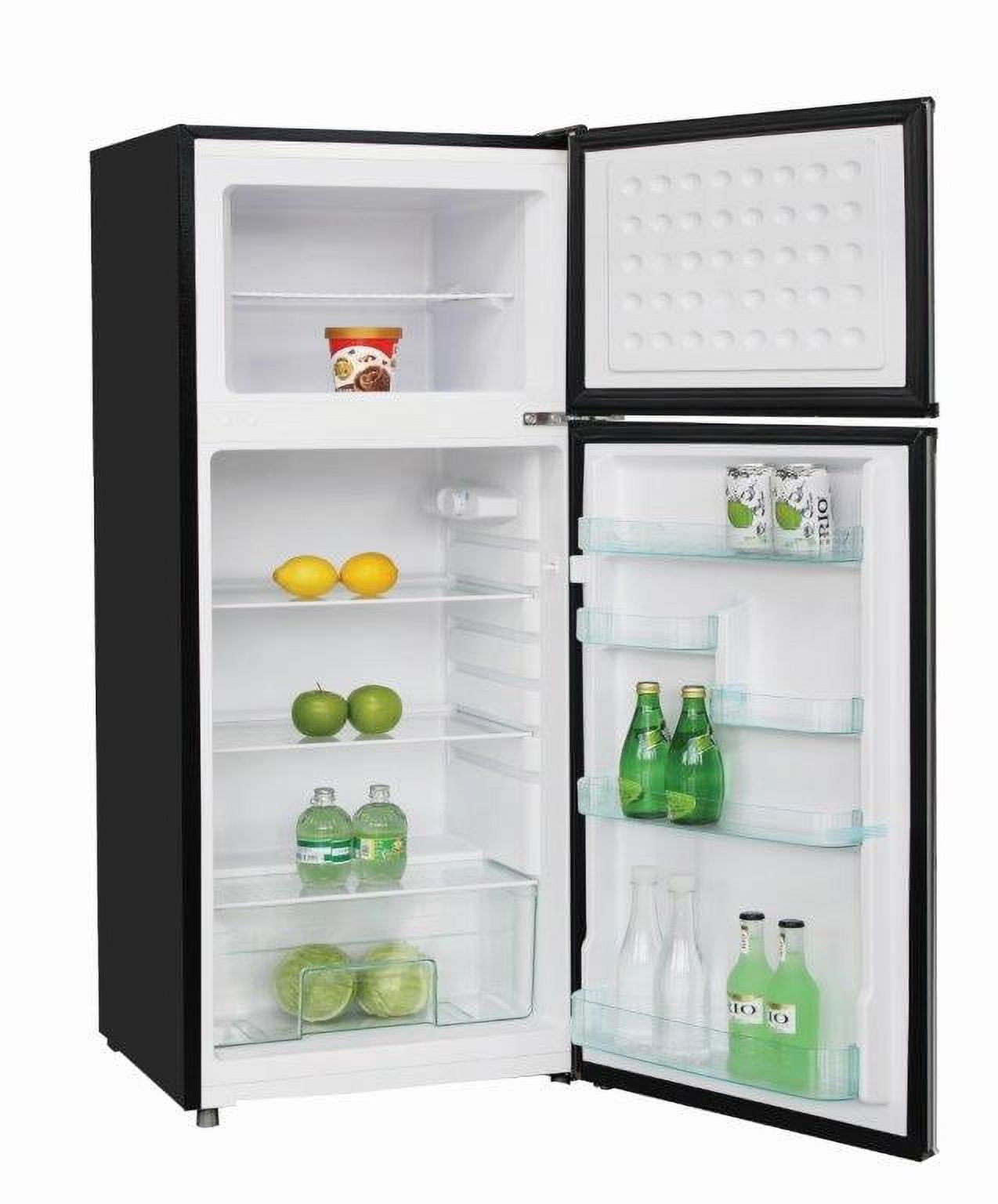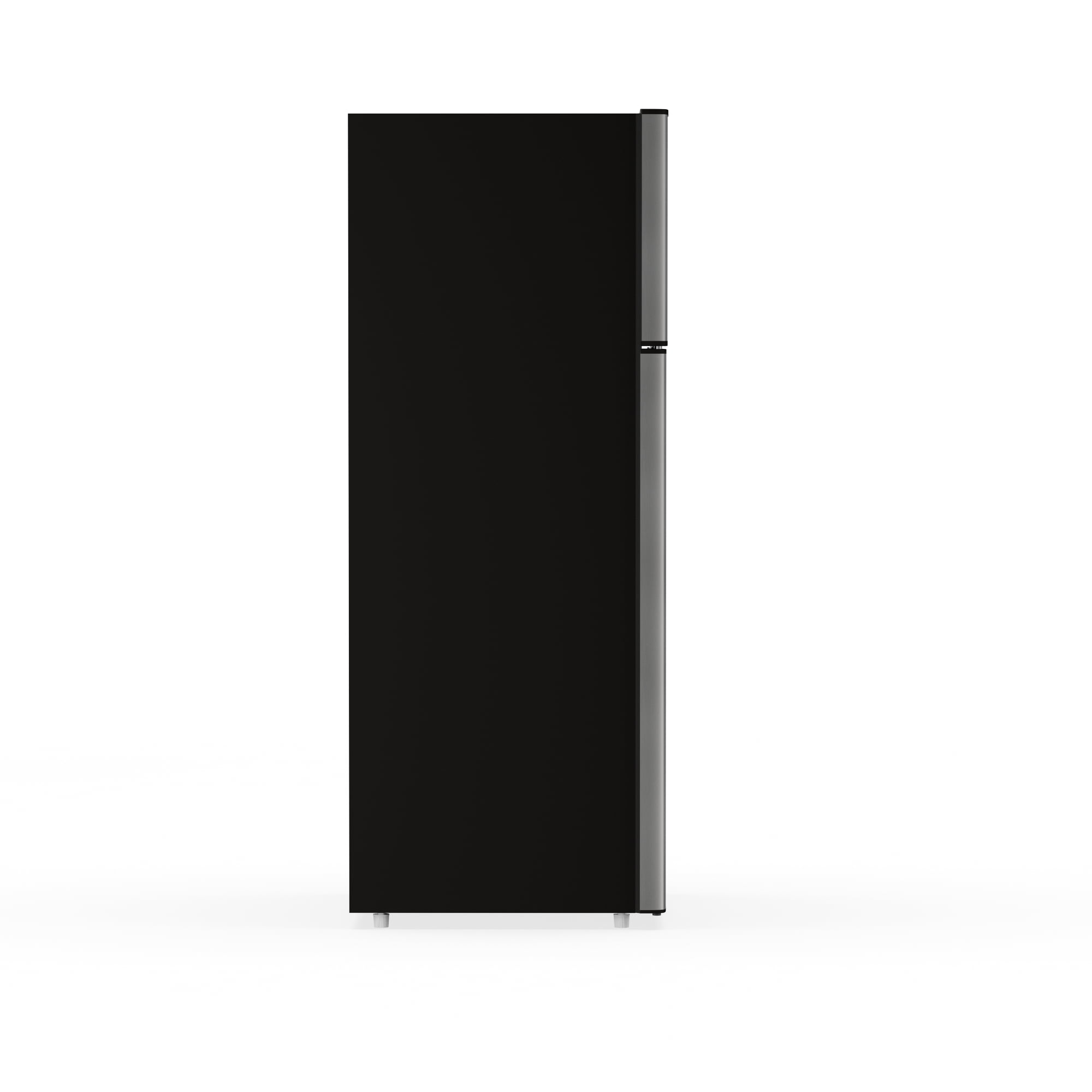 Easily accessible temperature controls make temperature management easy Spill-proof glass shelves contain spills and simplify cleanup, preventing liquids from leaking on to shelves below 5-storage bins in the door for tall bottles and smaller items help to keep your refrigerator organized Vegetable and fruit crisper bin help preserve the freshness of fruits and vegetables 7.5 cu. ft. of storage capacity lets you stock up on all of your favorite foods Full-width, fixed wire freezer shelf and door bin provide organized storage for frozen foods New 2-door refrigerator freezer has 1 fresh food door and one top mount freezer door, Standard Door Style Adjustable legs ensure your refrigerator is always level even when your floor is not Bright incandescent lighting illuminates your food and freezer compartments so you can see and easily find just the right food item for that midnight craving Sleek and stunning platinum design compliments any décor