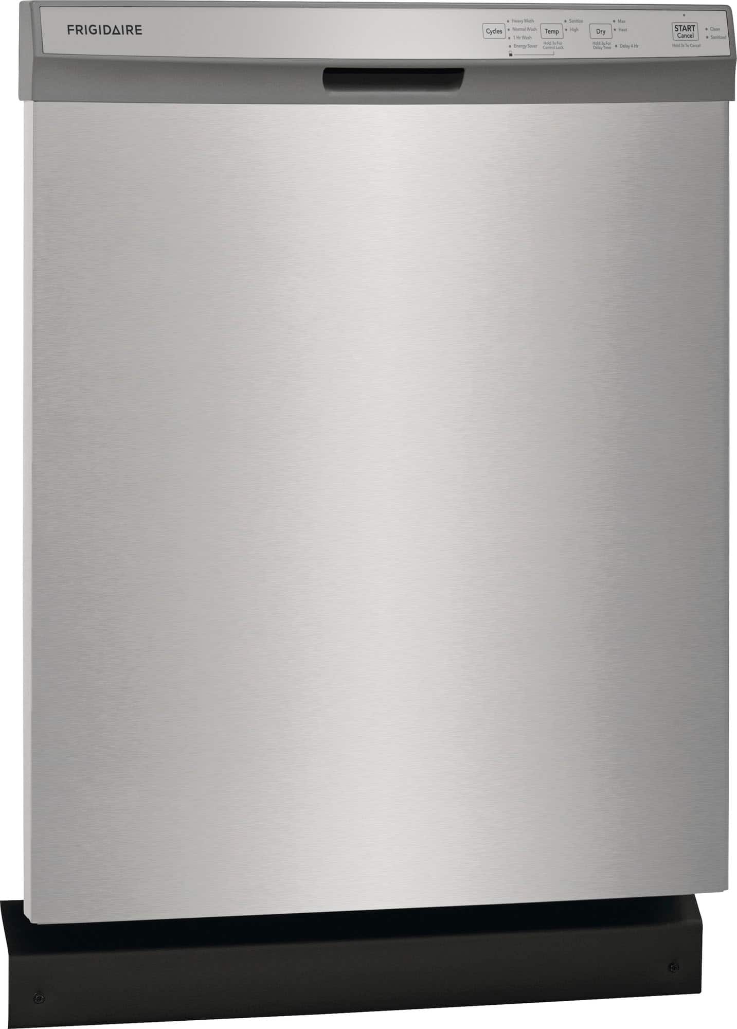 The Frigidaire 24″ Front Control Built-In Plastic Tub Dishwasher with MaxDry 54 dBA offers triple the cleaning power giving your dishes a more effective clean with our three spray arms that achieve better water coverage. Plus, enjoy an enhanced dry with MaxDry, which delivers better results reducing the need for towel drying. This quiet dishwasher (54 dBA) also includes DishSense Sensor Technology, a sanitize option and is Energy Star certified.