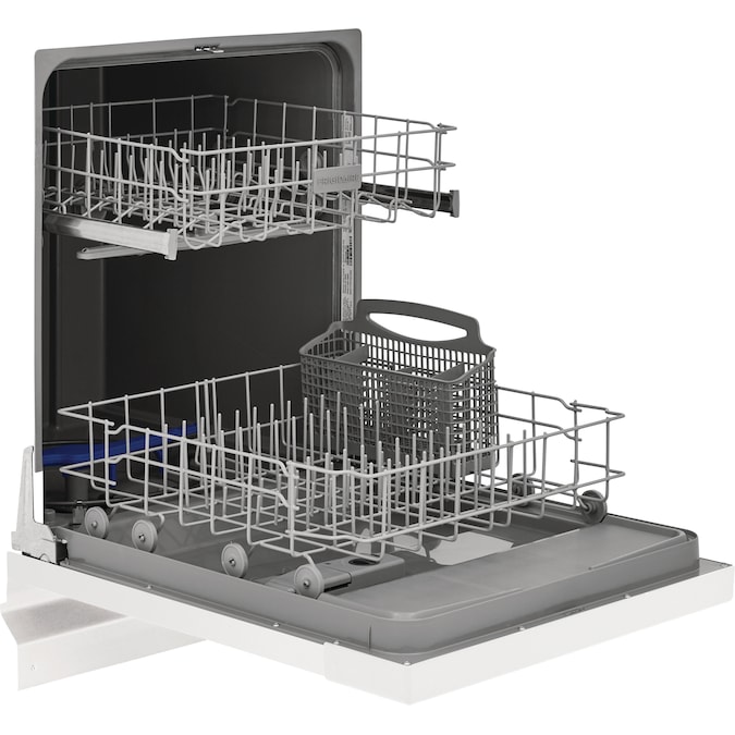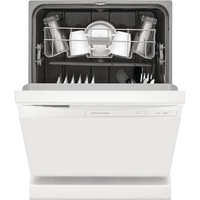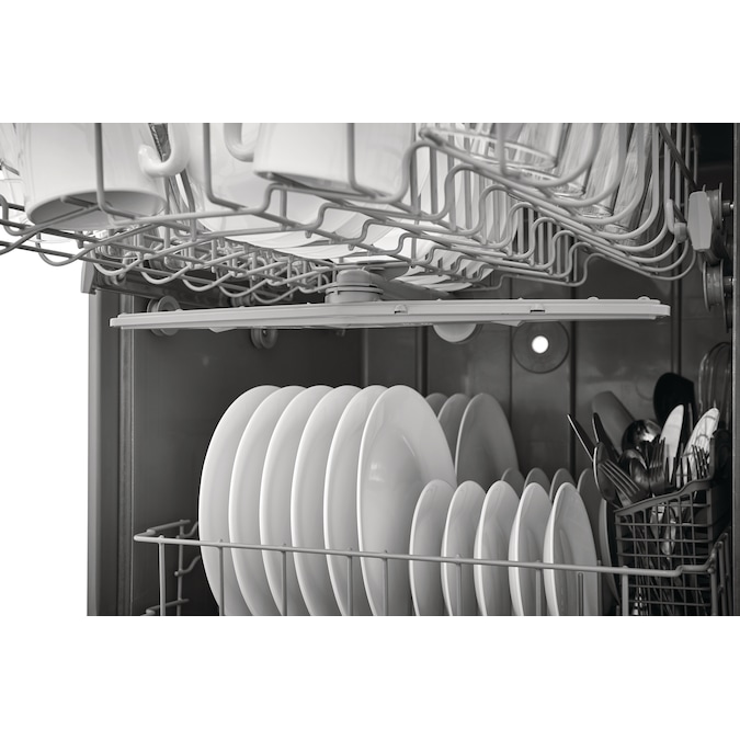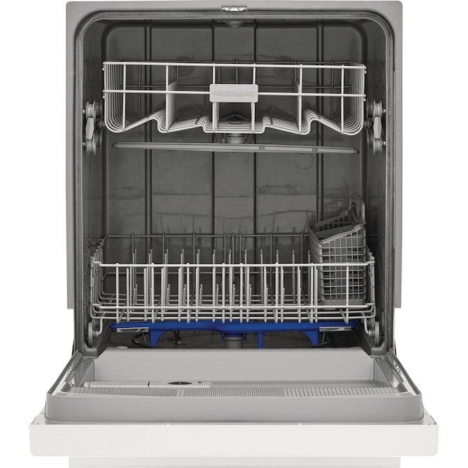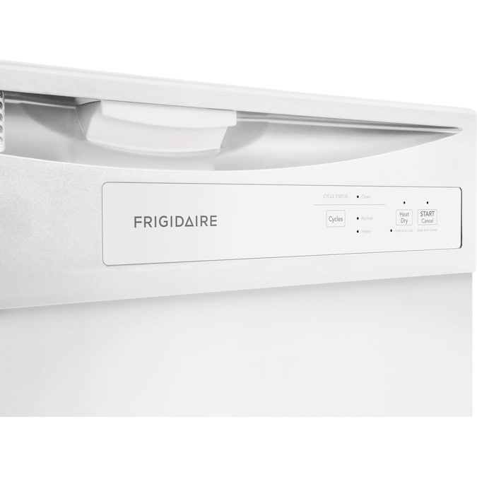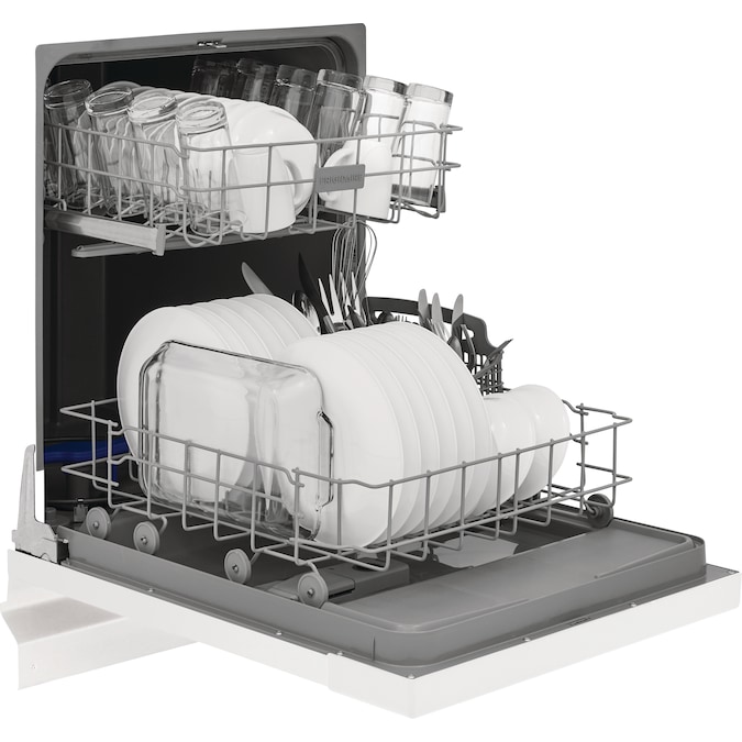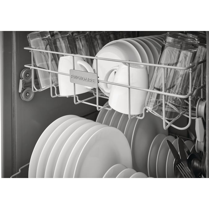 The Frigidaire 24 in. built-in dishwasher offers a complete clean with the 5 level wash system, featuring an upper spray nozzle, middle spray arm, and lower spray arm. Reduce energy use with the no heat dry option and clean 14 place settings in one cycle.
