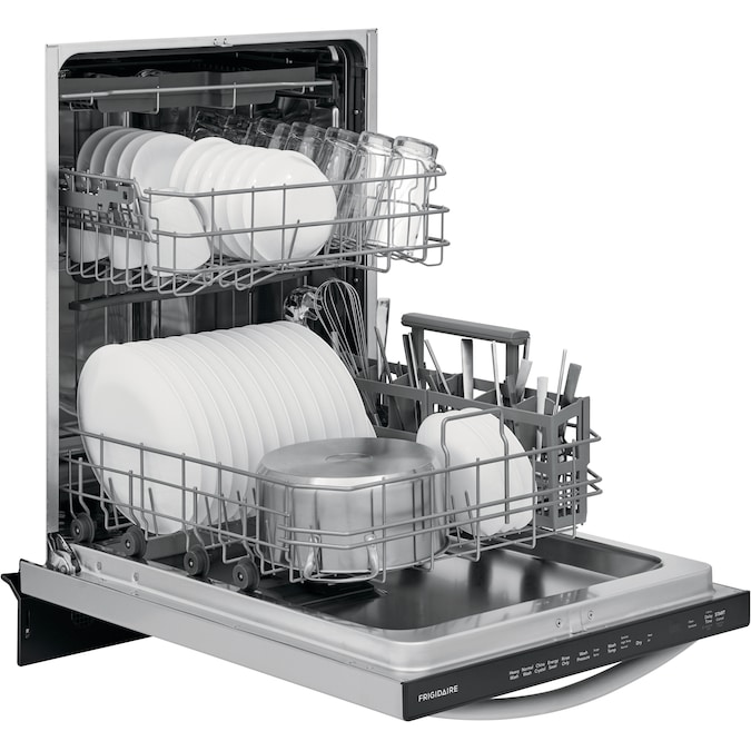 The Frigidaire 24″ Stainless Steel Tub Built-In Dishwasher offers better water coverage from our BladeSpray Arm, so you get clean dishes, pans and utensils corner to corner. Loading and unloading is easier with our three level rack dishwasher. And you can expect your dishes to be dry the first time with our EvenDry™ system.
