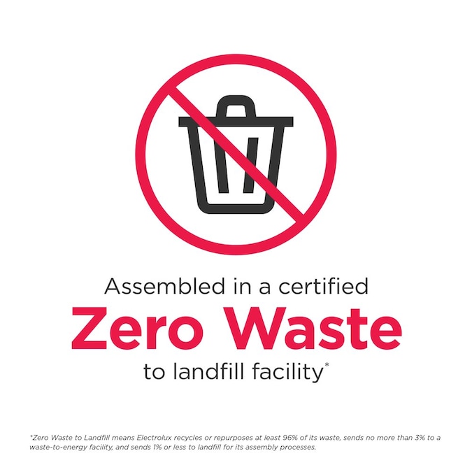 - This dishwasher was assembled in a certified zero waste to landfill facility*. Electrolux’s goals is for all of our production facilities to be certified by 2025 Zero Waste to Landfill means Electrolux recycles or repurposes at least 96% of its waste, sends no more than 3% to a waste-to-energy facility, and sends 1% or less to landfill for its assembly processes