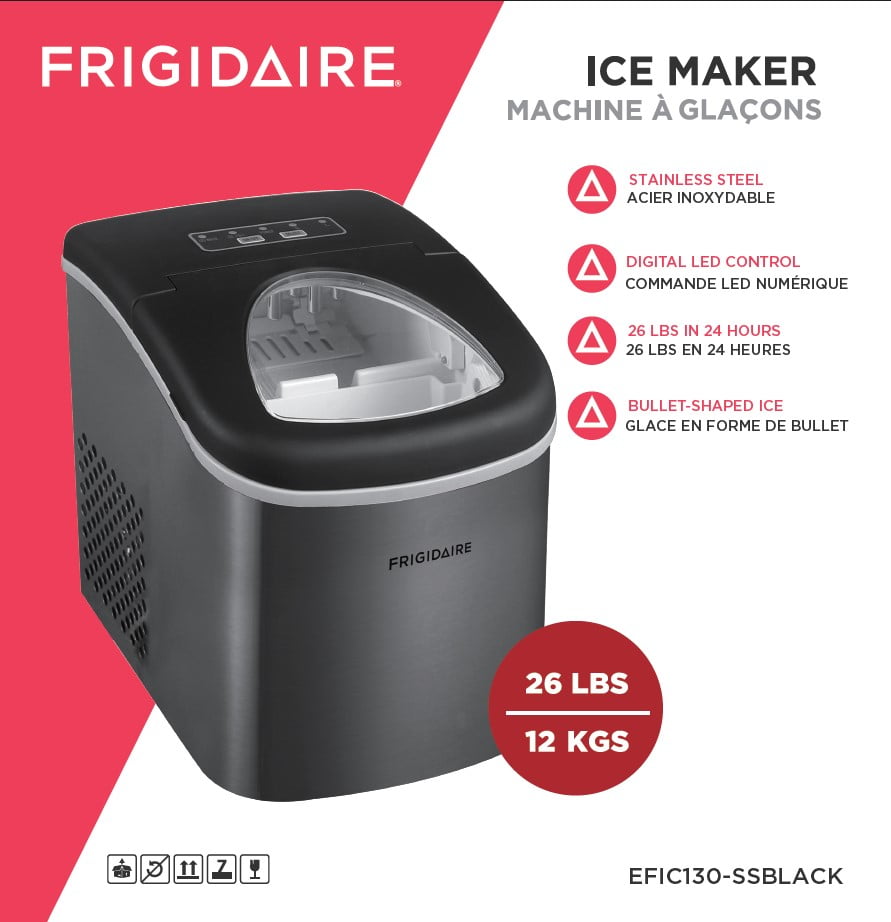 Frigidaire 26 lbs/Day Capacity Countertop Ice Maker, Compact Portable Design