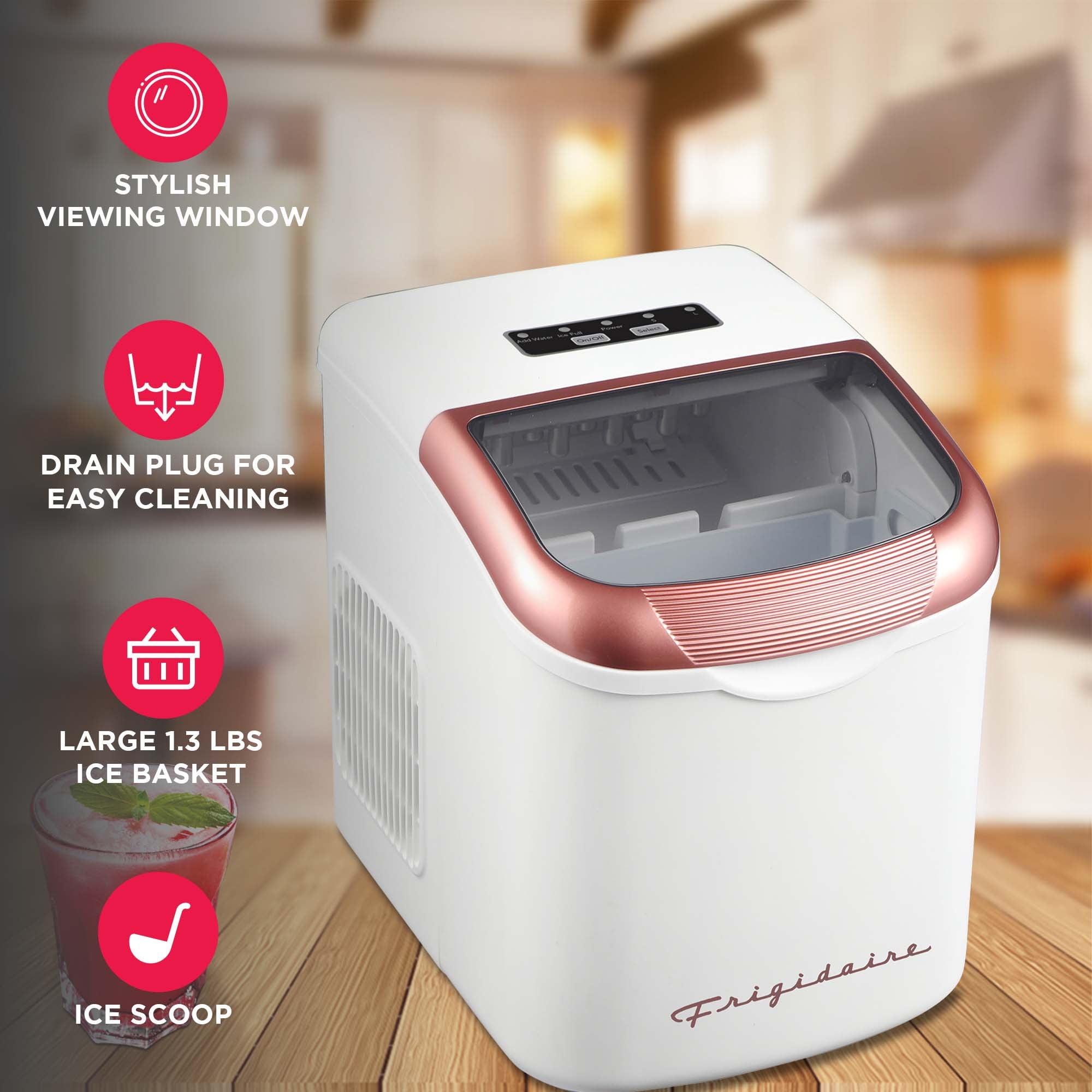 Frigidaire, 26 Lbs. Ice Maker, Bullet Shaped Ice, Rgwhite