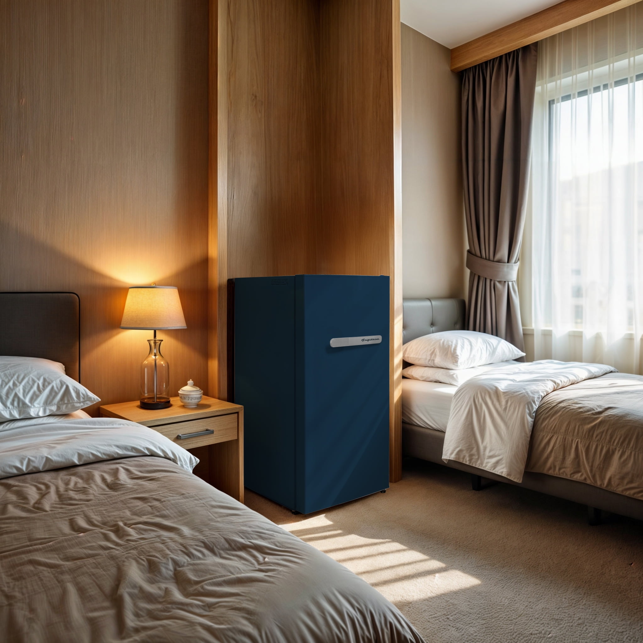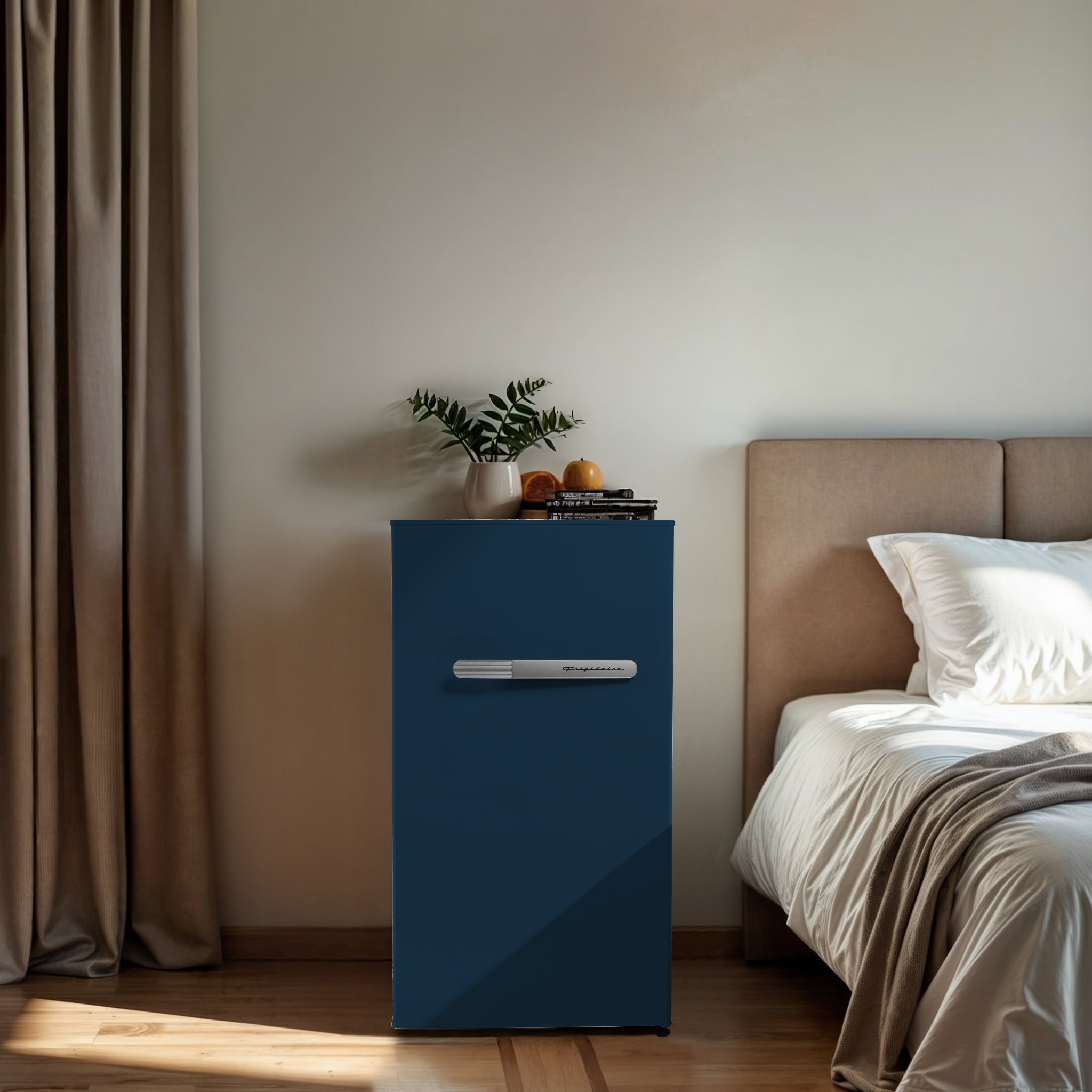 Frigidaire 3.1 cu. ft. retro compact fridge built-in side bottle opener W: 18.9″ x L: 17.95″ X H: 33.27″ (Azure)