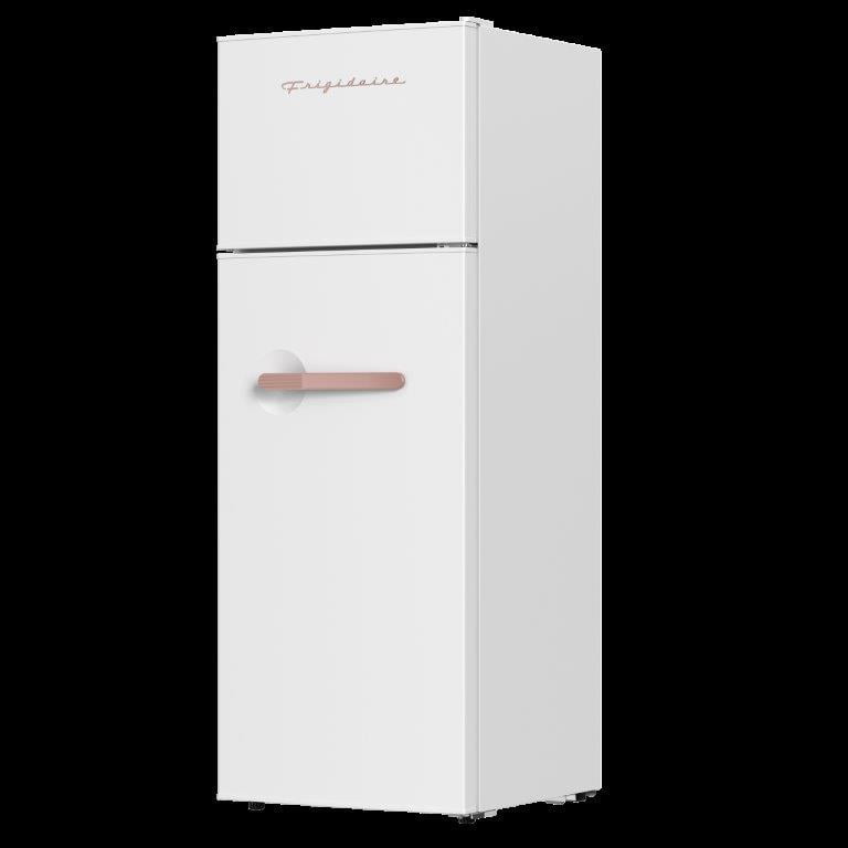 Frigidaire, 7.5 cu. Ft. Retro Top Mount Fridge, EFR768, W: 20.59″ x L: 22.24″ X H: 56.38″, Rosegold White