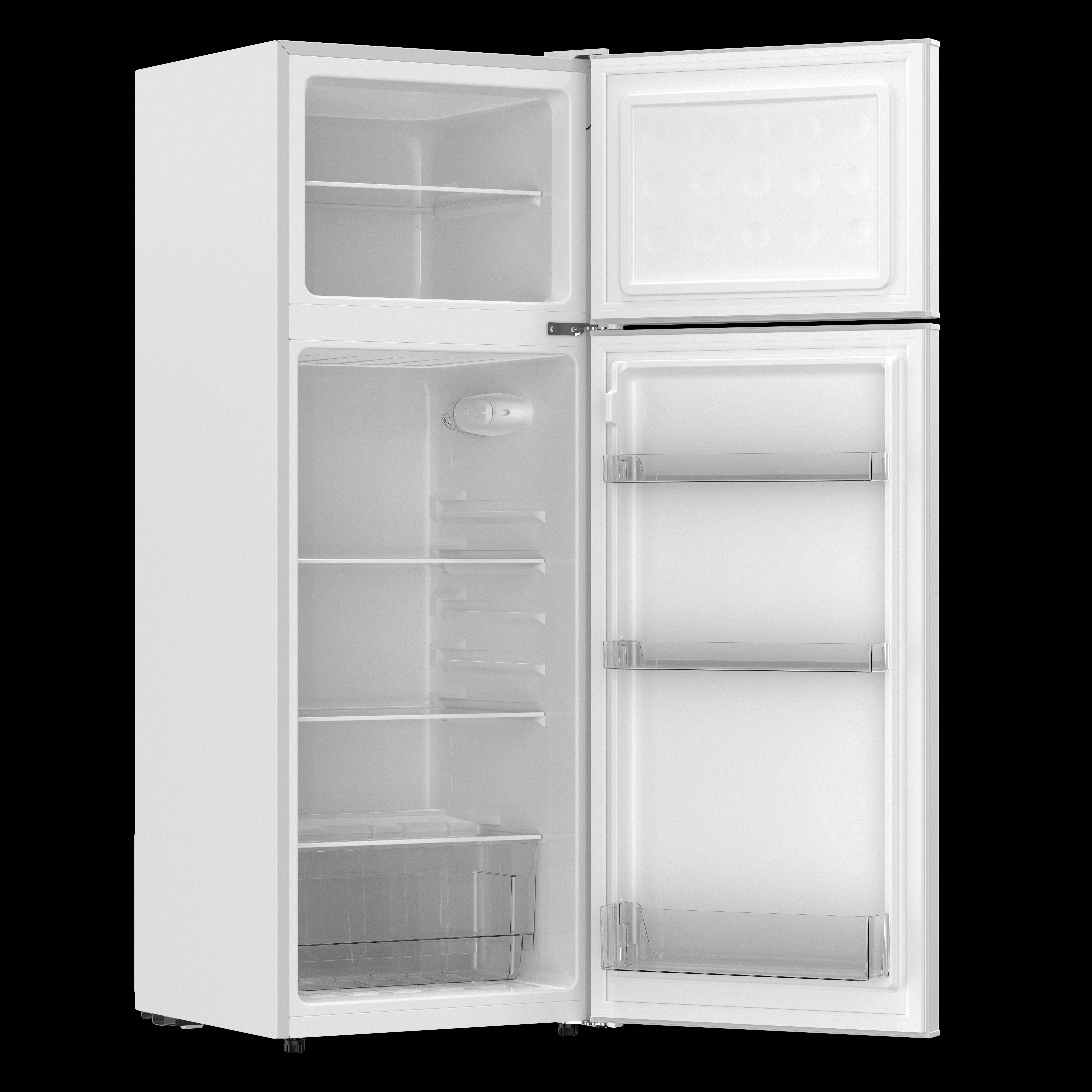 SPACIOUS STORAGE: With a generous 7.5 cu. ft. capacity, this retro refrigerator ensures you have ample space for all your essentials, making it easy to keep everything at your fingertips. ORGANIZED CONVENIENCE: Equipped with removable glass shelves, a transparent crisper, and a full-width door bin, this small upright fridge offers organized and convenient storage for all your food and beverage items. DEDICATED FREEZER: Enjoy the convenience of a separate freezer compartment with ample space for your frozen goods, along with an adjustable thermostat and interior lighting for both compartments.