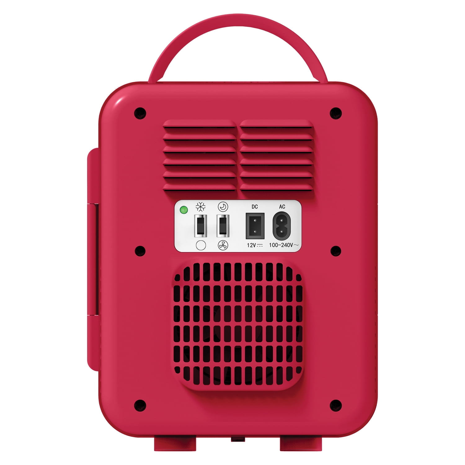 48 Watts Of Power Hold 6 Cans Or 4.2 Qt. (4 L) Mini Fridge With Maximum Chill Keeps Food, Drinks, Cosmetics, And Medicines At Ideal Temperature While At Home And On The Go By Way Of Thermoelectric Cooling Quiet And Safe From Vibration When Ambient Temperature Is 77°F, The Cooling Temperature Is 44°F To 50°F Compact, Space-Saving Design And Lightweight Features For Easy Portability, Yet Can Still Fit Personal Needs Easy-To-Clean Interior Base Does Not Scratch Furniture Includes Ac Power Cord And 12-Volt Car Adapter Red