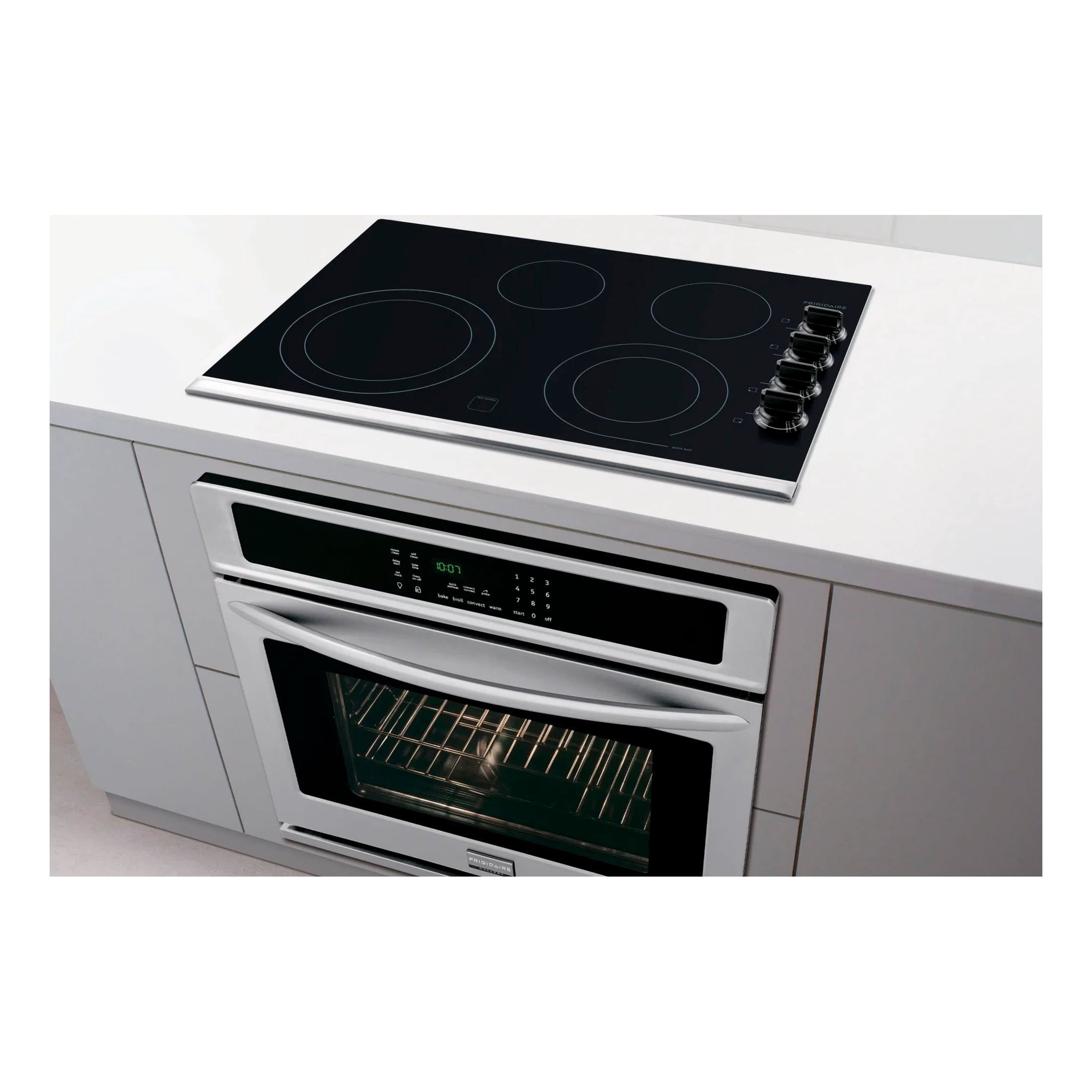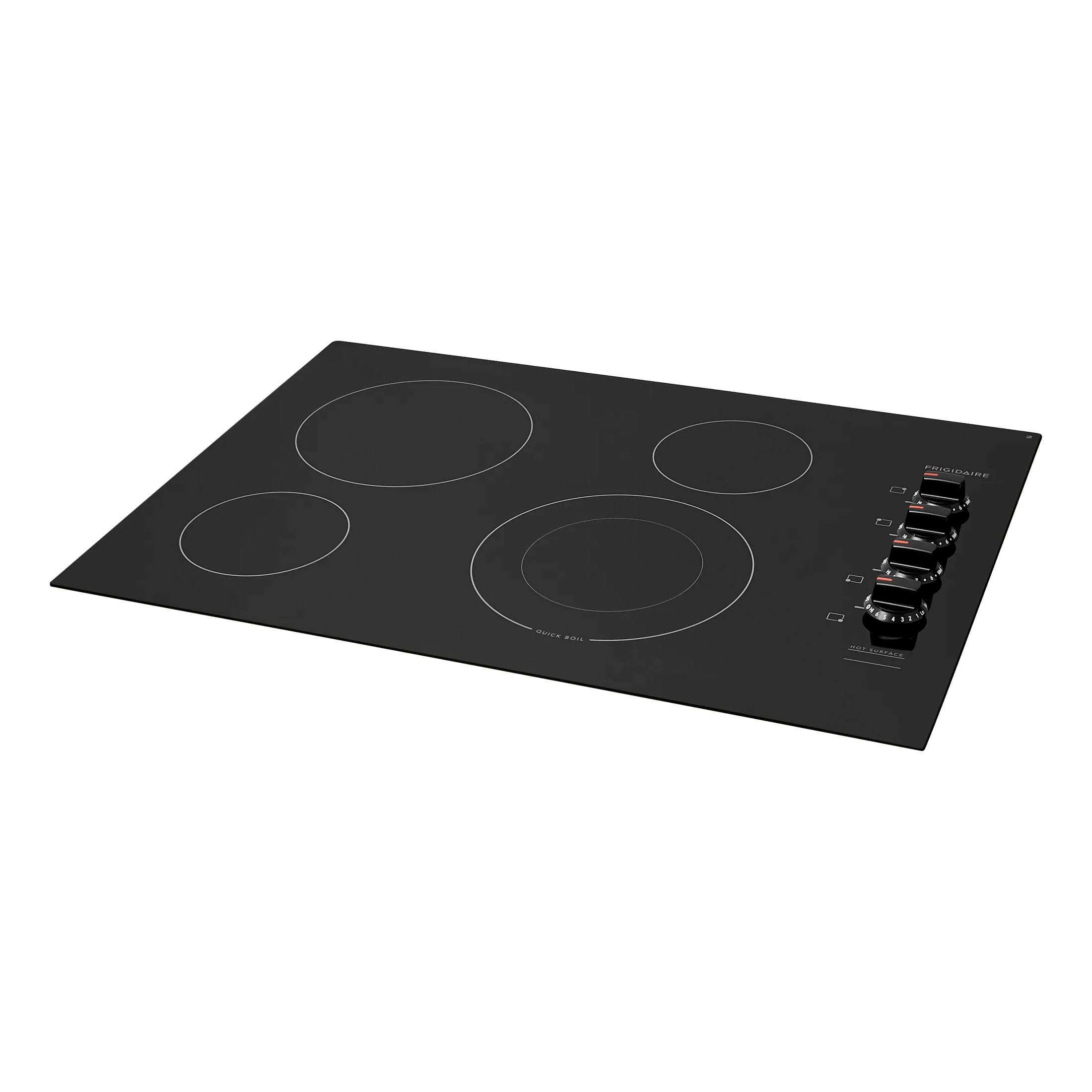 Frigidaire FFEC3025UB Electric Cooktop, 30″, Black, 4 Element Burners. This electric cooktop combines versatility with safety features such as alert notifications for high temperatures and easy-to-use controls. Get meals on the table faster with our powerful 3,000W Quick Boil element.