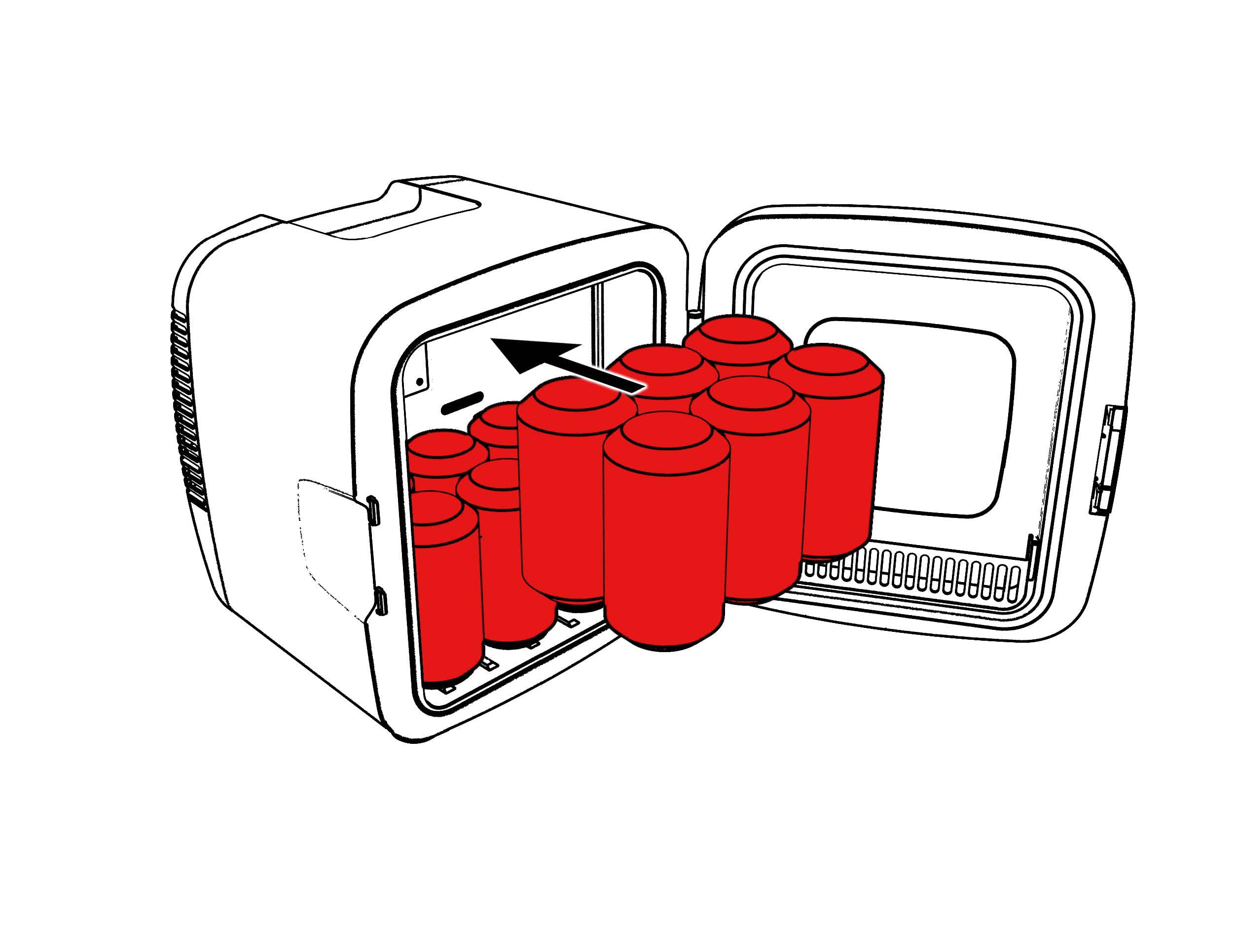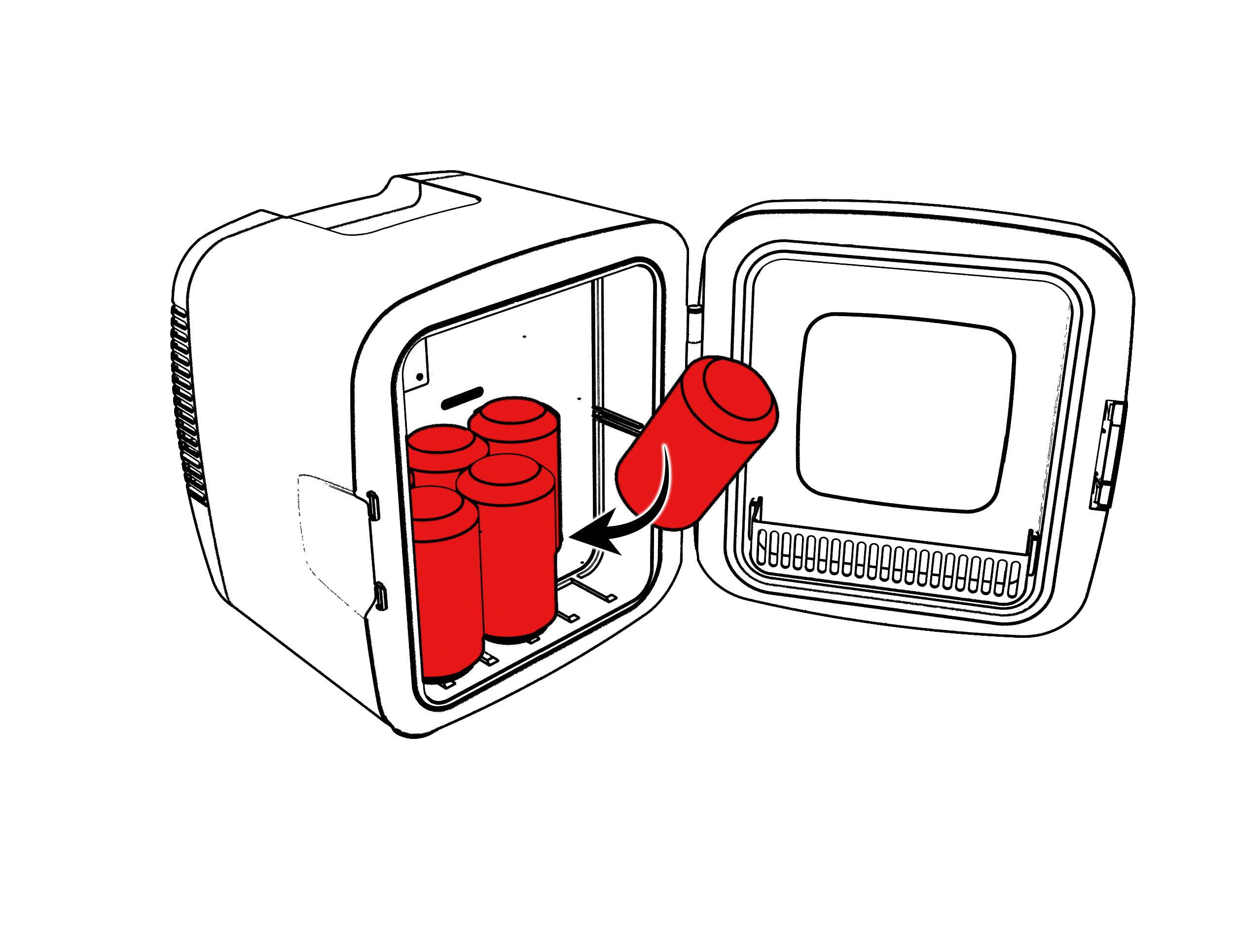 Features built in interior lighting to help see what’s inside. Features built in interior lighting to help see what’s inside. Store snacks, beverages, medication, breast milk, insulin, skin care products and more! Fits easily on your desk, bookshelf or other handy spot· Holds 12 cans or 9 liters Extra large front viewing window allows you to easily see inside without opening the door and letting the cold out MAKEUP STORAGE: Great for doing your make-up at home or on the go. CHILL: Thermoelectric cooling system. Extend the shelf life of your favorite skin care products by keeping them chilled! Dependable thermoelectric cooling; quiet and vibration free Cools 20 degrees Fahrenheit below ambient room temperature Shelf for storing multiple items Ideal for dorms, drivers, cubicles, nurseries, or anywhere simple drink storage is needed Economical design consumes much less power than a traditional refrigerator; please allow 2 hours to reach optimal temperature Plugs into a 12V car adapter or home outlet, both cords are included