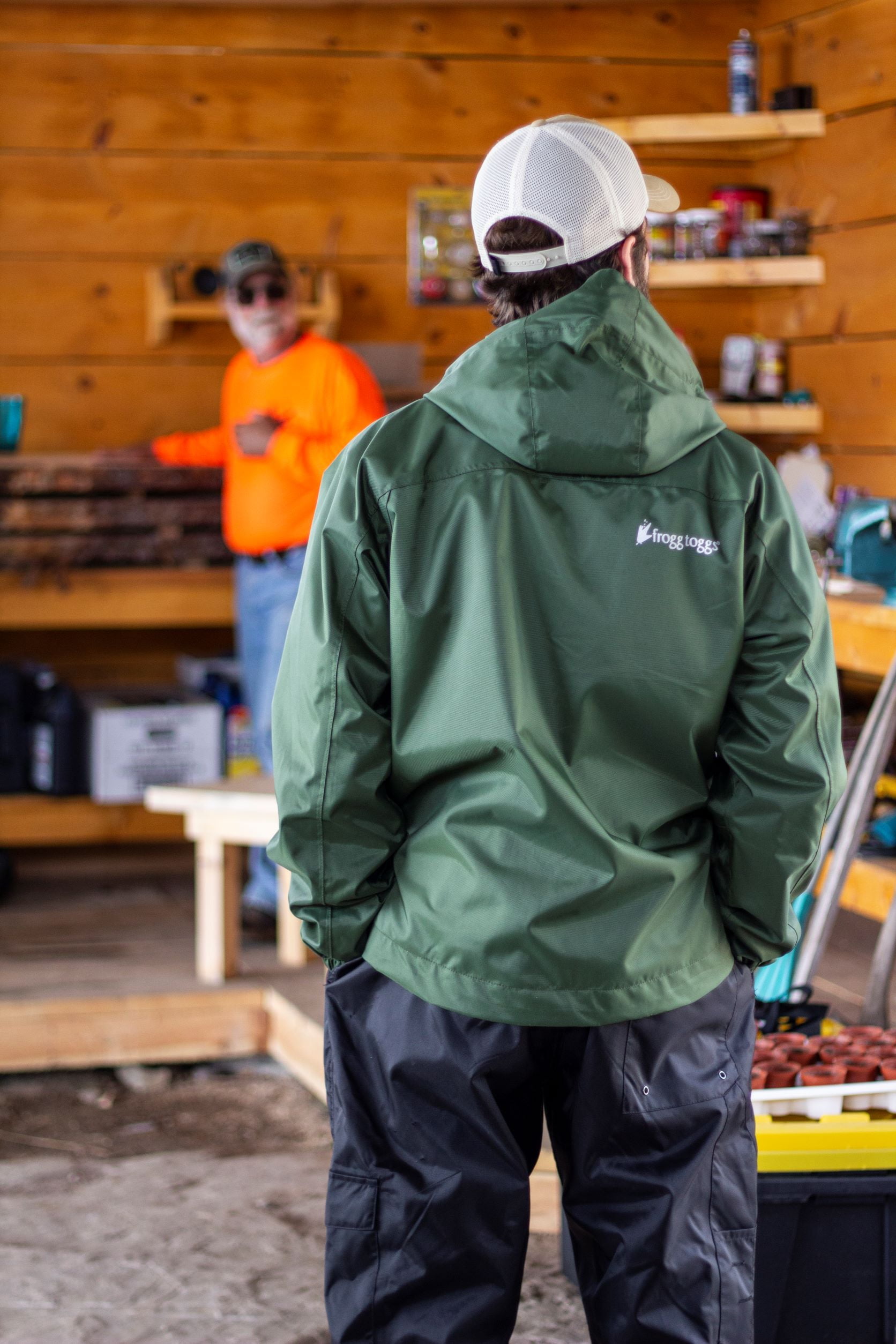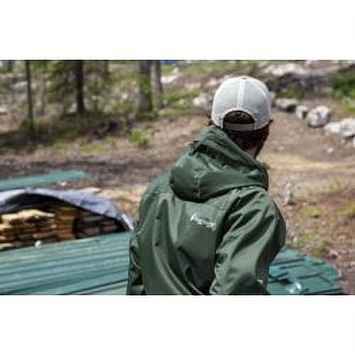 Frogg Toggs Stormwatch Rain Jacket with Set-in Sleeves (Men) Made with Frogg Toggs’ signature 100% waterproof nylon and dri-pore gen 2 fabric blend 420 denier nylon outer shell with dri-pore 2 inner layer for protection, comfort, and breathability Adjustable, attached hood to keep your head and hair dry and protected Full zipper closure with added inner and outer storm flap and snap closures to help keep moisture out and keep you dry Zippered external and internal pockets that provide ample storage for all of your essentials Hook and loop adjustable wrists for secure fit Cord lock adjustable waist to help wearer achieve the perfect fit Made for durability and function 8,000 mm waterproof rating; 3,000 MVTR breathability rating; windproof One year manufacturer’s warranty Available in green and men’s sizes MD/LG and XL/2X Perfect for fishing, boating, hiking, sporting events, site seeing, and all of your favorite outdoor activities Since 1996- frogg toggs has endeavored to provide the world’s best rainwear, waders, cooling products, footwear and accessories at the best possible prices