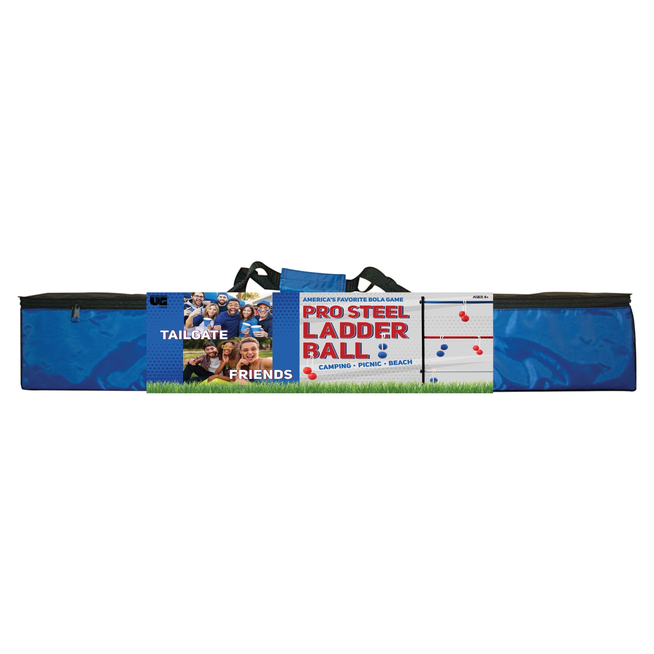 SOLID STEEL SET: Made from durable powder coated steel to serve as a long lasting ladder toss set. Assembled dimensions: 23 inches Wide x 37 inches High x 30″ Deep; makes it suitable for both casual and competitive players CLASSIC LADDER TOSS GAME: Includes everything you need to play: 6 soft-touch weighted bolas in 2 team colors, 2 steel targets and premium carrying case HIGH PERFORMANCE: Sturdy steel construction keeps the targets still while you play EVENT DAY FAVORITE: Fun for players of all ages and a hit at parties, parks, beaches BBQs, tailgates, holiday weekends, campsites and more GET OUT AND PLAY: This classic game is suitable for the entire family. For 2 or more players, Age 8 and Up
