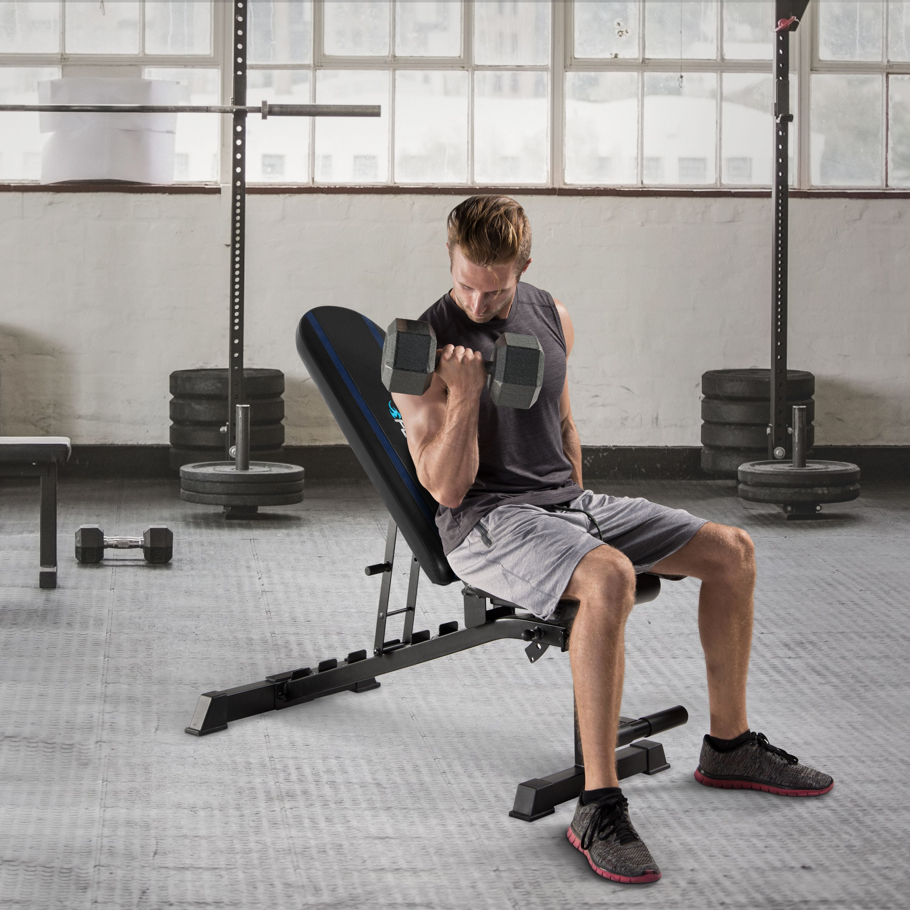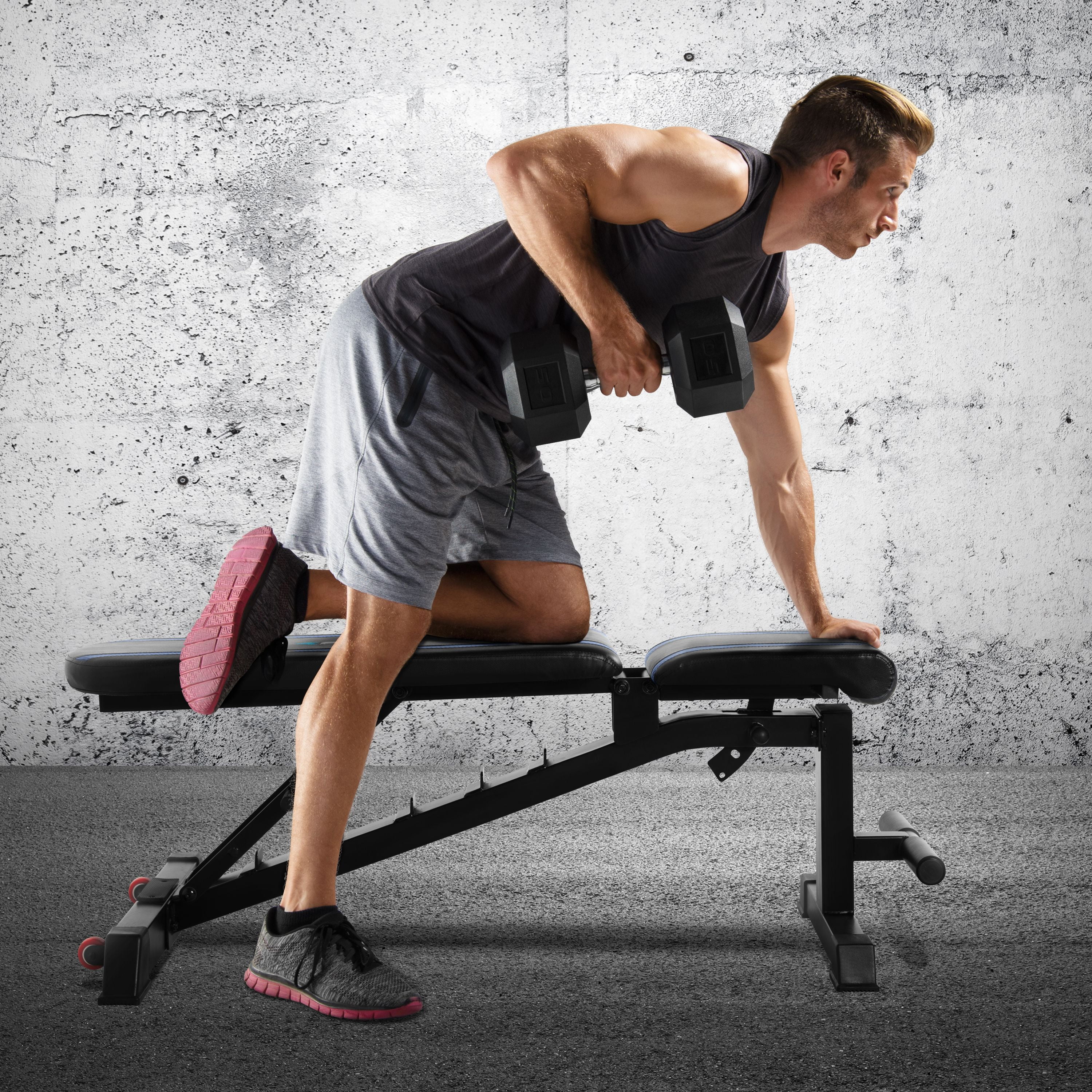 Fuel Pureformance Adjustable Utility Weight Bench, Blue Stripes