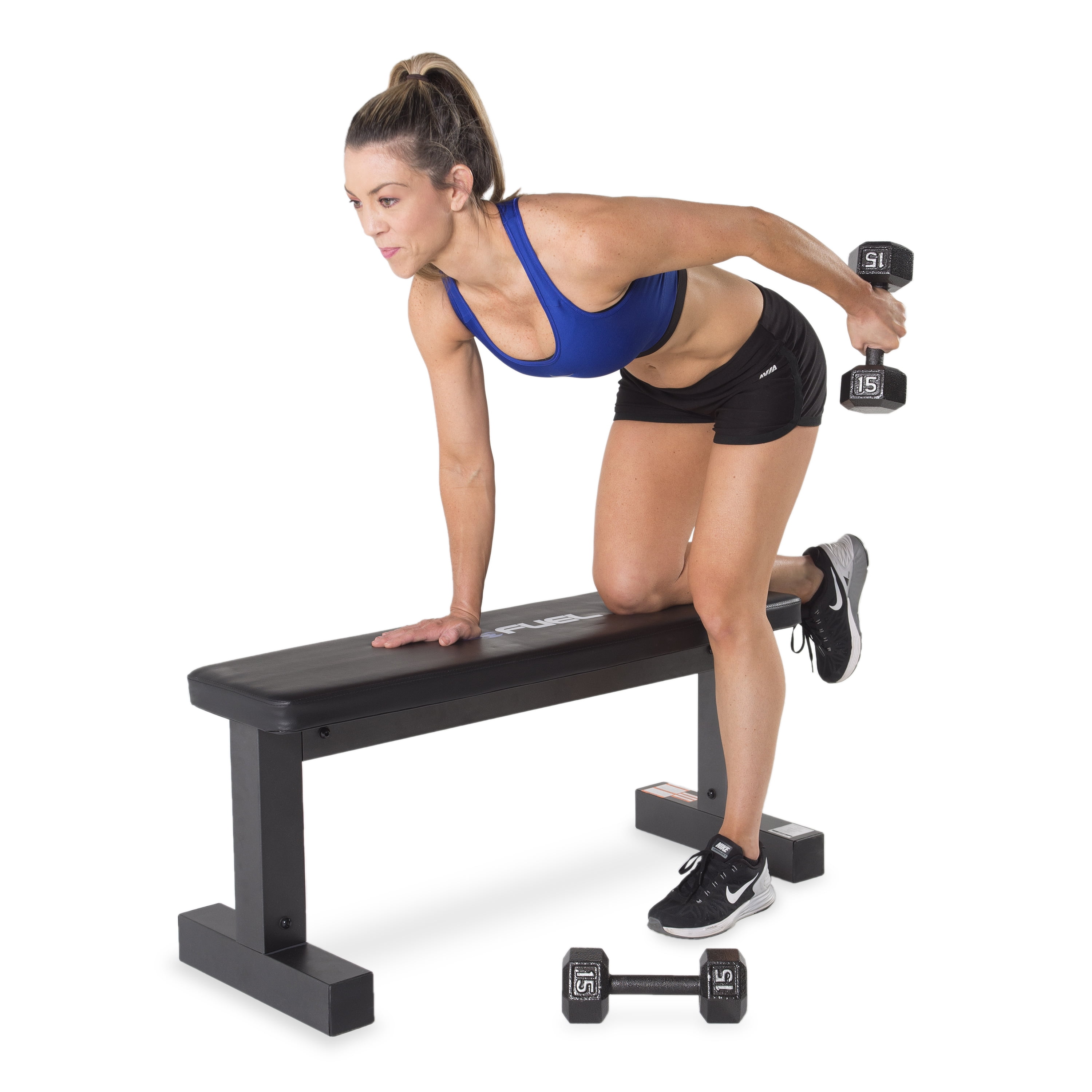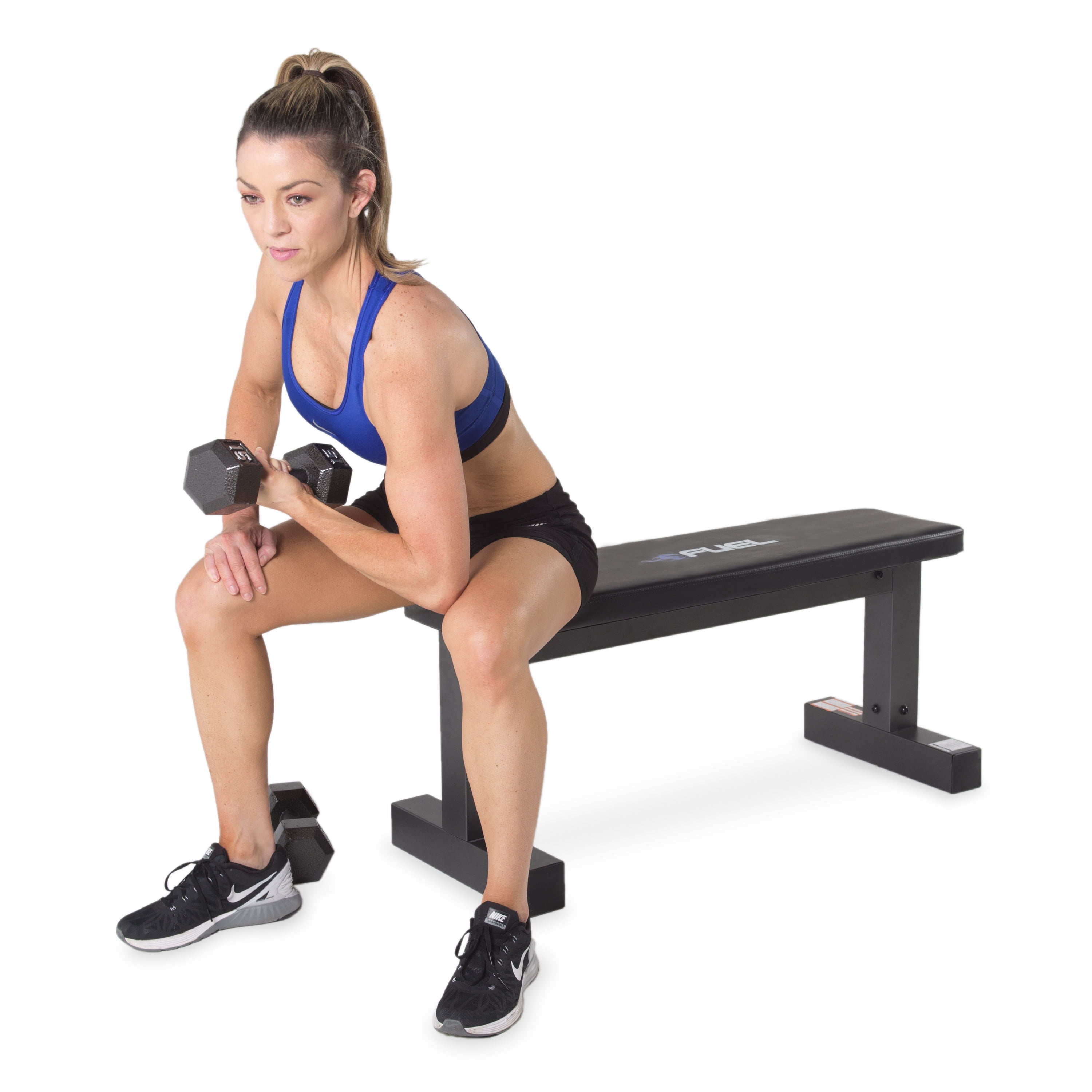Take your workouts to the next level with the Fuel Pureformance Flat Weight Bench. This is the ultimate product for those who want to add variation to their exercise routine. Comfortable and durable, this exercise flat bench is made of durable steel and thick padding. It provides a useful tool for a wide variety of movements including chest, triceps, leg, back and abdominal exercises. A sleek construction combined with its gunmetal finish and blue accents helps ensure that it easily blend in with almost any decor. Stop making excuses and get the body you have always wanted with the help of this Fuel Performance Flat Bench.