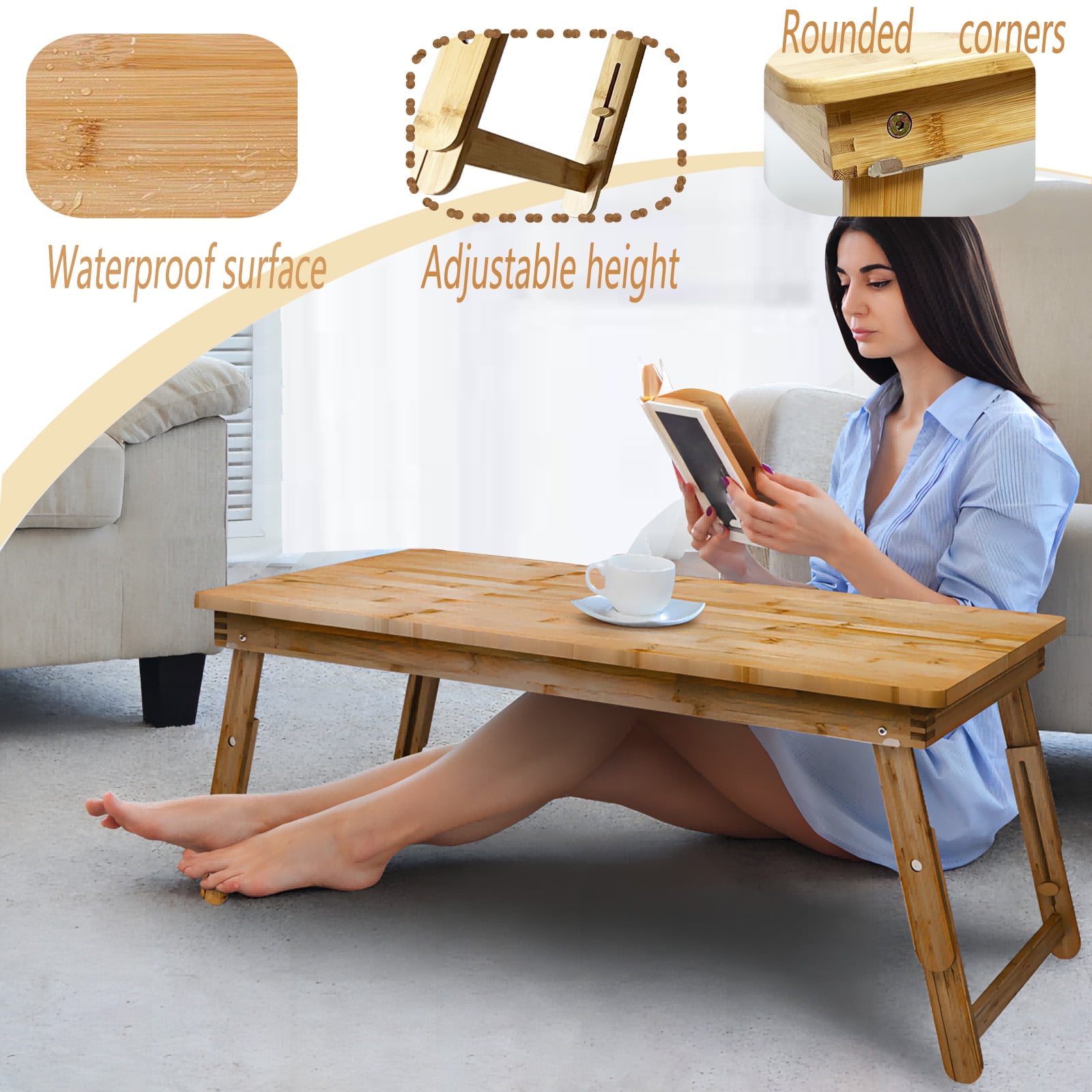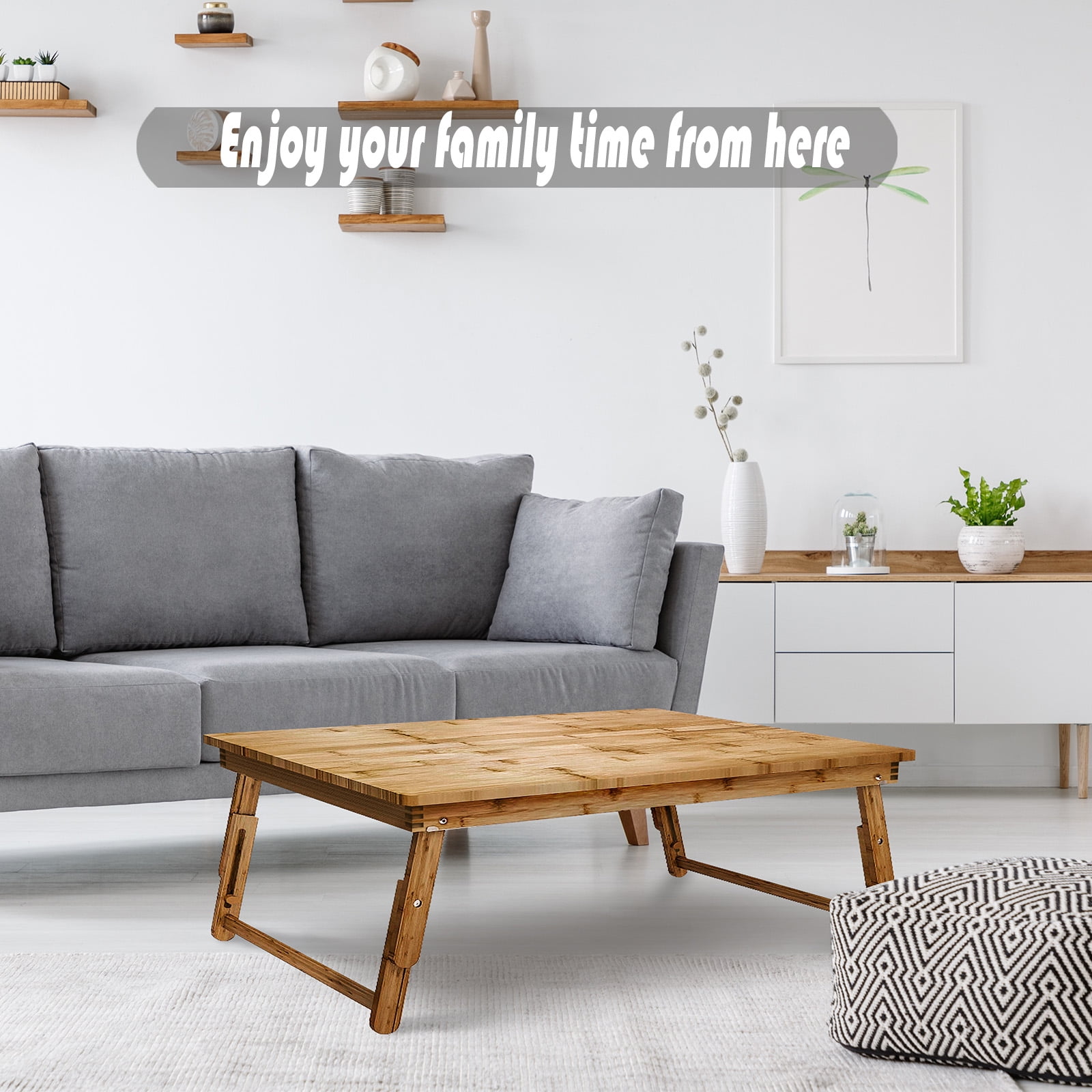 Fully Assembled Bamboo Coffee Table for Sitting on the Floor Living Room Foldable Legs Adjustable Height Japanese