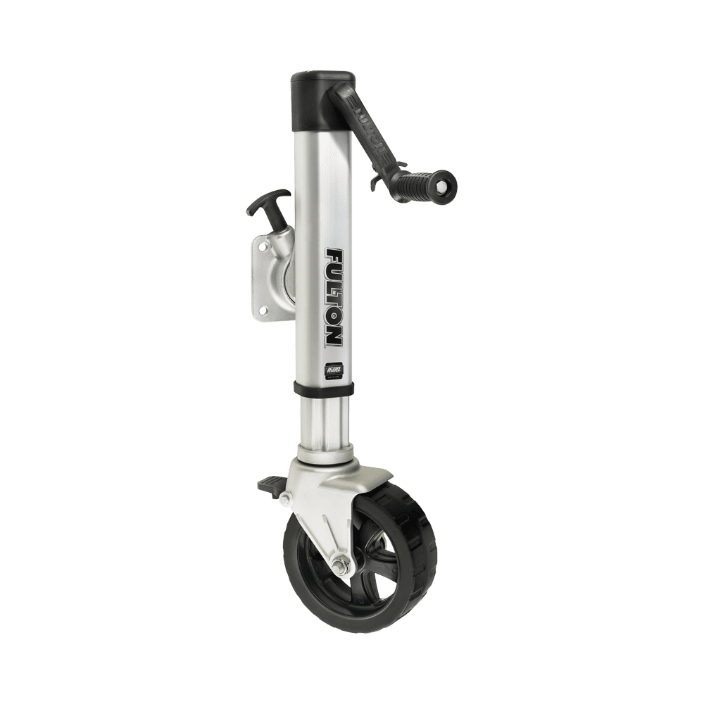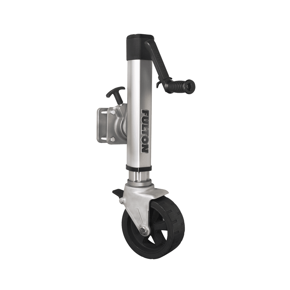 Nobody wants their boat or trailer rolling off into the sunset. With the Fulton Wide Track Tongue Jack, your receiver style trailer will stay grounded when it’s not in use. With a 1,600 pound lifting capacity, this jack can be used for a variety of marine and other recreational applications. This ergonomically designed jack features a side wind crank, release pin, and integrated wheel wedge made of strong, engineered plastic for a comfortable touch. Covered in corrosion-resistant coating on the exterior and interior of the jack, this tool is built to last and withstand even the harshest conditions. When not in use, the convenient handle hold-up secures the handle to the jack tube when in stowed position. Whatever receiver style trailer you own, put your mind at ease with the maintenance-free Fulton F2 Trailer Tongue Jack that keeps it put when not in use.