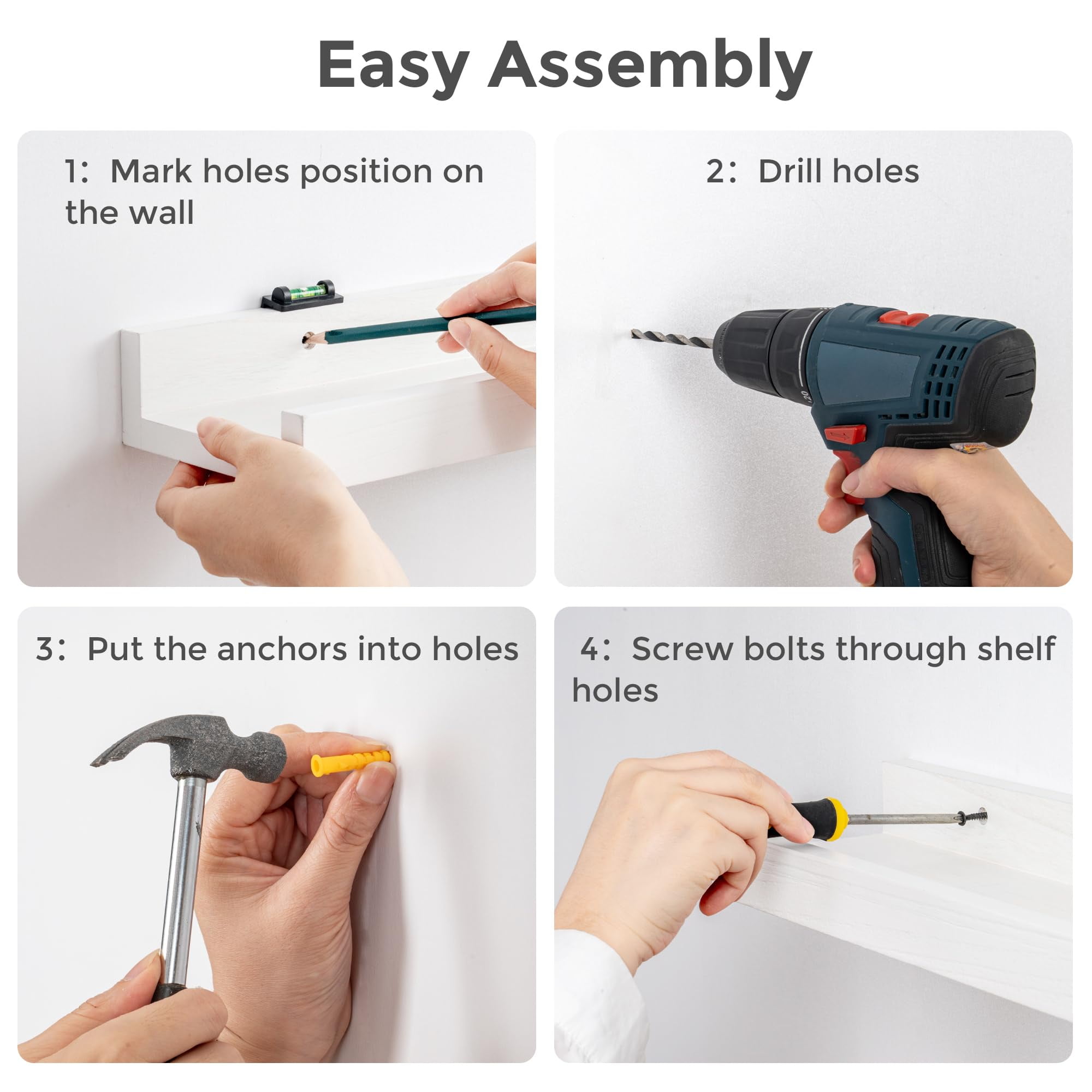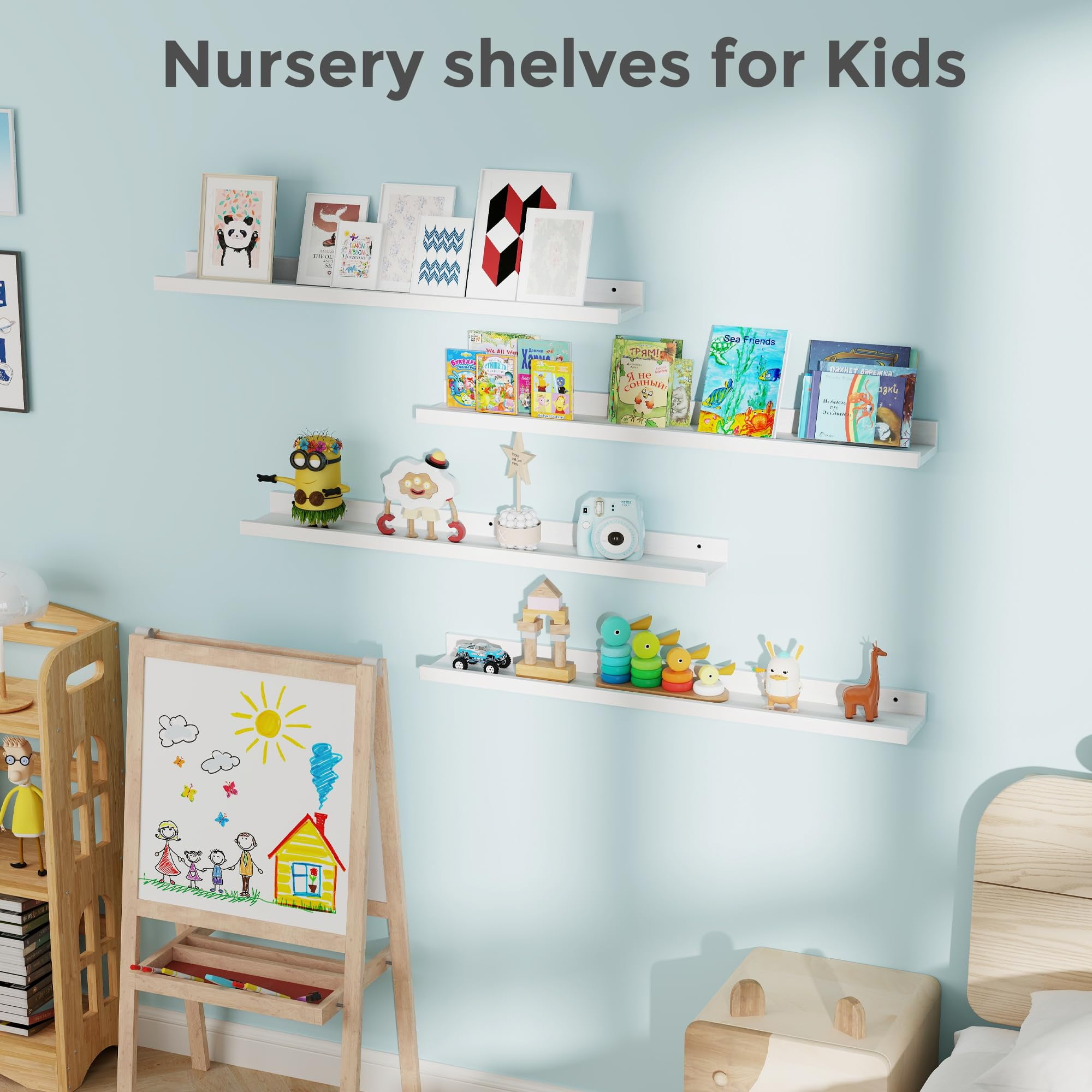 Fun Memories 36″ 4pack Solid Wood Floating Shelves for Wall Decor,White